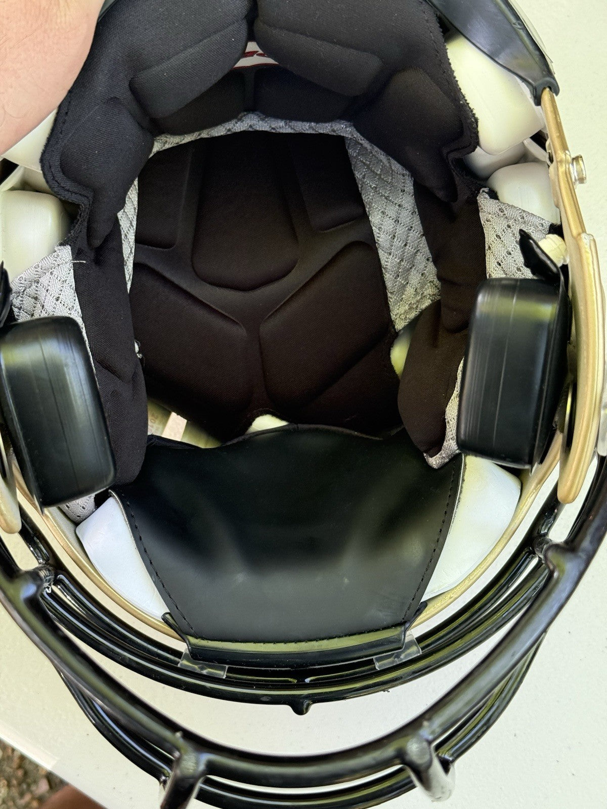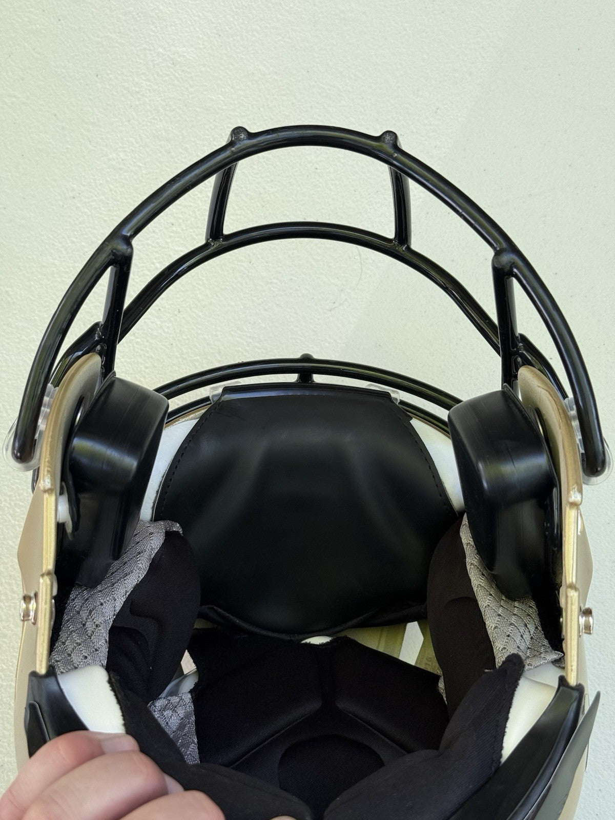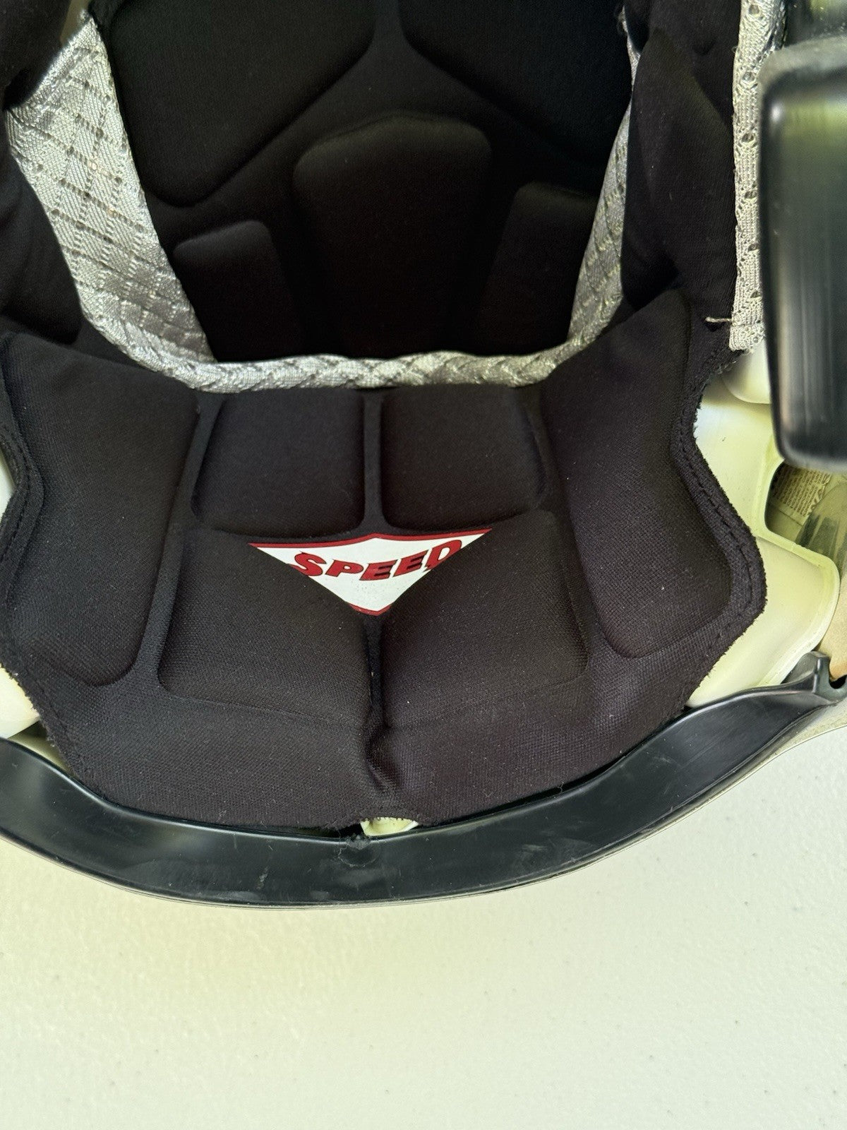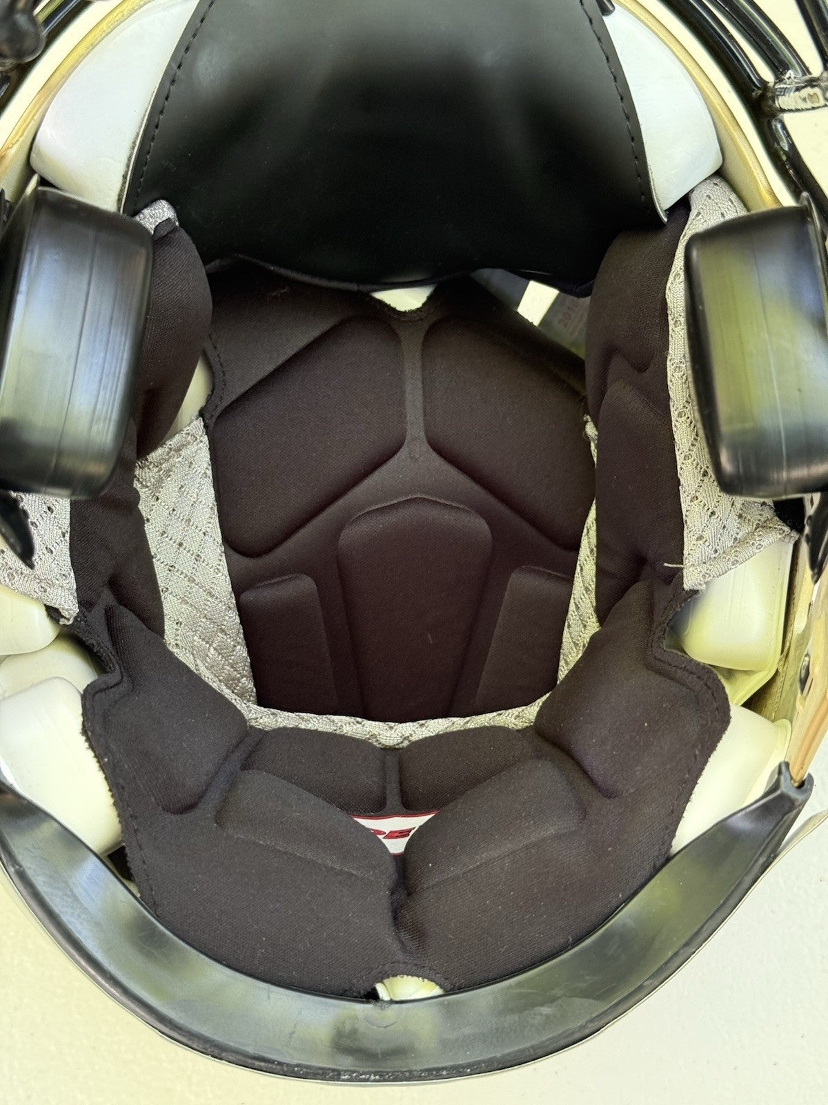 The helmet is a full-size Adult Large and is still in great condition, showing some really nice evidence of prior usage and with numerous stickers and labels affixed to the inner shell. Please refer to photos and don’t hesitate to contact me with any questions.