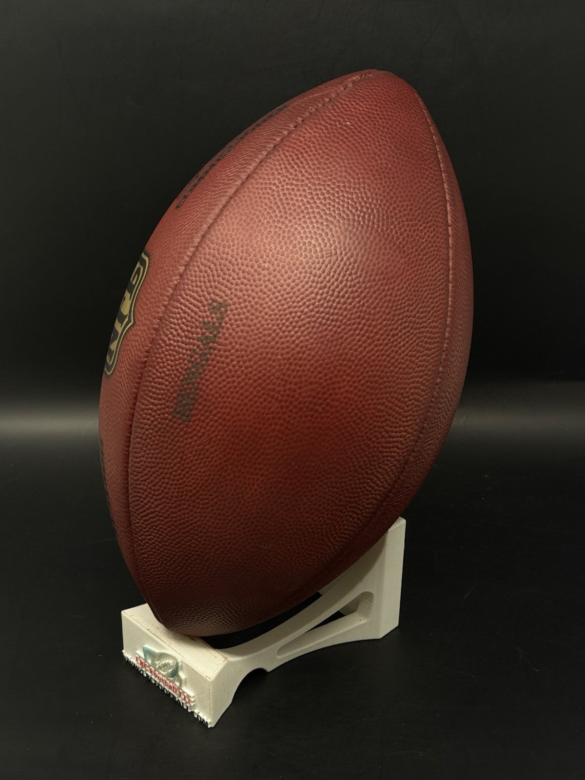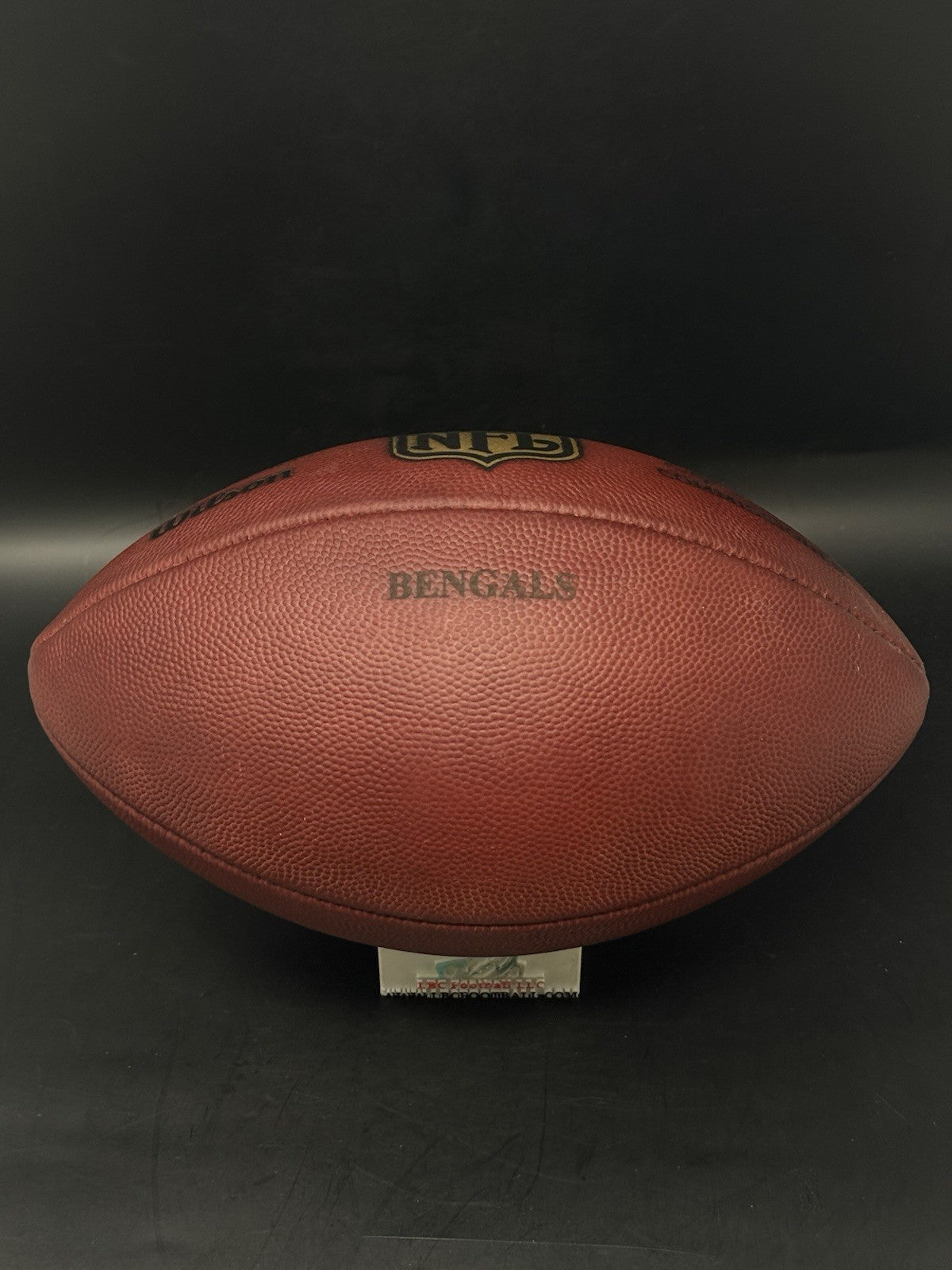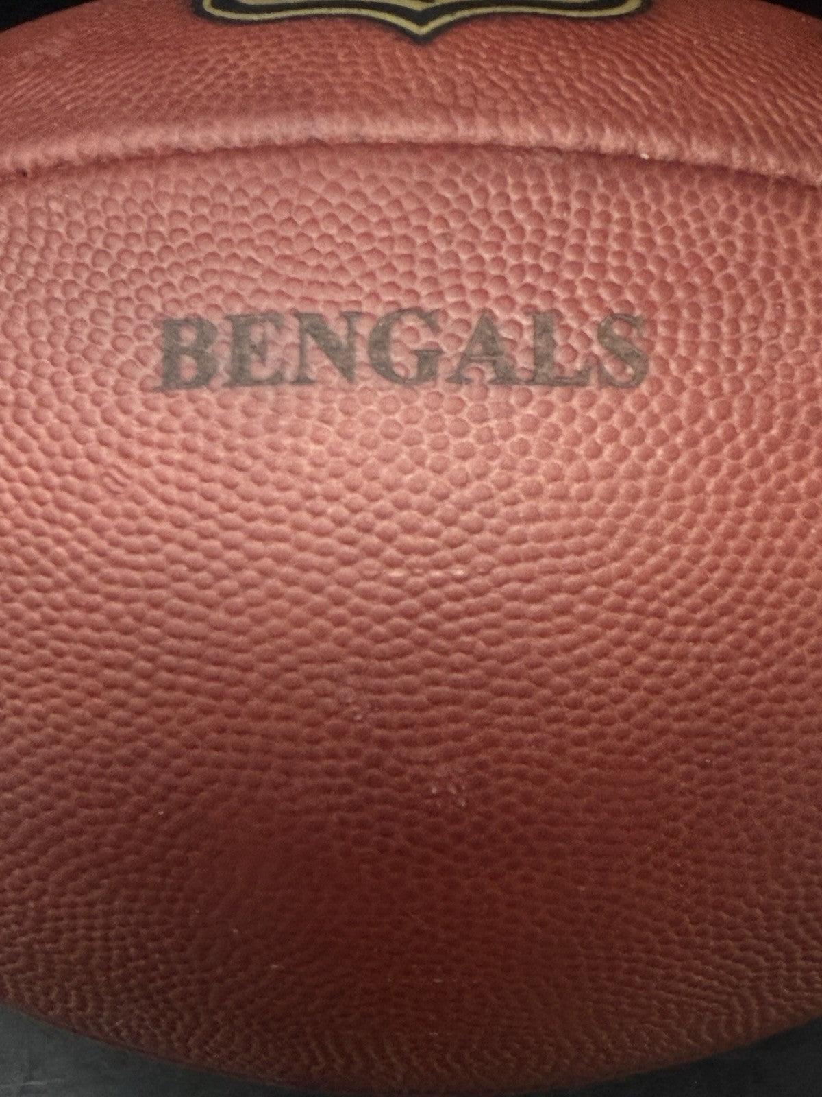 This Bengals game ball comes with the team logo embossed on leather panels that were recently conditioned, tacked and brushed. This football also recently received a brand-new bladder and black suede NFL lacing. This football will make an excellent display souvenir in any Bengals sports shrine or office.