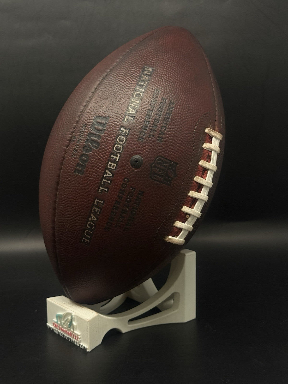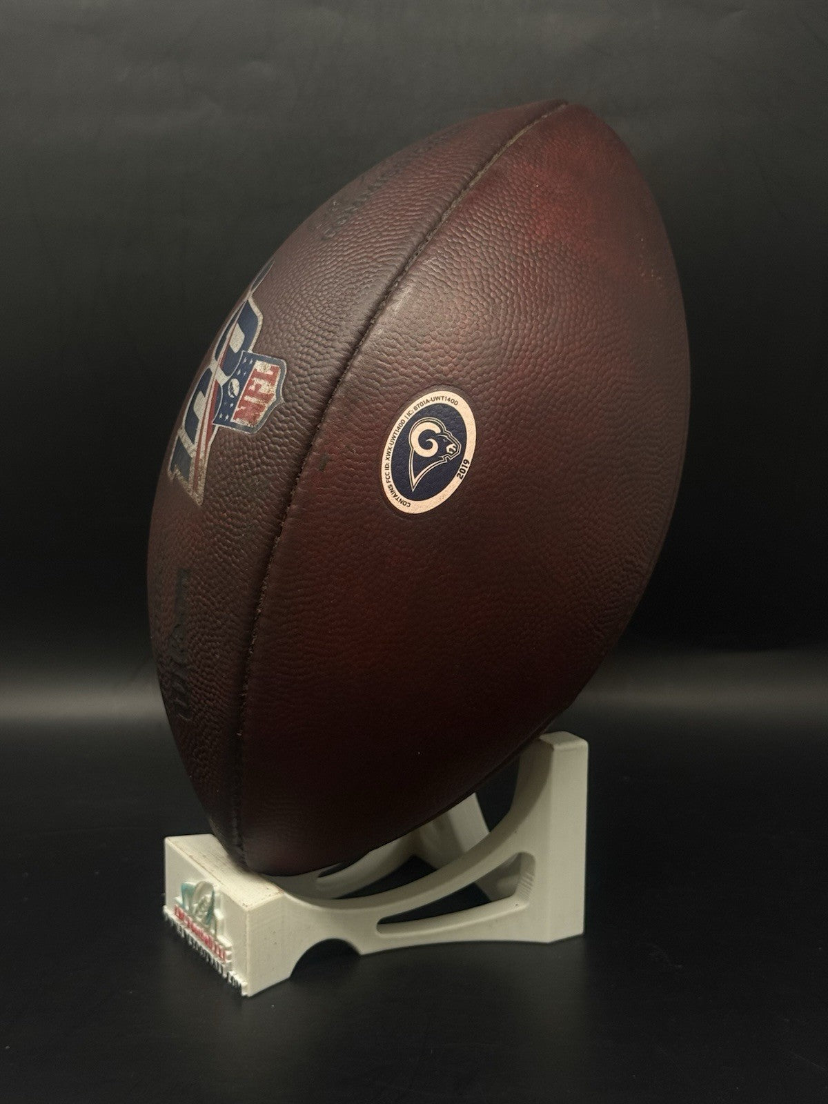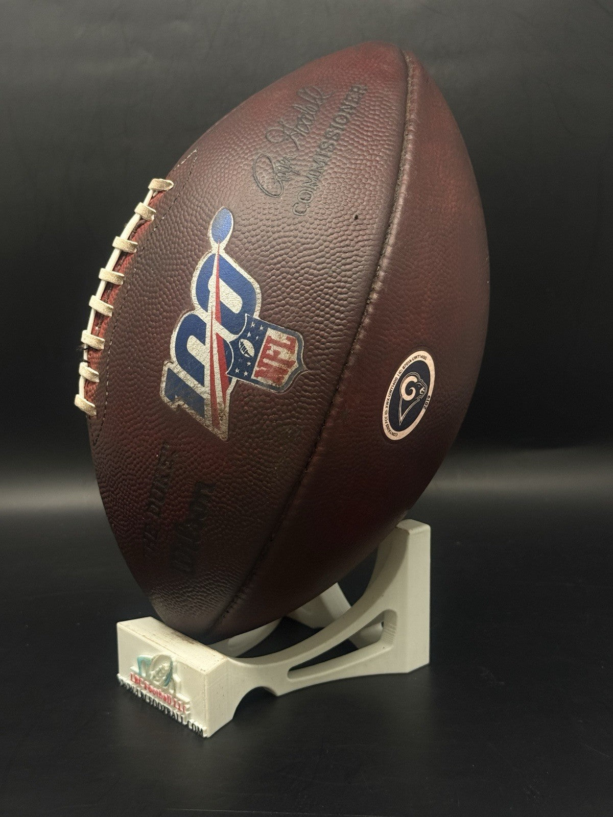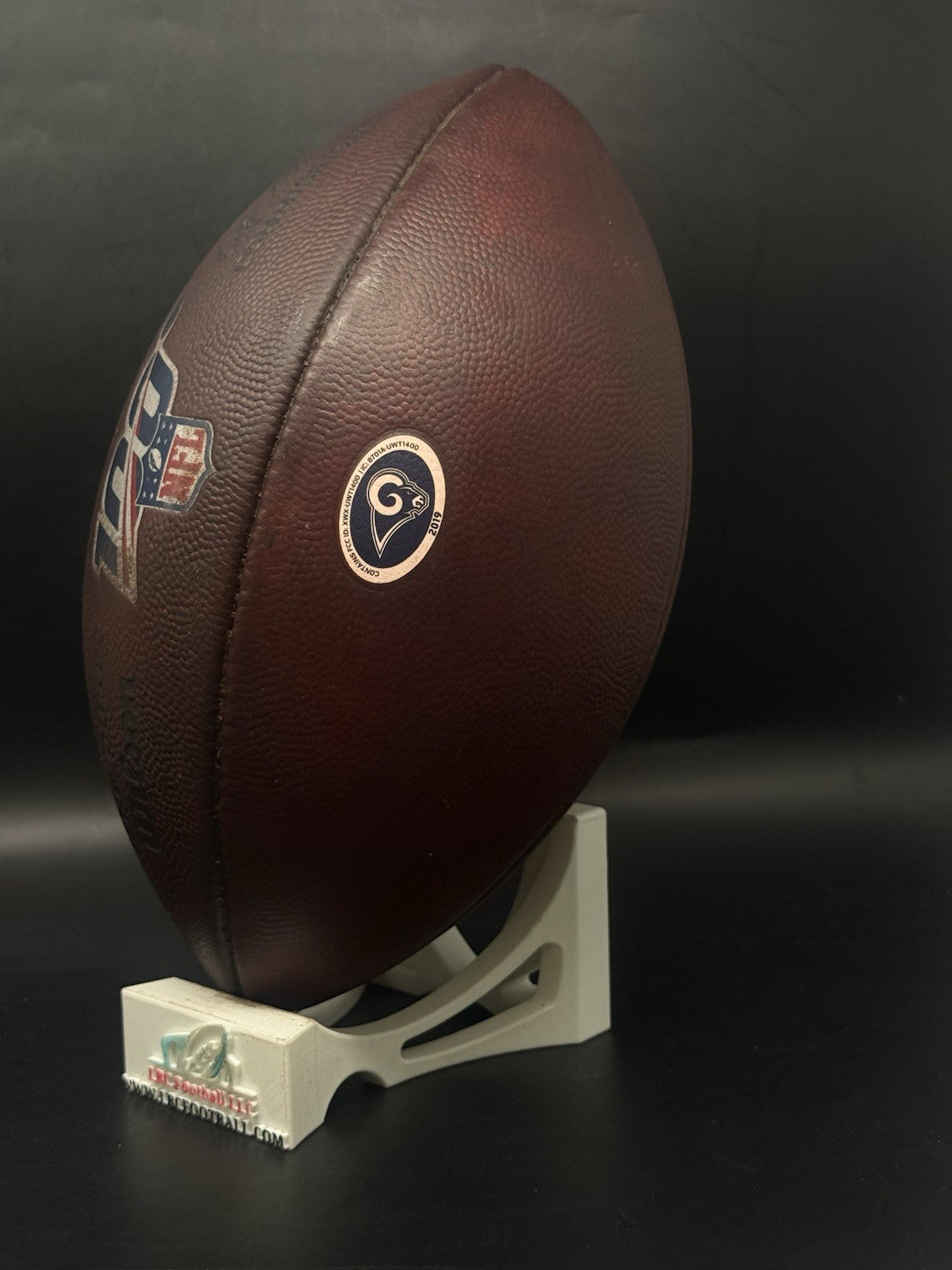 This Rams game ball comes with the team logo, season year and RFID serial number for the microchip inserted inside this football. This football also has the 100yr Anniversary logo embossed on the leather panel which was used by every team during the 2019 NFL season.