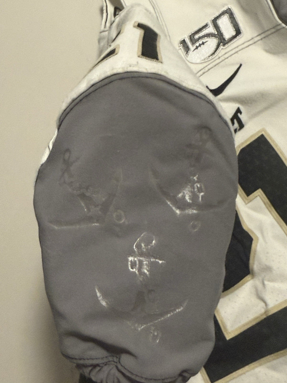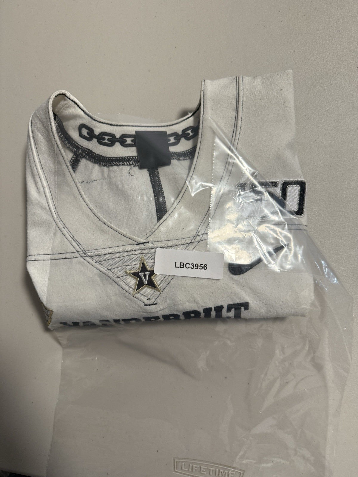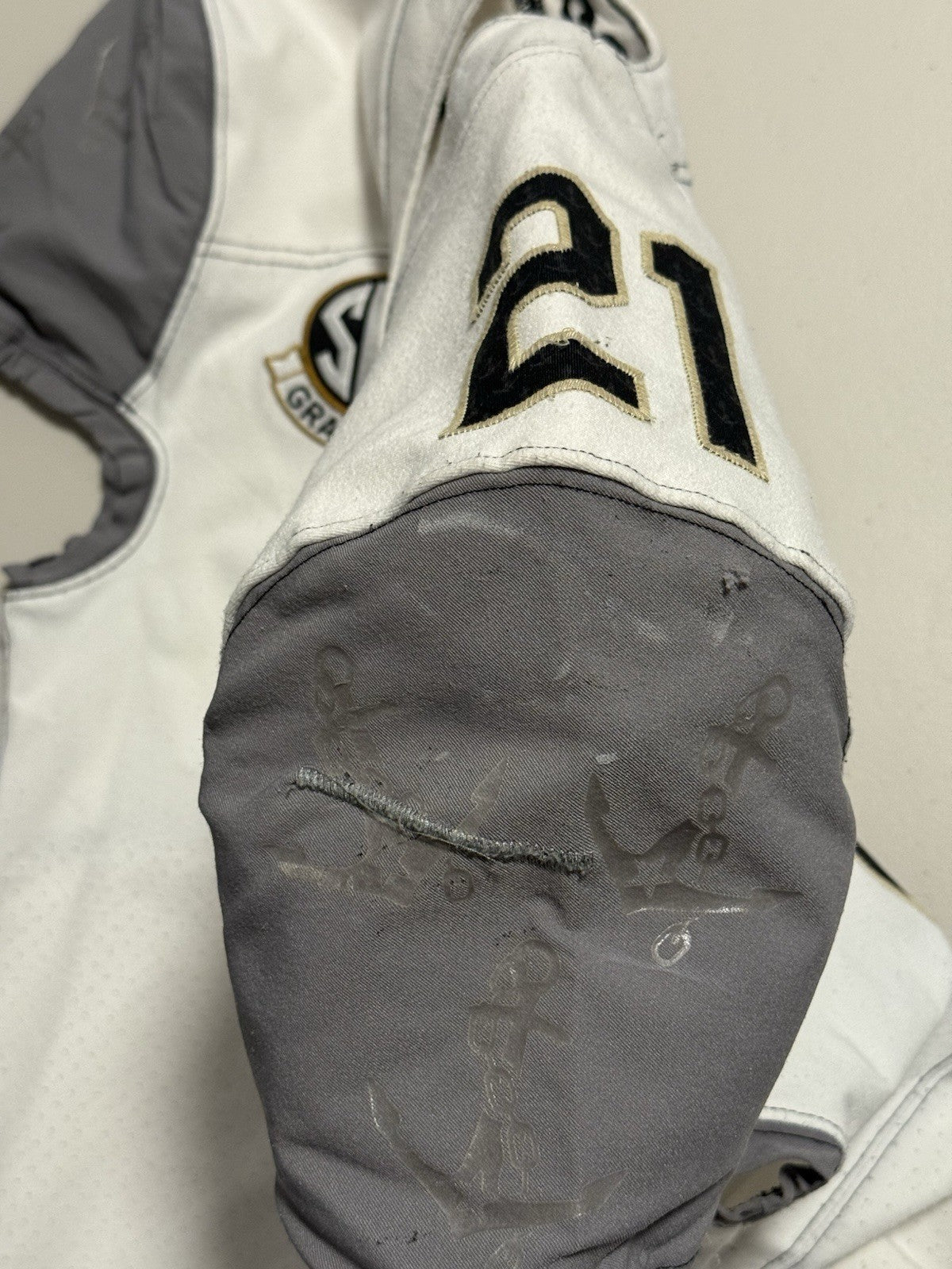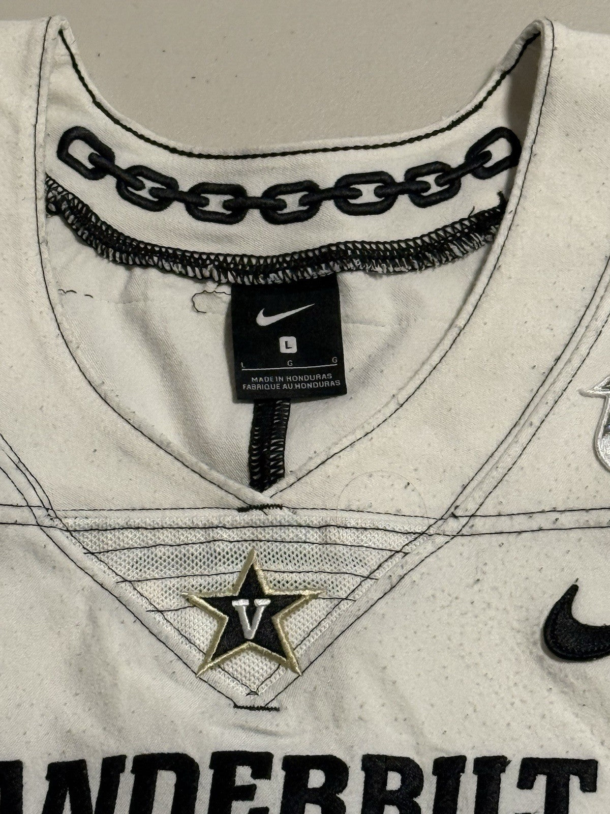 Rare Vandy jersey from the program, used several seasons ago. This particular jersey comes with the 150yr anniversary patch, worn in 2019 by numerous college teams and with the "SEC Graduate" patch.