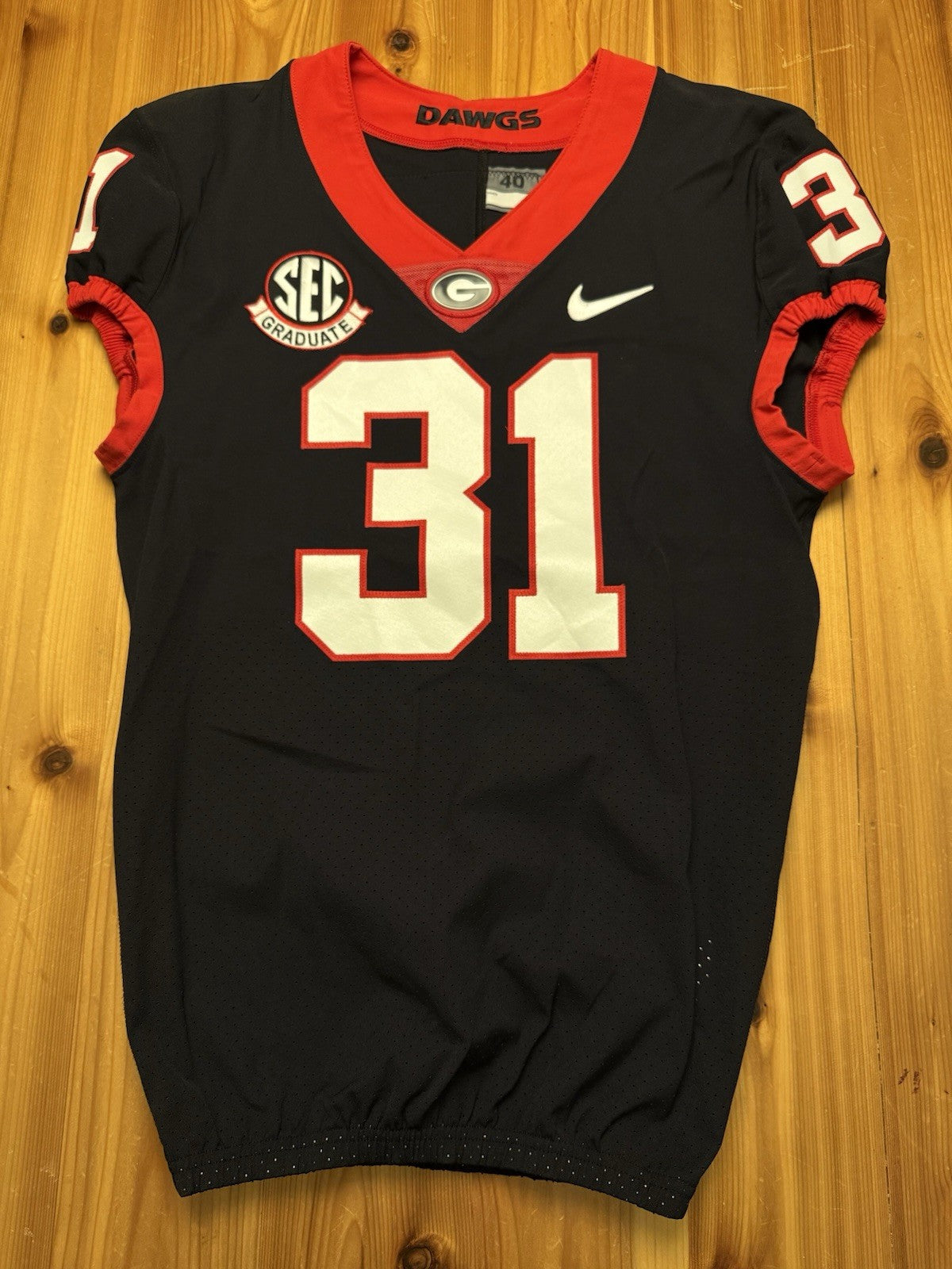 Worn by Cornerback William Poole III, from the 2022 roster. Poole III played 6 seasons at UGA and finished his Dawgs career in 2022. Nameplate and SEC Graduate patch still affixed to the jersey making this a really unique piece of UGA memorabilia.