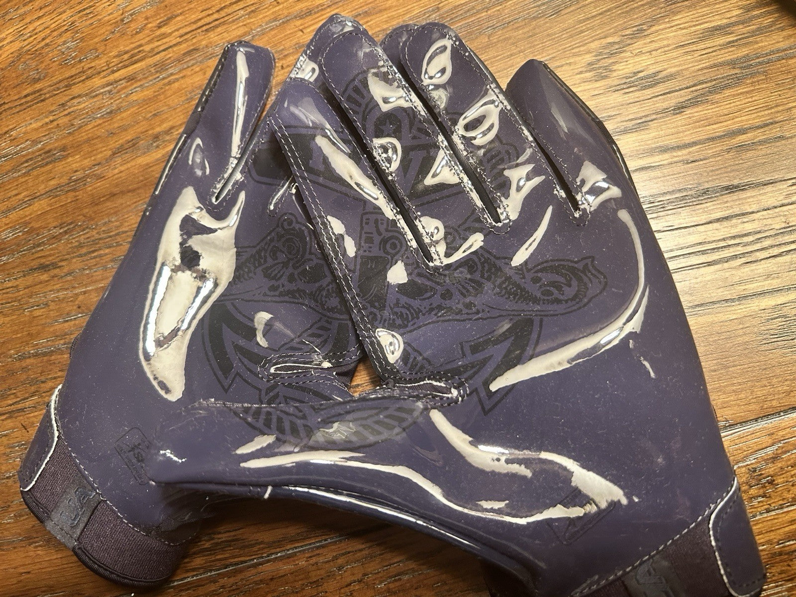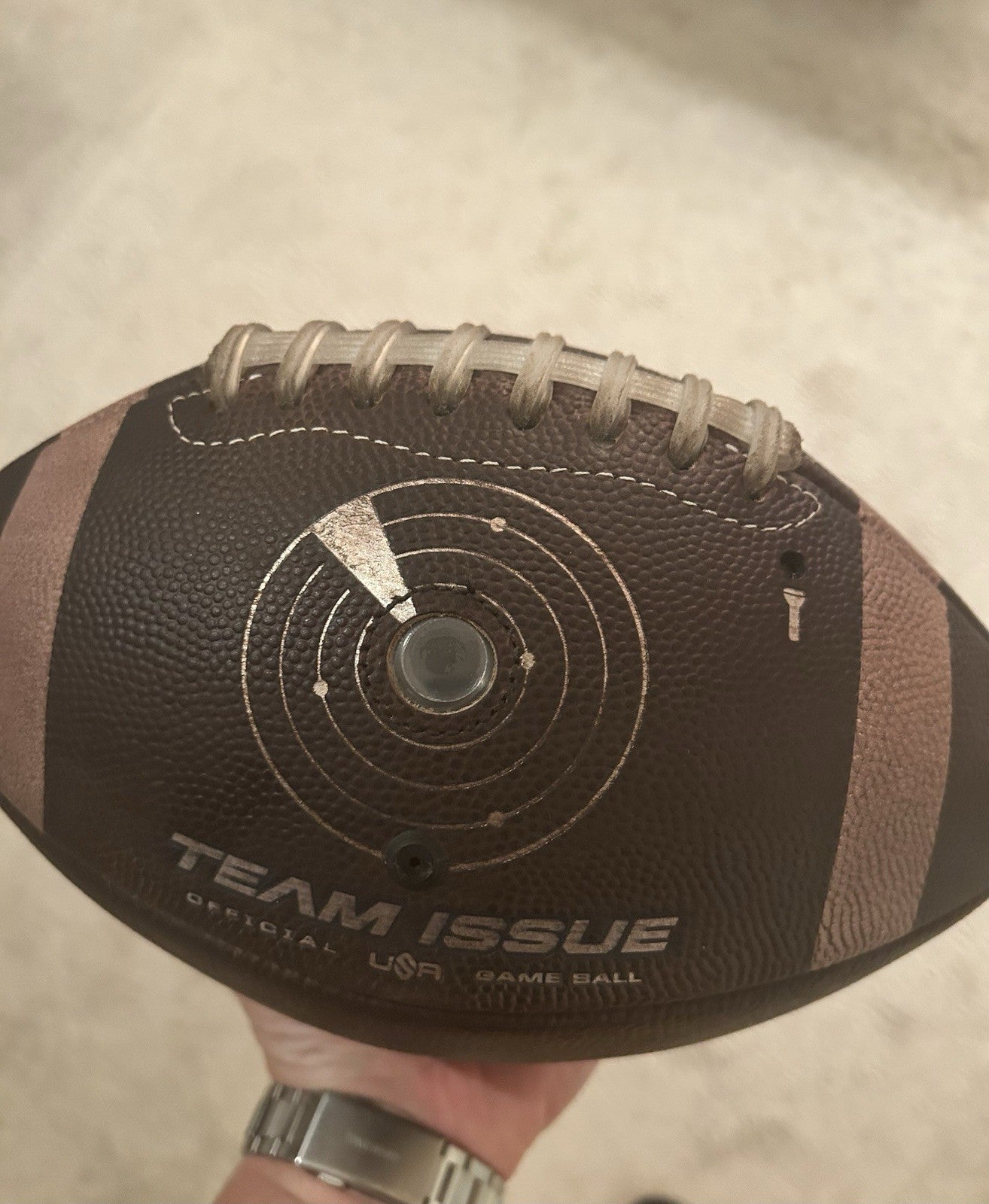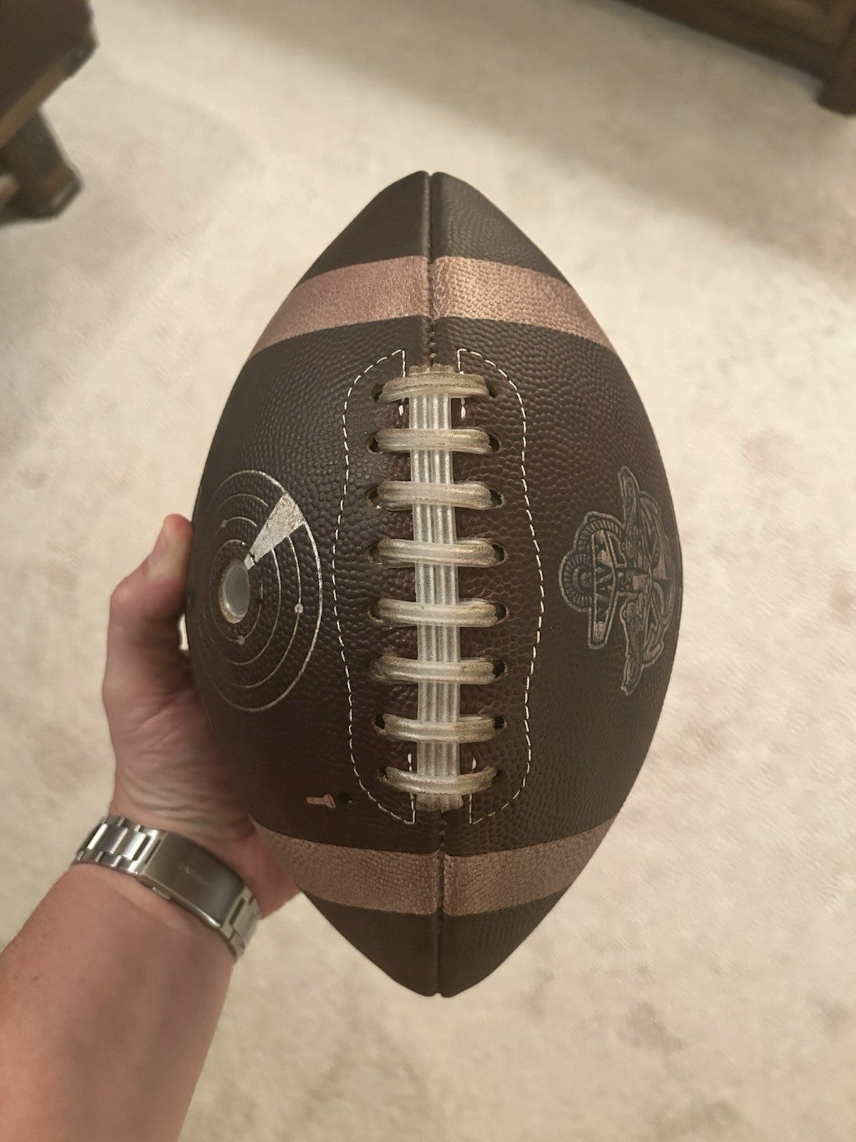 2023 Navy practice used ball and game gloves size L from the Army Navy game. They would only allow this ball to be used in practice because of the porthole on the side of the ball officials would not allow them to be used in the game so a very similar ball was used in the game.
