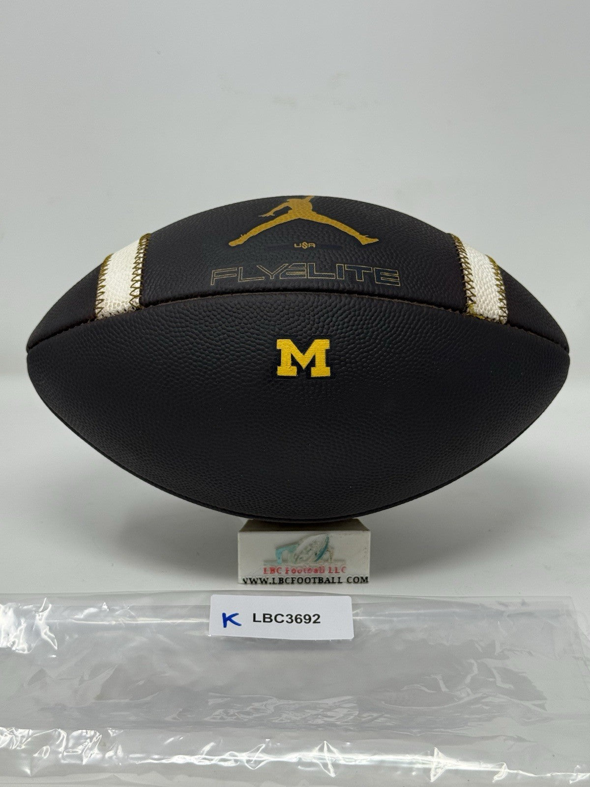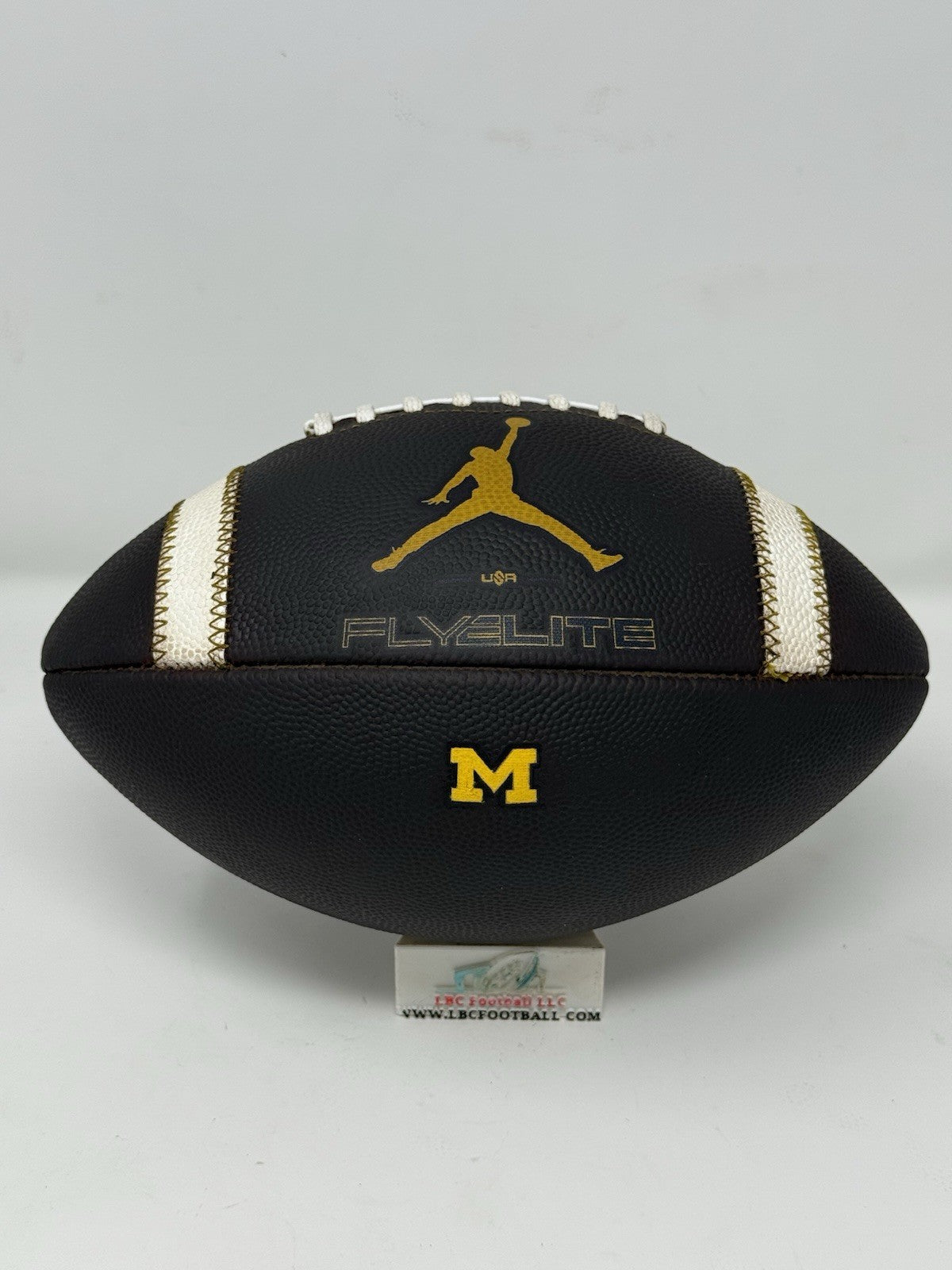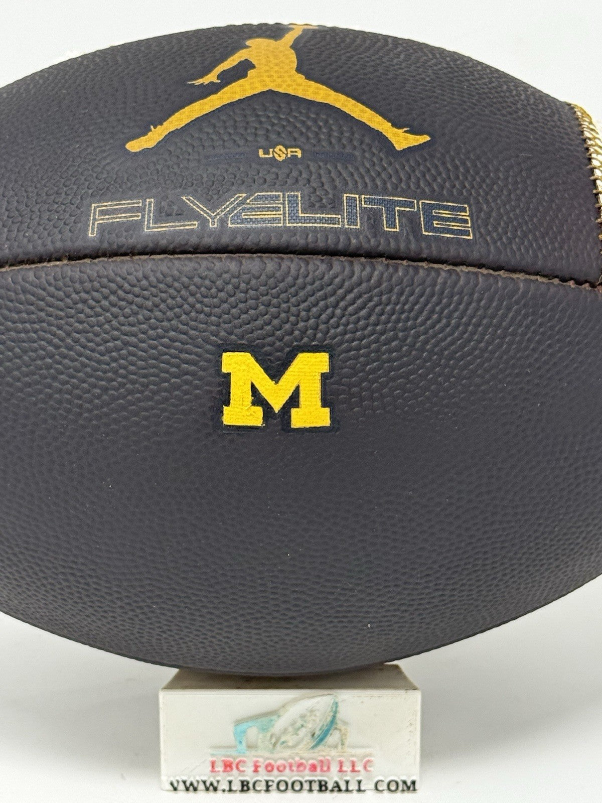 Authentic 2025 Michigan Wolverines Game Issued Jordan Flyelite NCAA Football. Fully game prepped leather panels and holds air just fine. Perfect for display in any sports collection or office, or even to train with on the field.