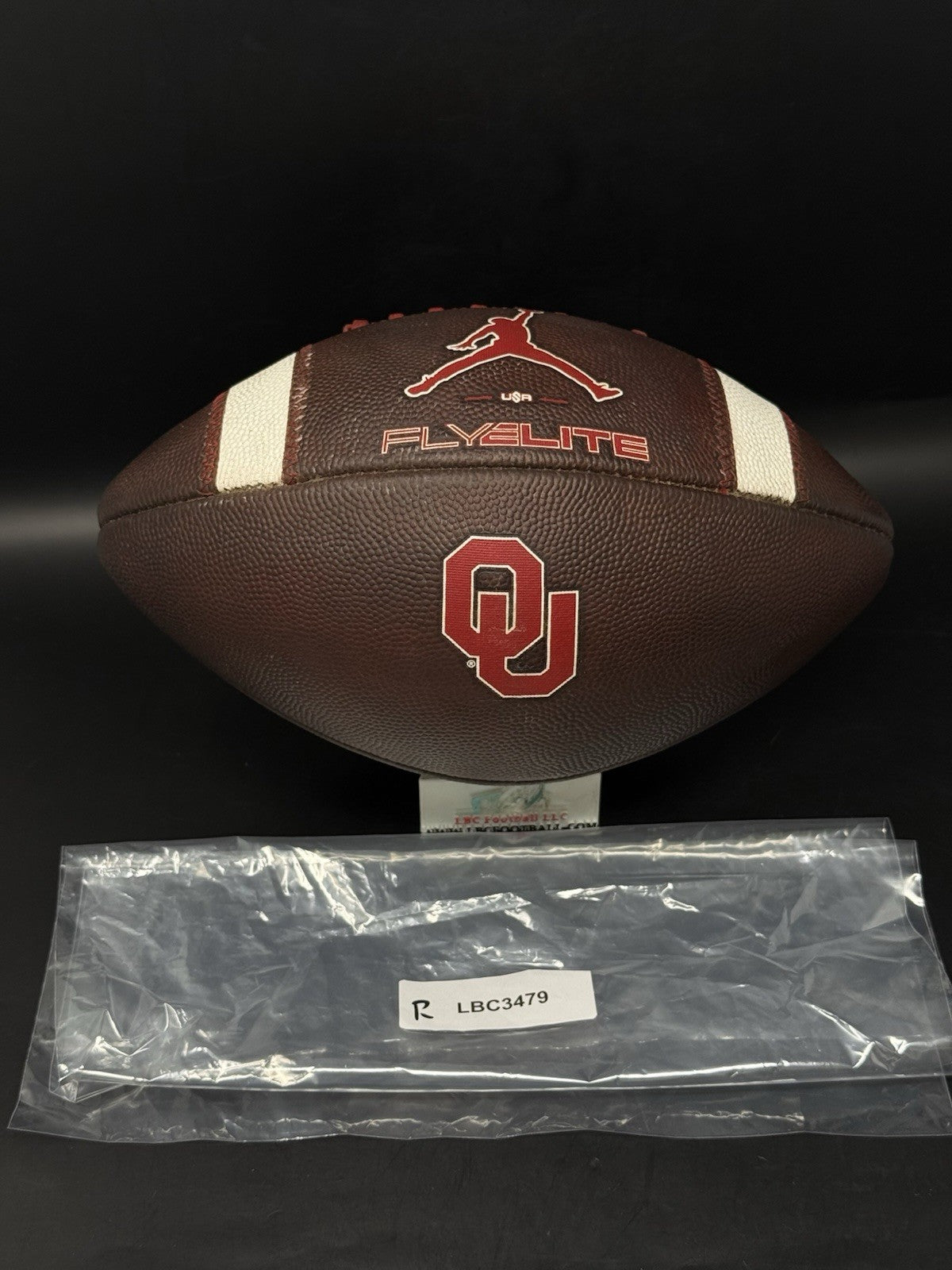 2025 game issued OU Sooners Jordan Flyelite NCAA football, fully game prepped. Perfect for any Oklahoma Sooner display, office or to even train with on the field.