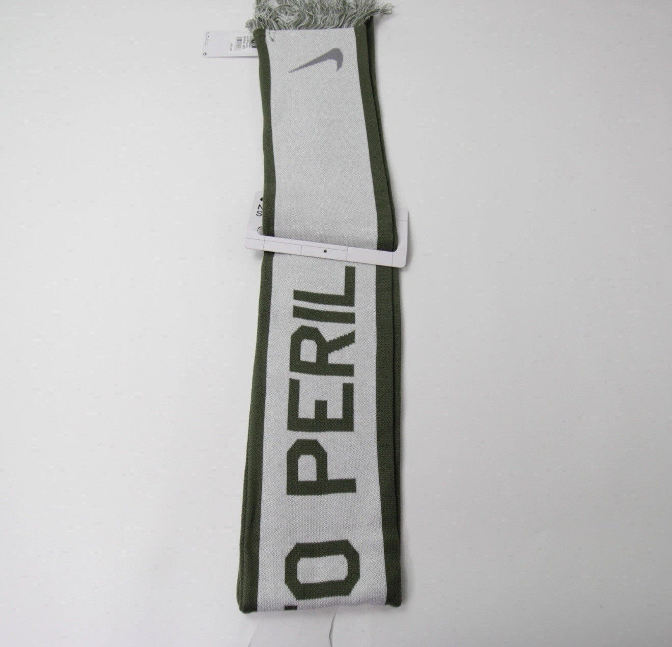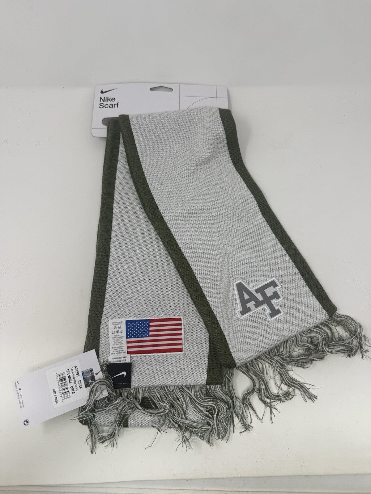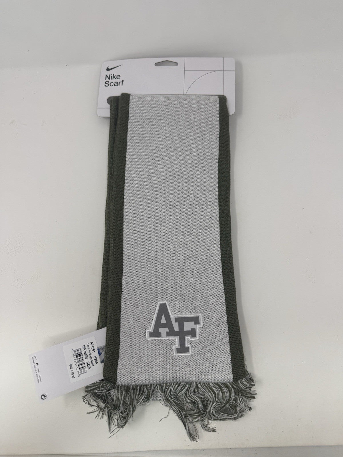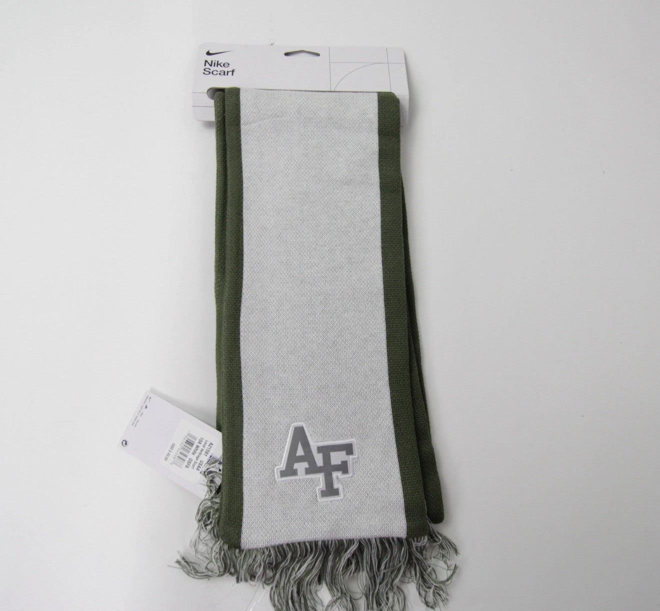 The Air Force Falcons Nike Scarf is a brand new unisex olive/white scarf featuring the team's logo and colors. This NCAA athletic scarf from Nike is designed for training purposes and is one size fits all. The stylish and versatile scarf is perfect for showing support for the Air Force Falcons in a subtle yet fashionable way. Ideal for both male and female fans, this Nike scarf is a must-have accessory for any football enthusiast.
