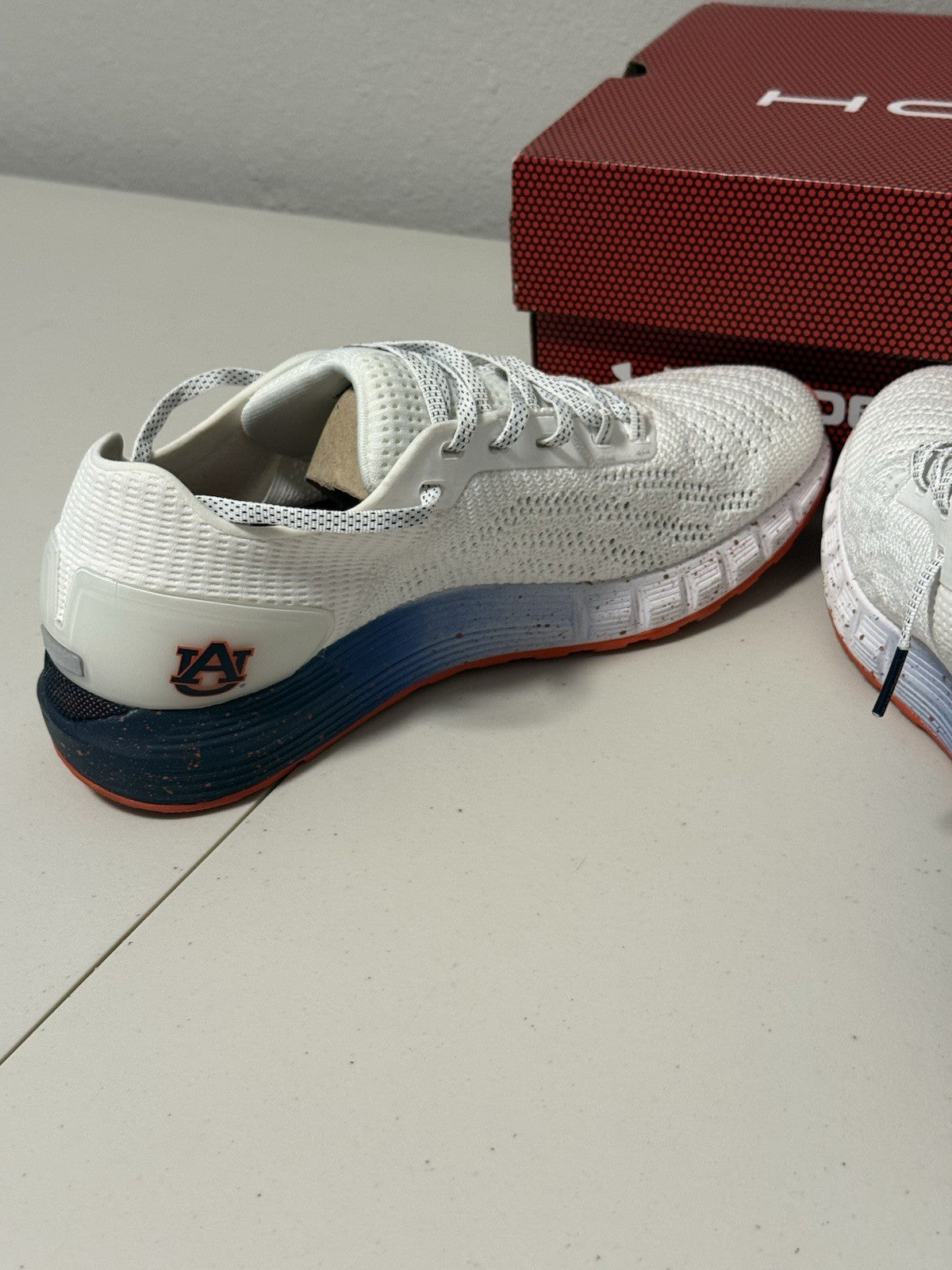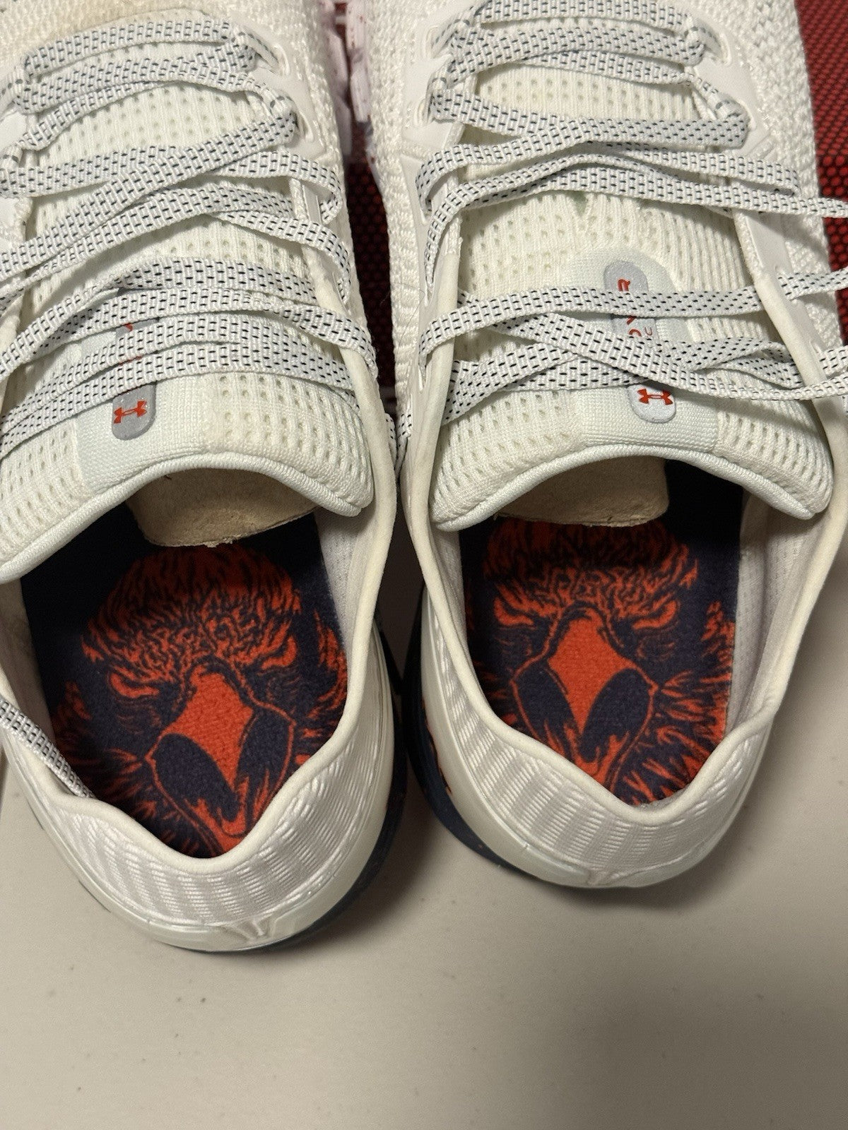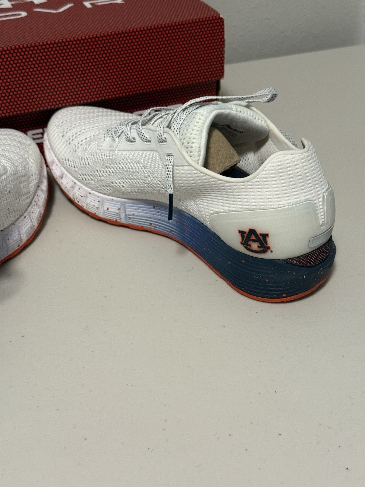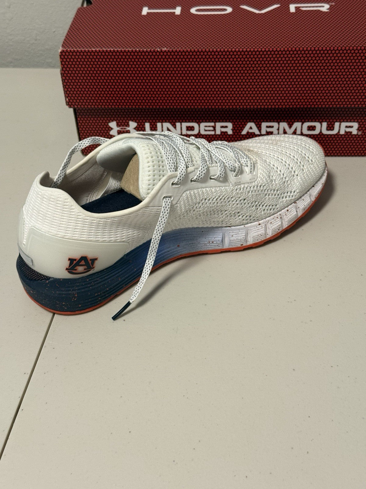 Authentic Auburn Tigers Football Team Issued Under Armour Shoes. Under Armour Team HOVR Sonic 2 Mesh Running Trainers that come with the Auburn logo branded on each shoe and the War Eagle logo on the inside of each shoe. These shoes come with their original box and were used for a brief period by the program. Overall, shoes are still in great condition and feature a low top design with a breathable mesh upper, ensuring that your feet stay cool and dry during your workouts.Under Armour Model: 3022644-100