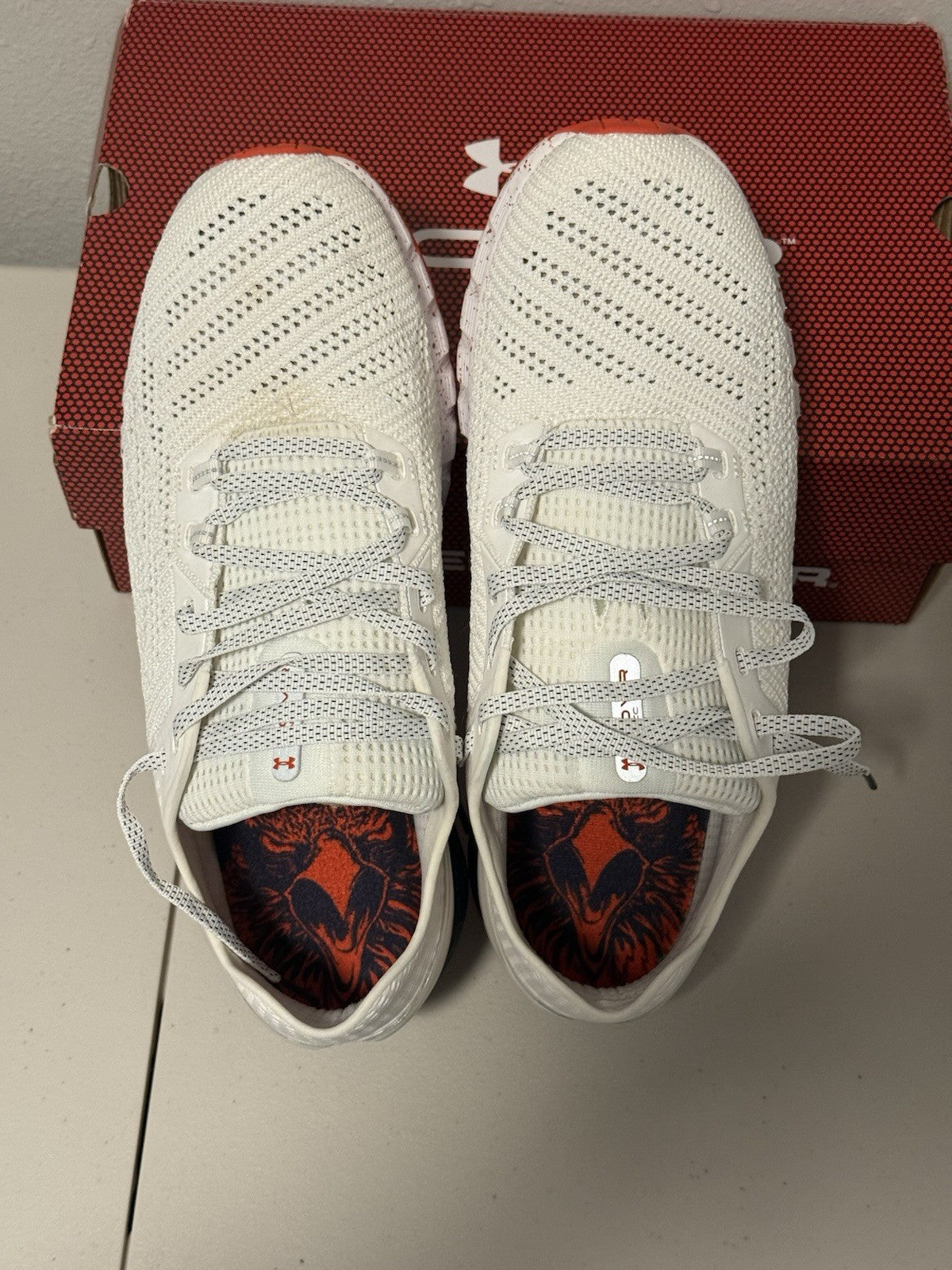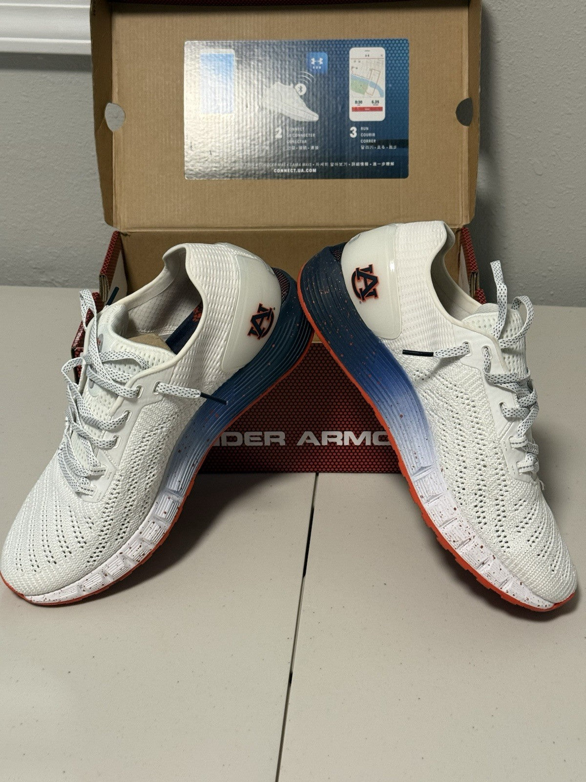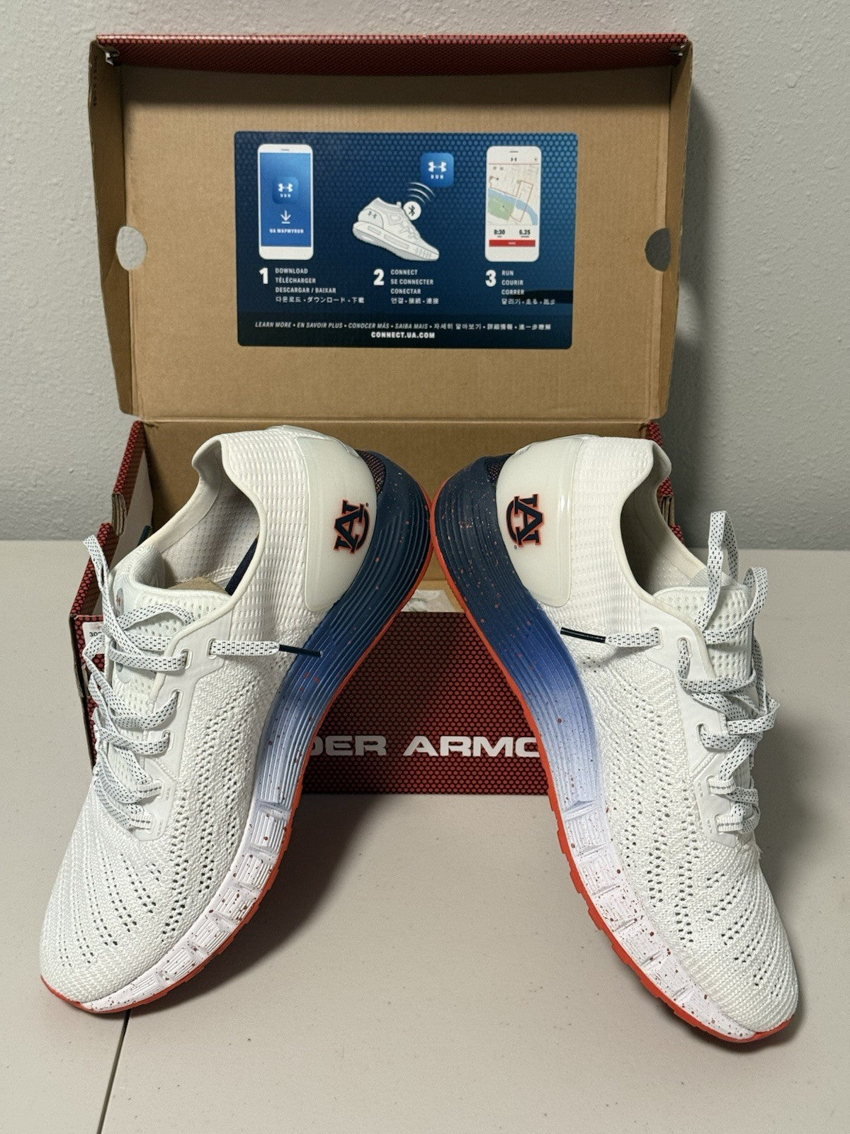 Authentic Auburn Tigers Football Team Issued Under Armour Shoes. Under Armour Team HOVR Sonic 2 Mesh Running Trainers that come with the Auburn logo branded on each shoe and the War Eagle logo on the inside of each shoe. These shoes come with their original box and were used for a brief period by the program. Overall, shoes are still in great condition and feature a low top design with a breathable mesh upper, ensuring that your feet stay cool and dry during your workouts.Under Armour Model: 3022644-100