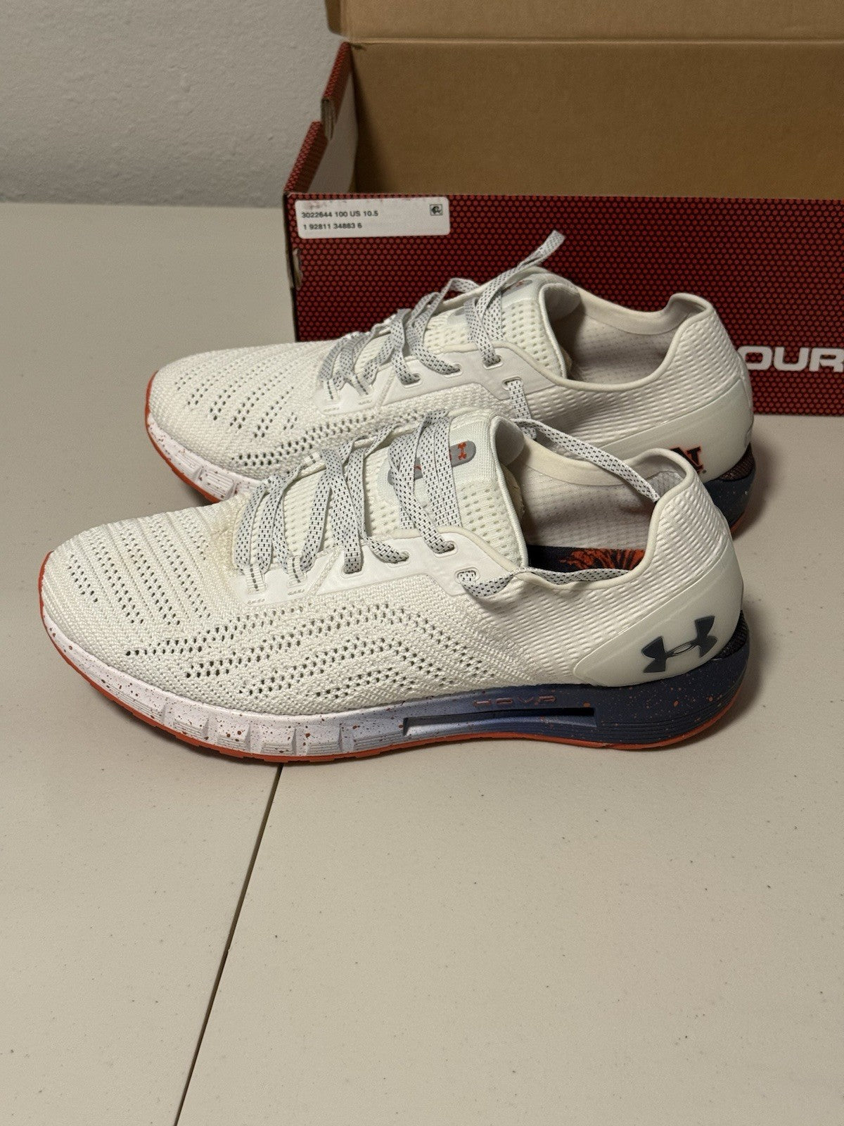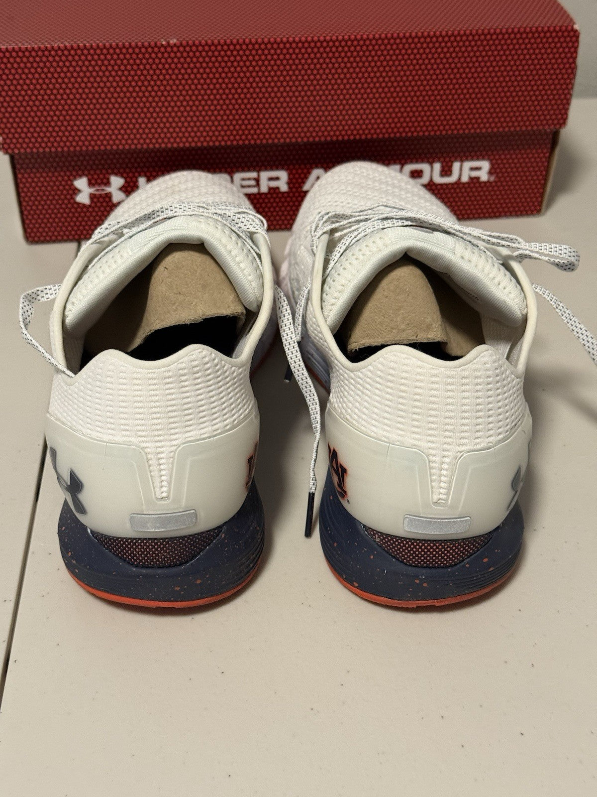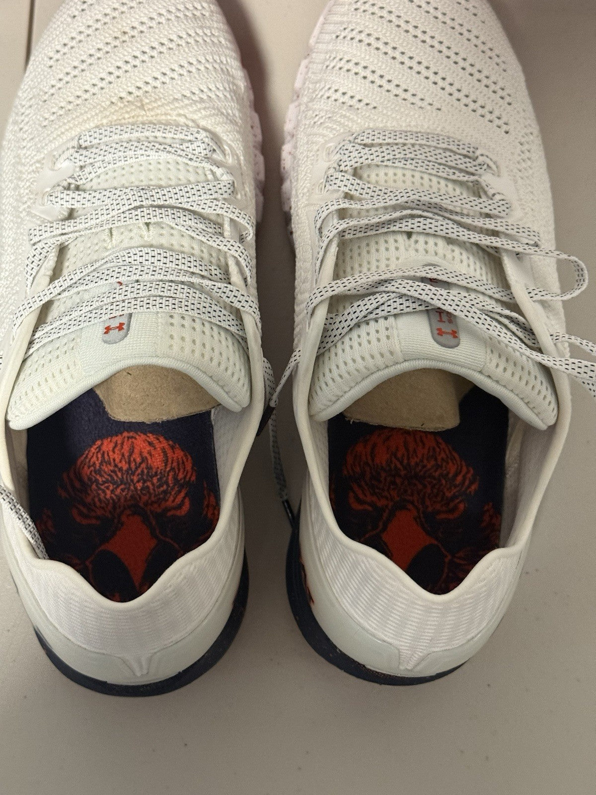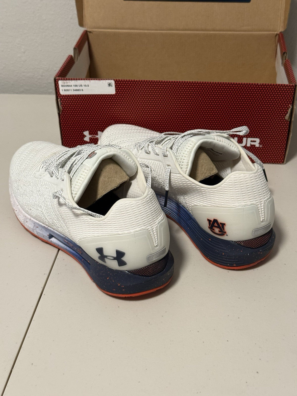 Authentic Auburn Tigers Football Team Issued Under Armour Shoes. Under Armour Team HOVR Sonic 2 Mesh Running Trainers that come with the Auburn logo branded on each shoe and the War Eagle logo on the inside of each shoe. These shoes come with their original box and were used for a brief period by the program. Overall, shoes are still in great condition and feature a low top design with a breathable mesh upper, ensuring that your feet stay cool and dry during your workouts.Under Armour Model: 3022644-100
