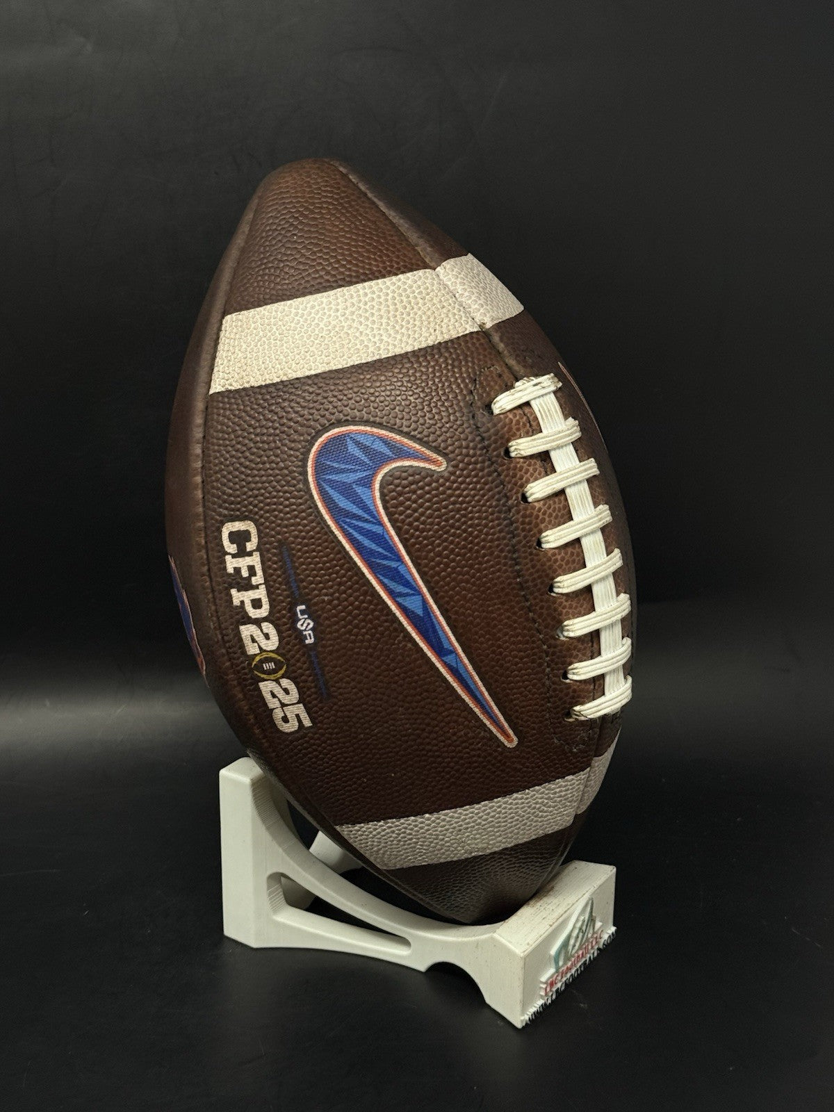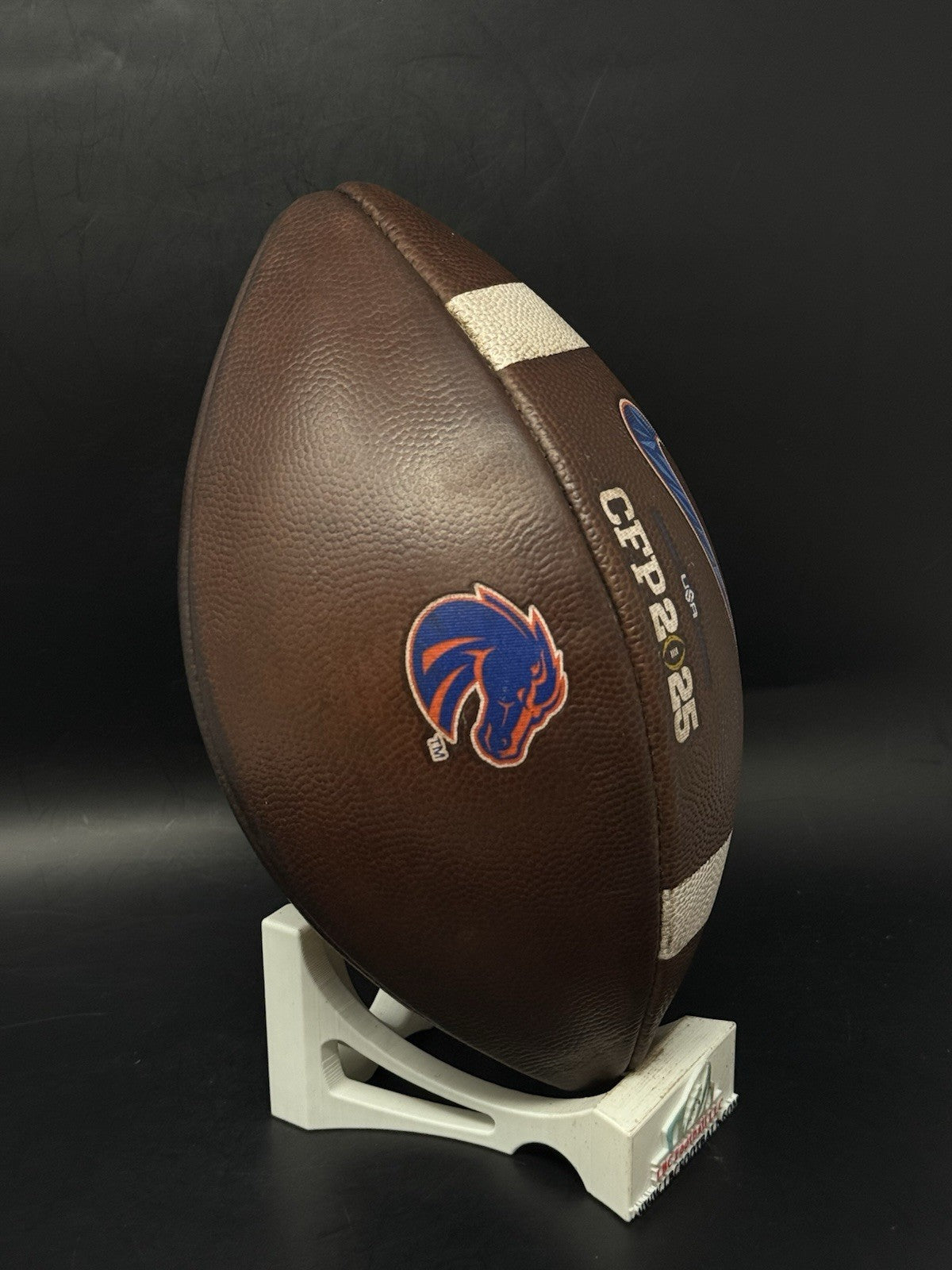 Produced to the same specifications used by the team during the 2025 CFP playoff run. The football was just recently fully game prepped and comes with softened and darkened leather panels. The bladder holds air just fine, perfect for display or usage by any Boise State fan.