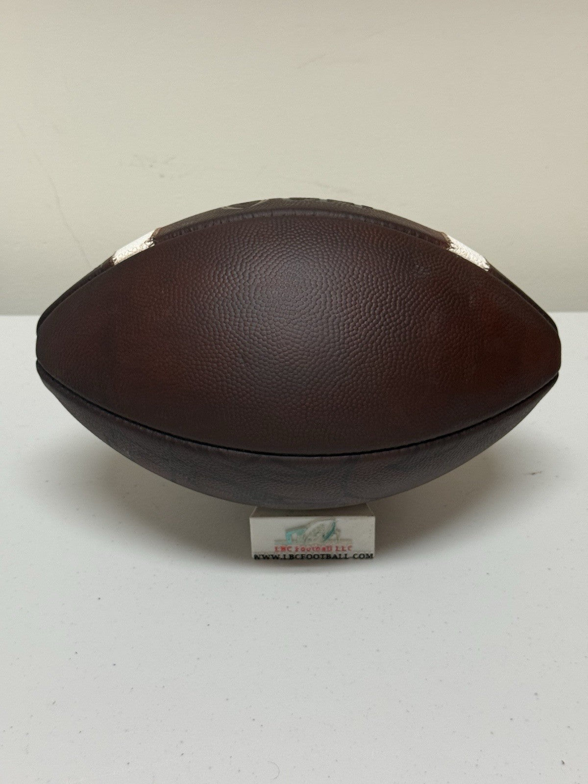 This particular ND football just went through a weeklong Game Prep process which has taken this brand-new ball through various steps that include brushing, mudding, conditioning, brushing and more brushing...the end result being a darker and softer paneled football that's perfect for display or usage.