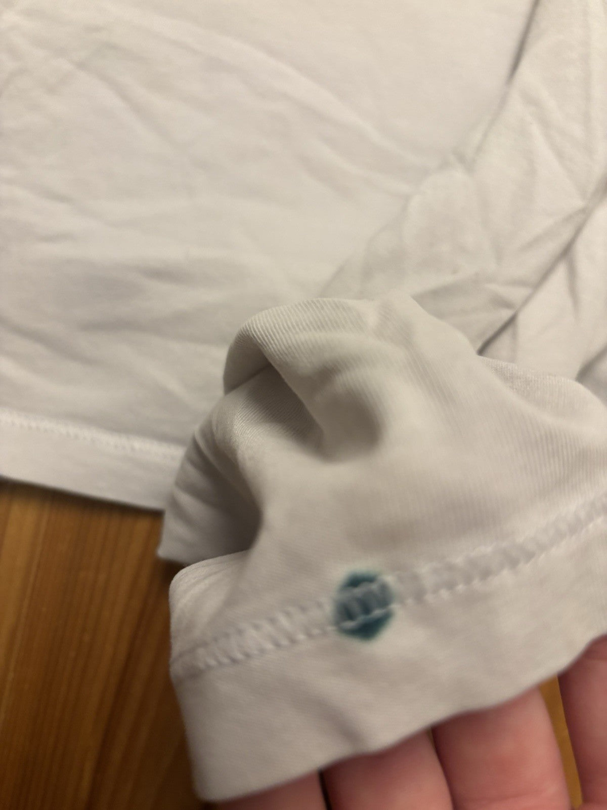 Item was used by the program, overall great condition but does have a small green marking near left hand cuff area. Please refer to photos in the listing.