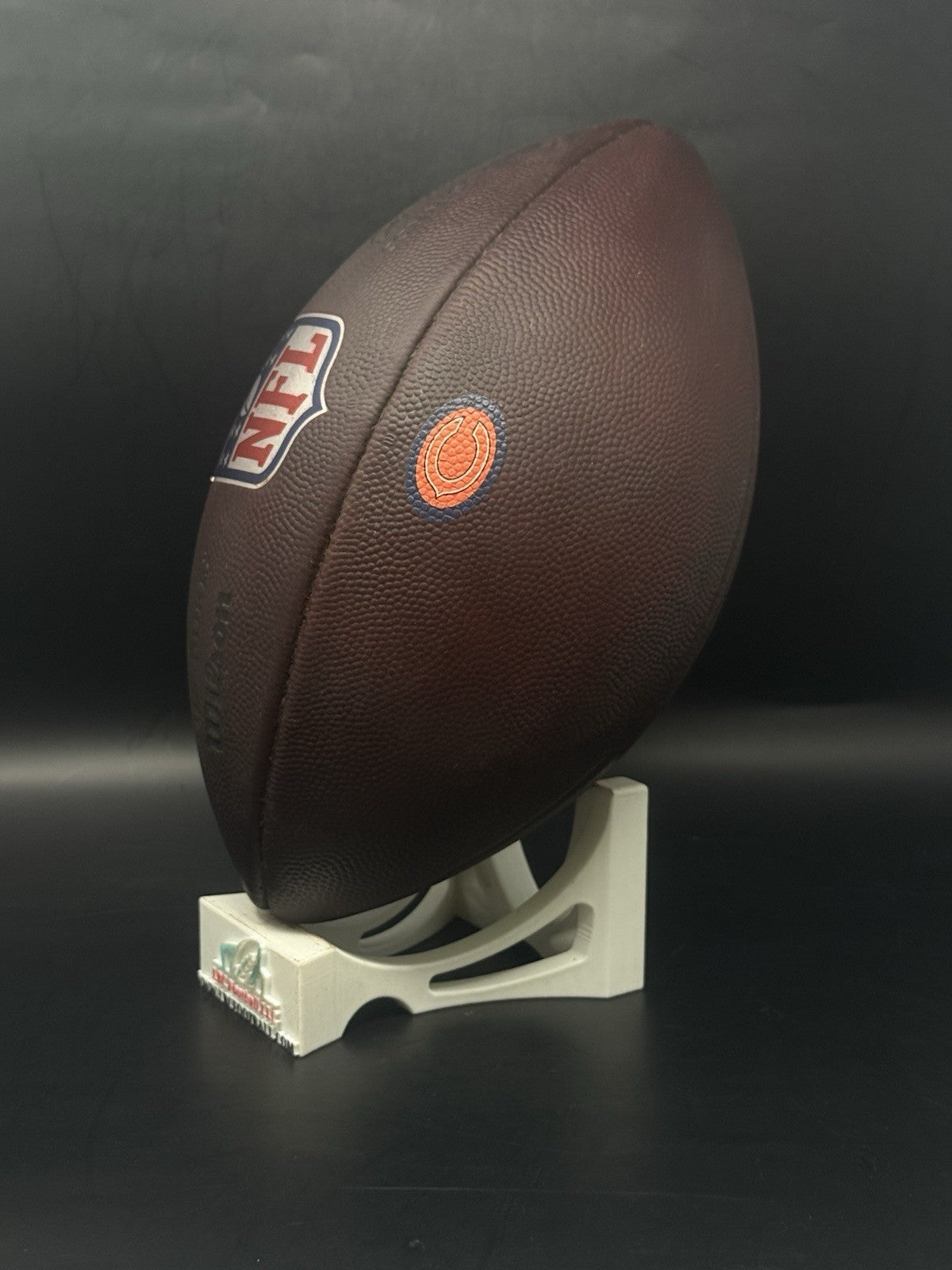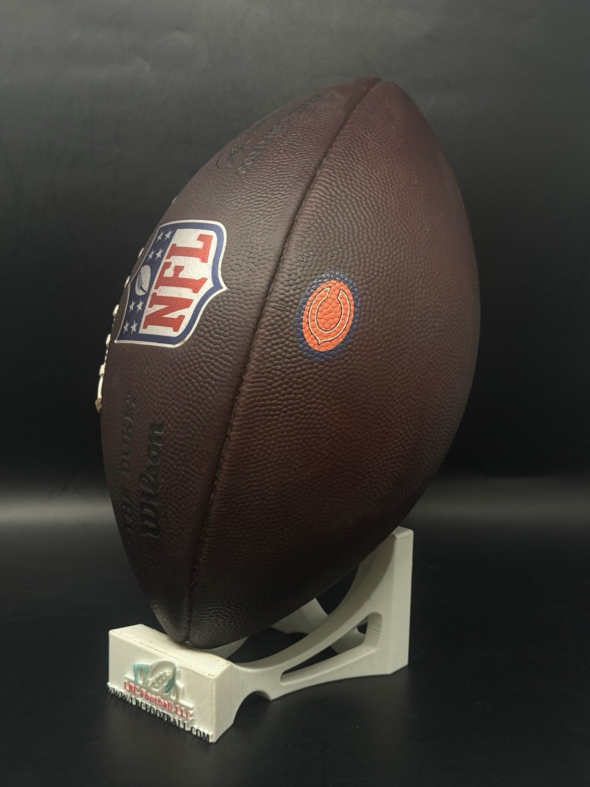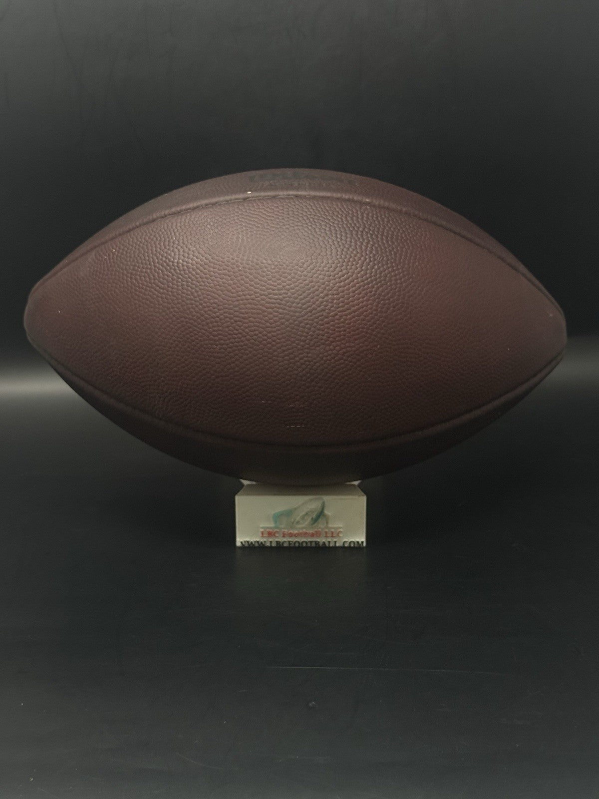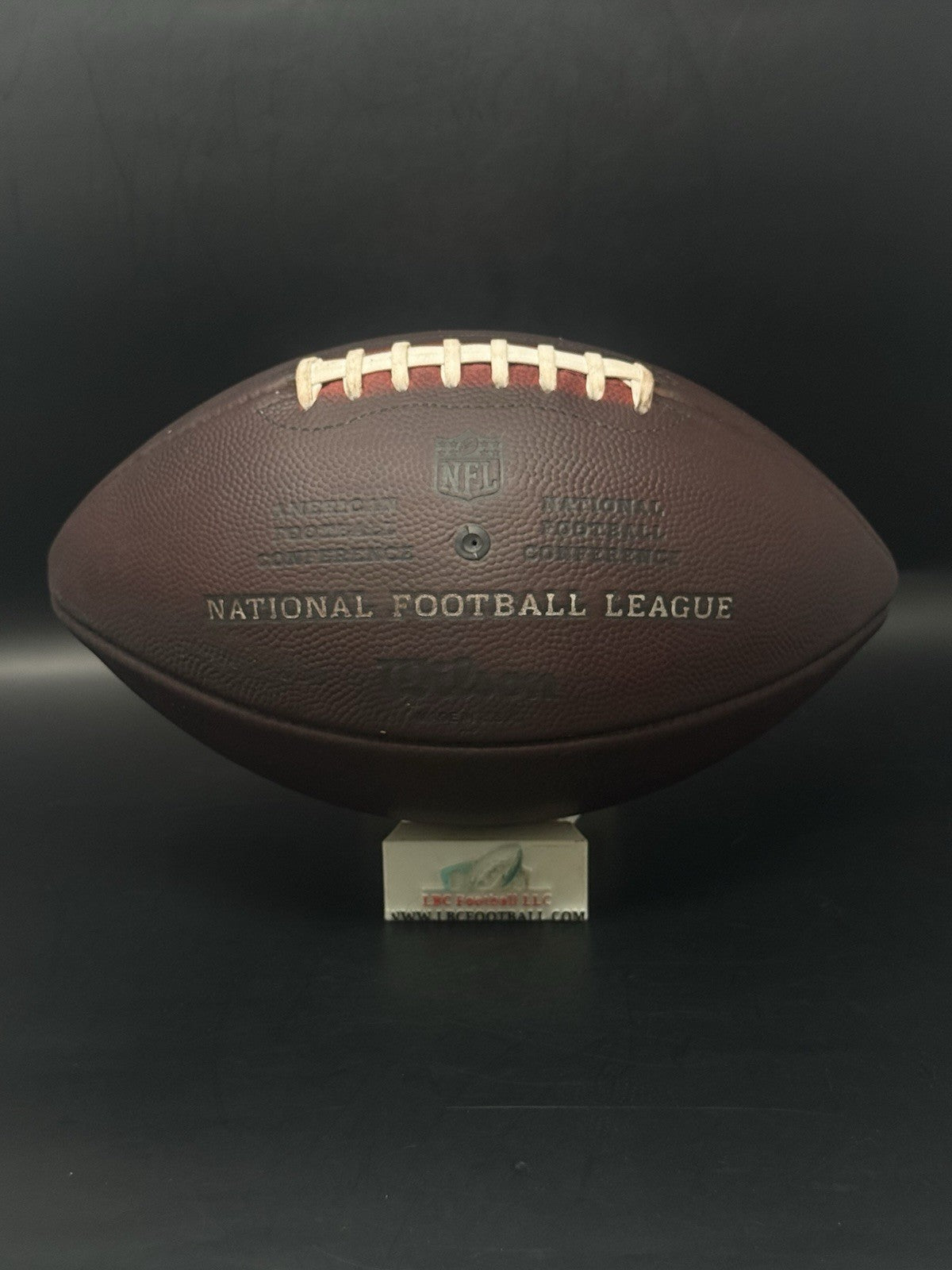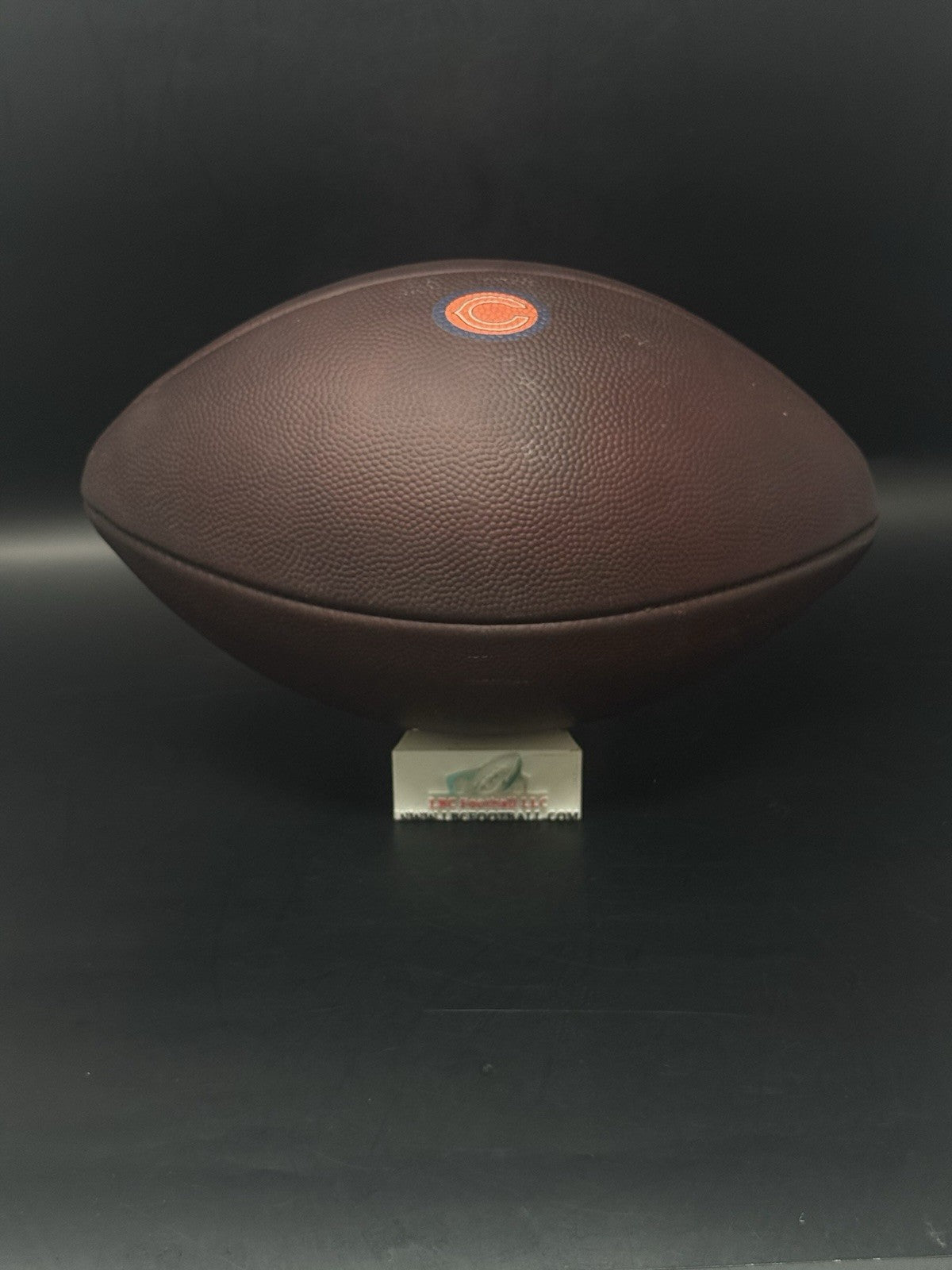 Authentic Chicago Bears Team Issued Wilson The Duke NFL Leather Football that comes fully game prepped. The embossed team foil logo is still very well-intact, along with the white suede lacing and the bladder holds a full complement of air. The ball was just recently fully game prepped by LBC, and the leather panels are now softened, darkened and well-protected for any display shelf, office or even to use on the field.