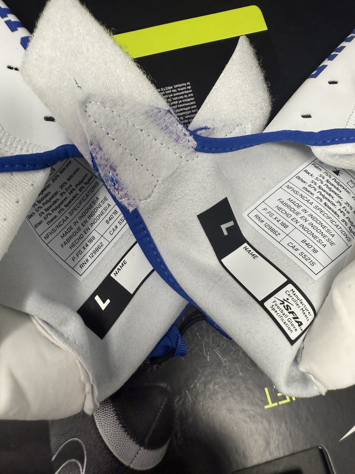 Please note, there is some minor color run-off with a purple tint near the wrist area of the gloves.