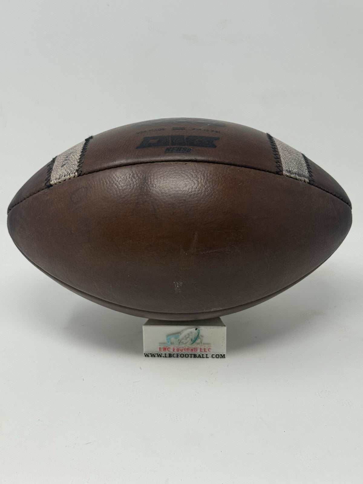 Brand new bladder, brand new Black NFL Suede style lacing, conditioned, tacked and brushed. This ball had been previously used by a high school program and comes nicely worked already. Perfect to be used for throwing or kicking.