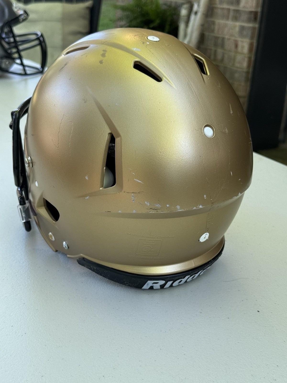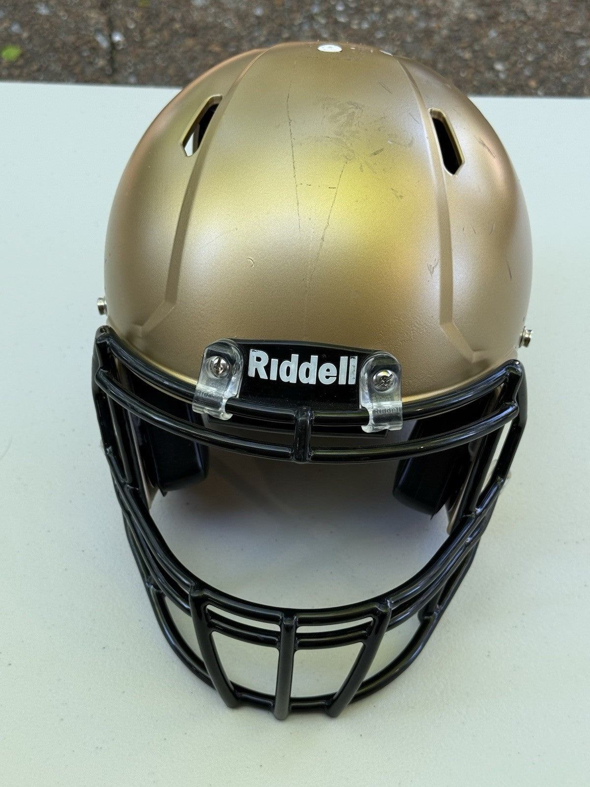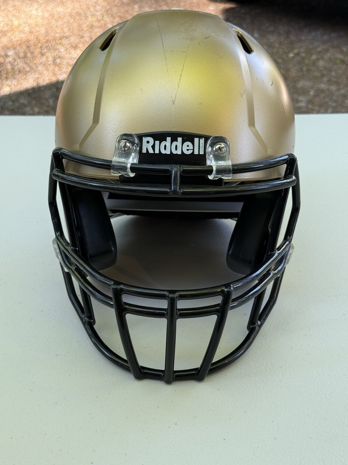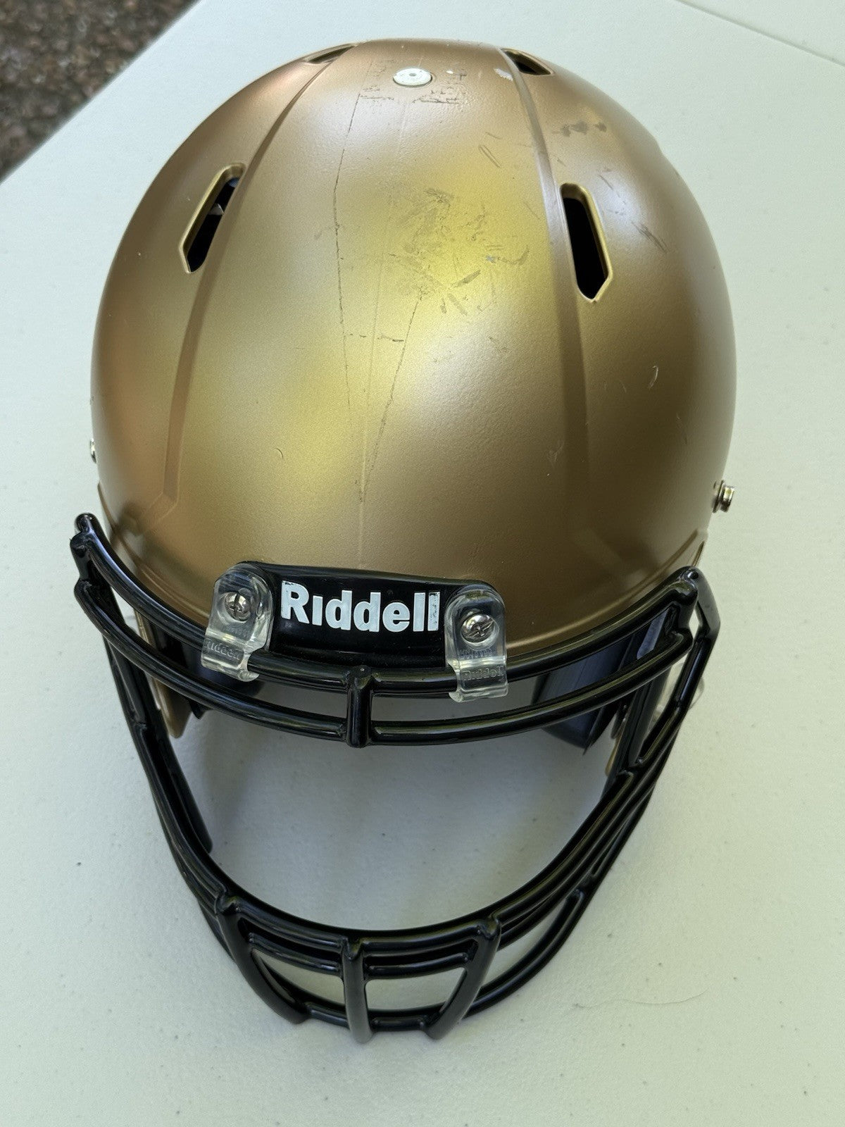 Riddell Speed Football Helmet that was originally used at the NCAA Division One college level and has been converted to a Trophy Helmet. Evidence of previous usage shown in photos, including some labels/stickers on the inner shell. Great helmet for displaying and customizing.