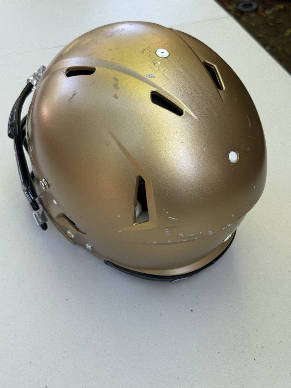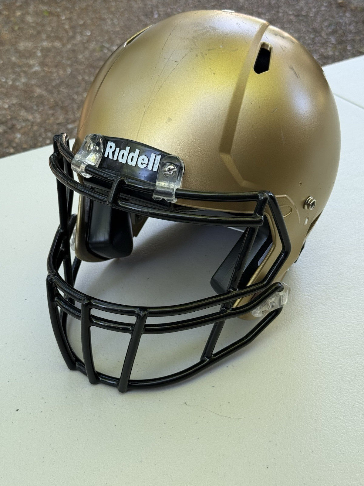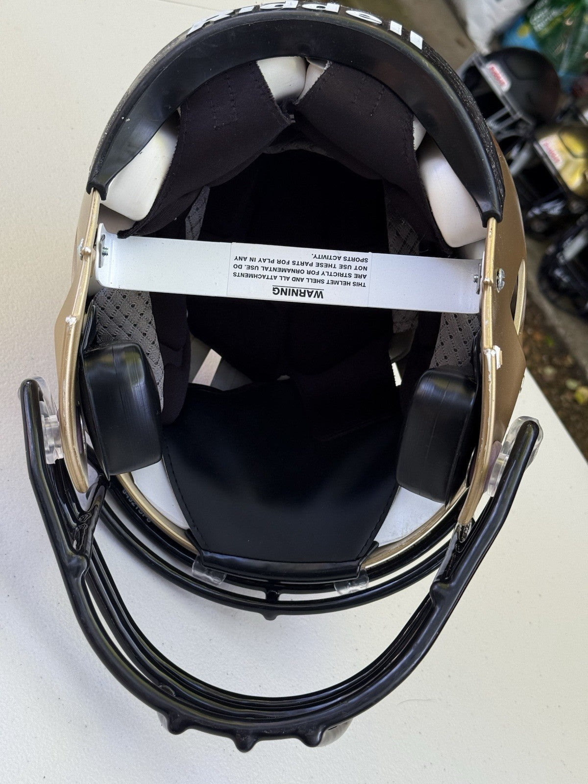 Riddell Speed Football Helmet that was originally used at the NCAA Division One college level and has been converted to a Trophy Helmet. Evidence of previous usage shown in photos, including some labels/stickers on the inner shell. Great helmet for displaying and customizing.