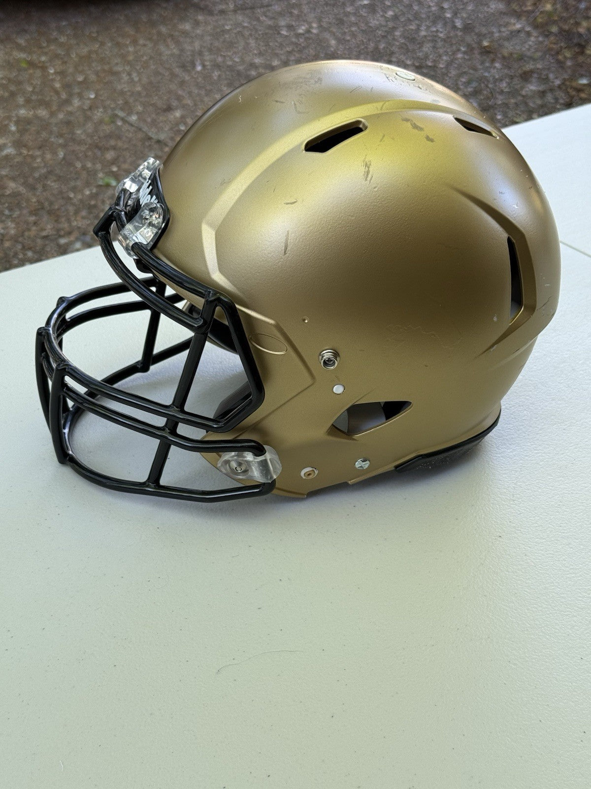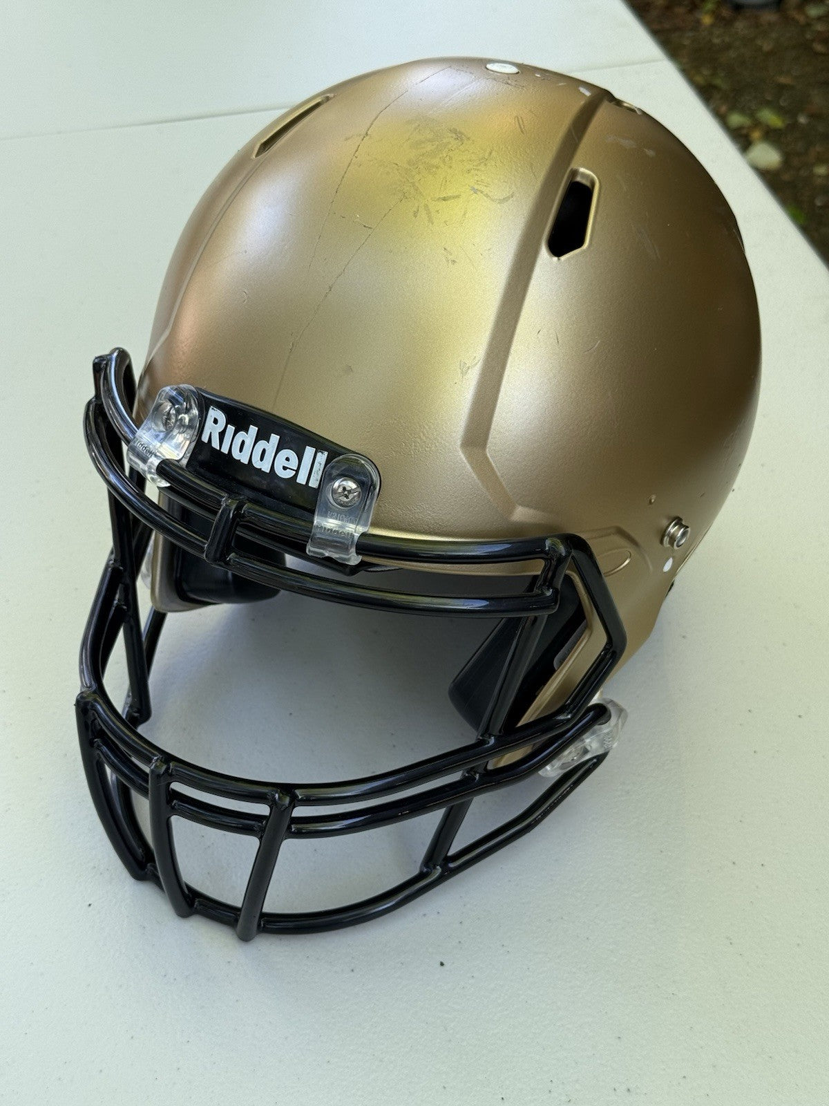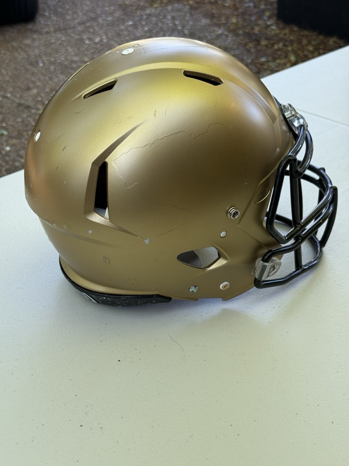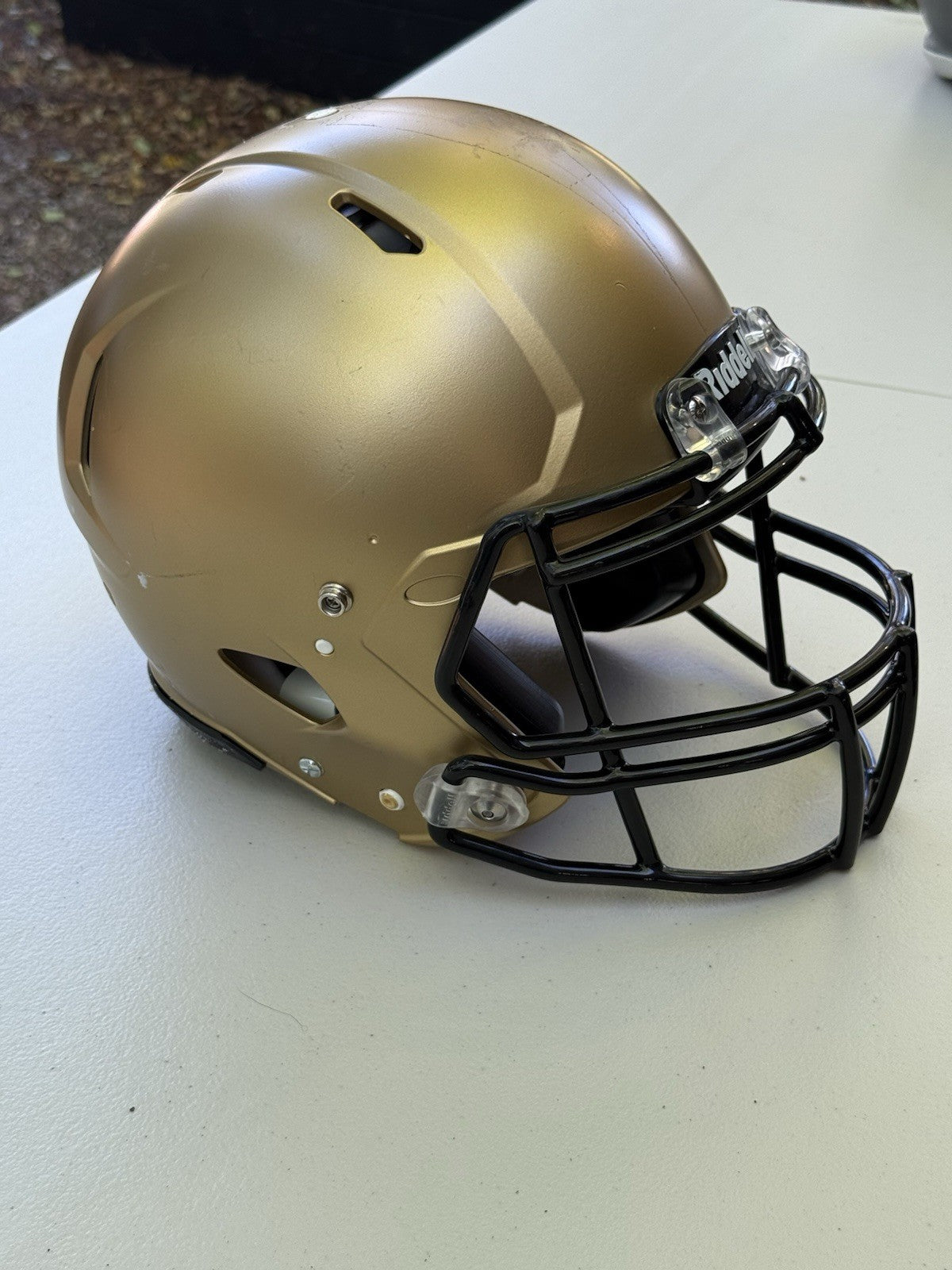 Riddell Speed Football Helmet that was originally used at the NCAA Division One college level and has been converted to a Trophy Helmet. Evidence of previous usage shown in photos, including some labels/stickers on the inner shell. Great helmet for displaying and customizing.