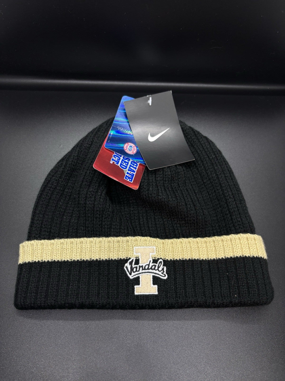 On Field / Football Team Issued Idaho Vandals Nike Black Snow Beenie Hat / Cap with original tags.