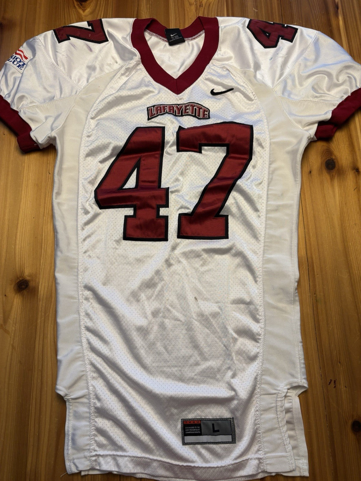 Authentic Lafayette College Leopards Game Used / Worn Nike NCAA Football Jersey. This jersey is still in great condition and is sold as shown in the listing photos.
