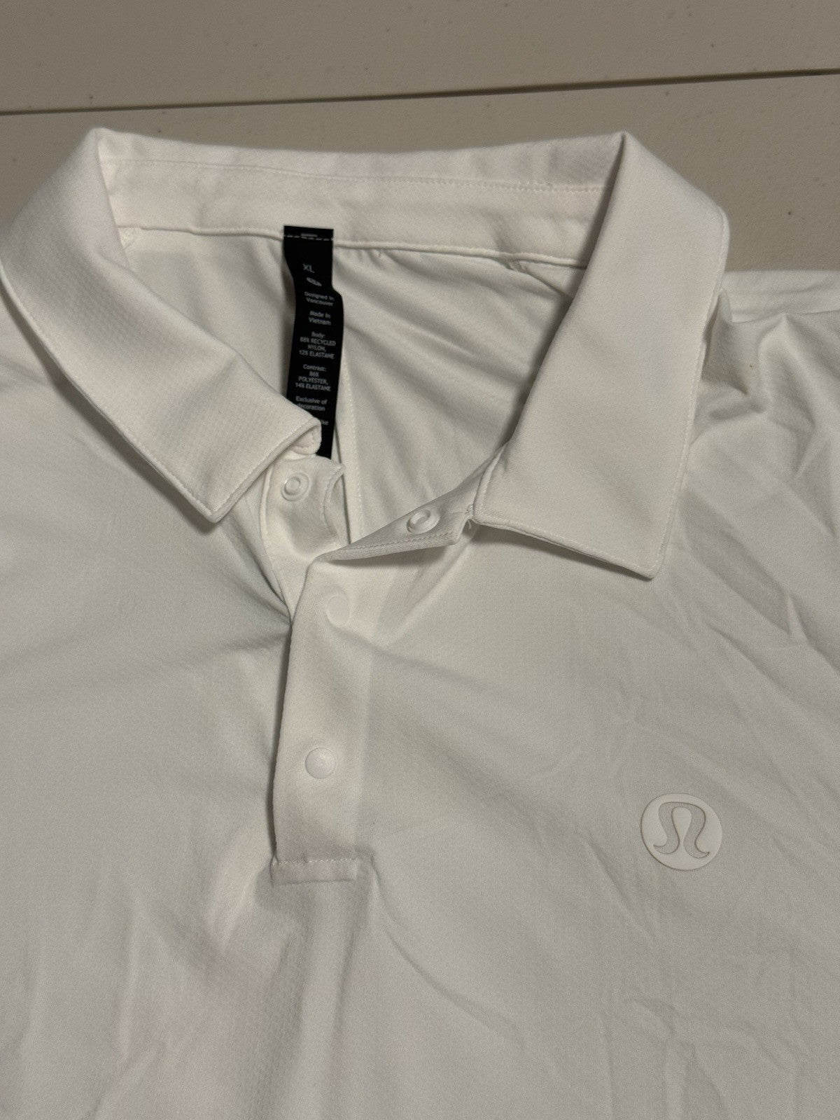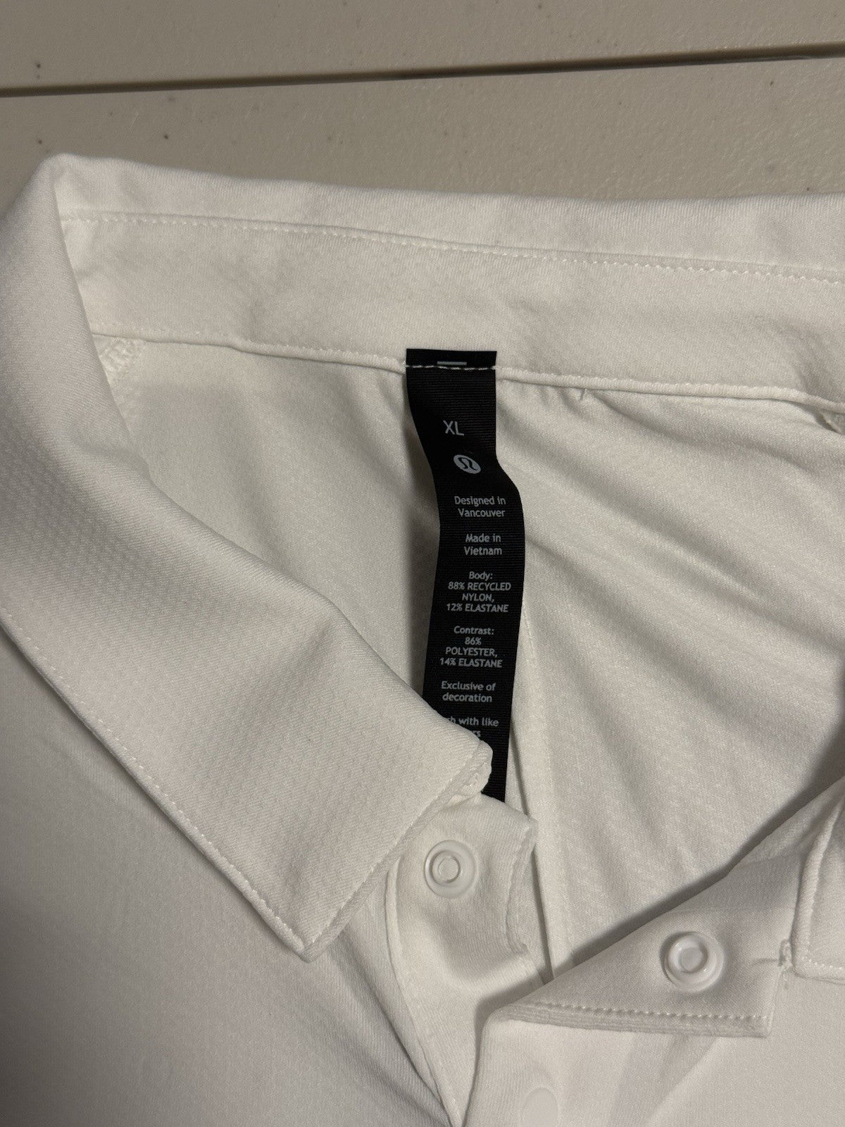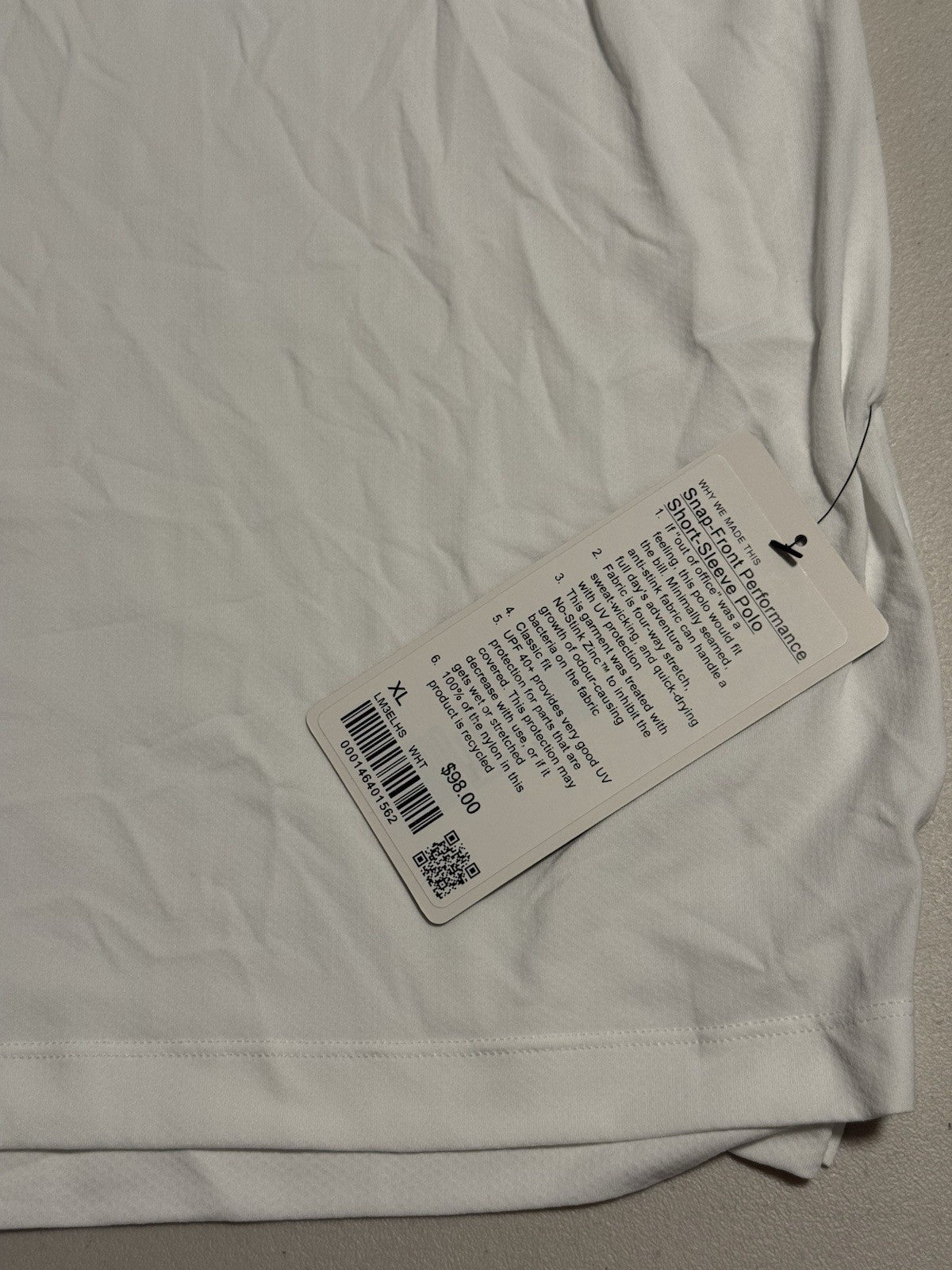 The Lululemon Snap Front Performance Short Sleeve White Polo XL is a versatile and stylish shirt suitable for various occasions such as travel, casual outings, formal events, work or business meetings. Made from a blended fabric, this classic fit polo features a collared neckline with a snap closure, making it easy to wear and comfortable for everyday use. The white color and solid pattern add a clean and preppy touch, while the shirt length of 30 inches makes it suitable for wearing during winter, fall, or spring seasons. With features such as pockets and Lululemon branding, this polo is a practical and fashionable choice for men looking for a high-performance shirt.