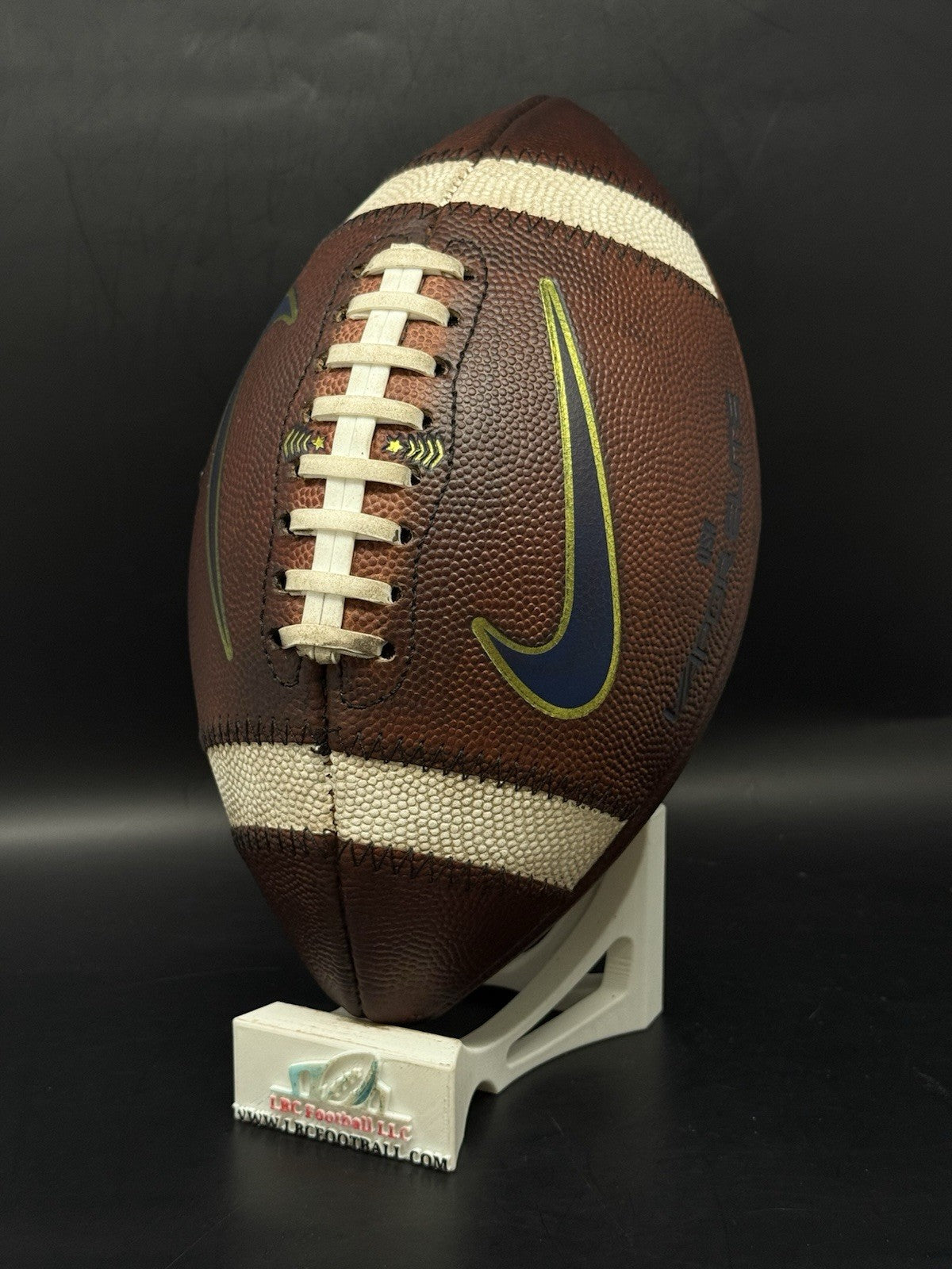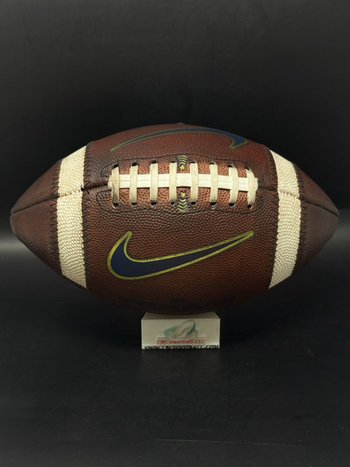 This style Michigan game ball was used sometime during the 2018-2020 seasons and was a style that purposefully removed a team logo off the panel (apparently because too many were leaving the field!), so the team opted in with a Michigan "Maize and Blue" color Nike logo.