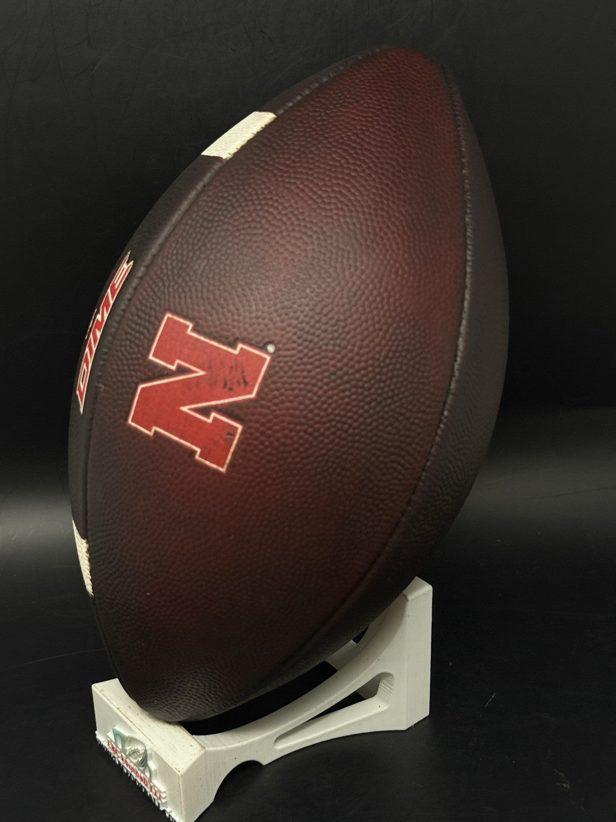 This Huskers game ball comes recently Fully Game Prepped. The bladder holds air just fine, white suede lacing very well intact as well. There are some minor blemishes on the embossed logo. Please refer to the listing photos for all the physical details of this game ball. Please don't hesitate to reach out with any questions. Item ships with care, buy with confidence.