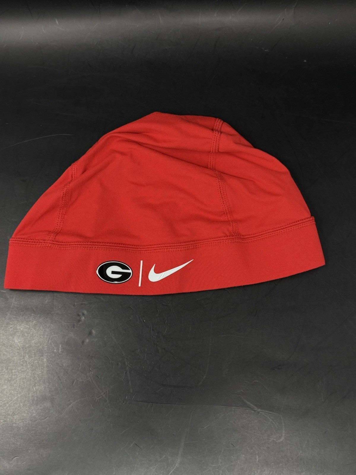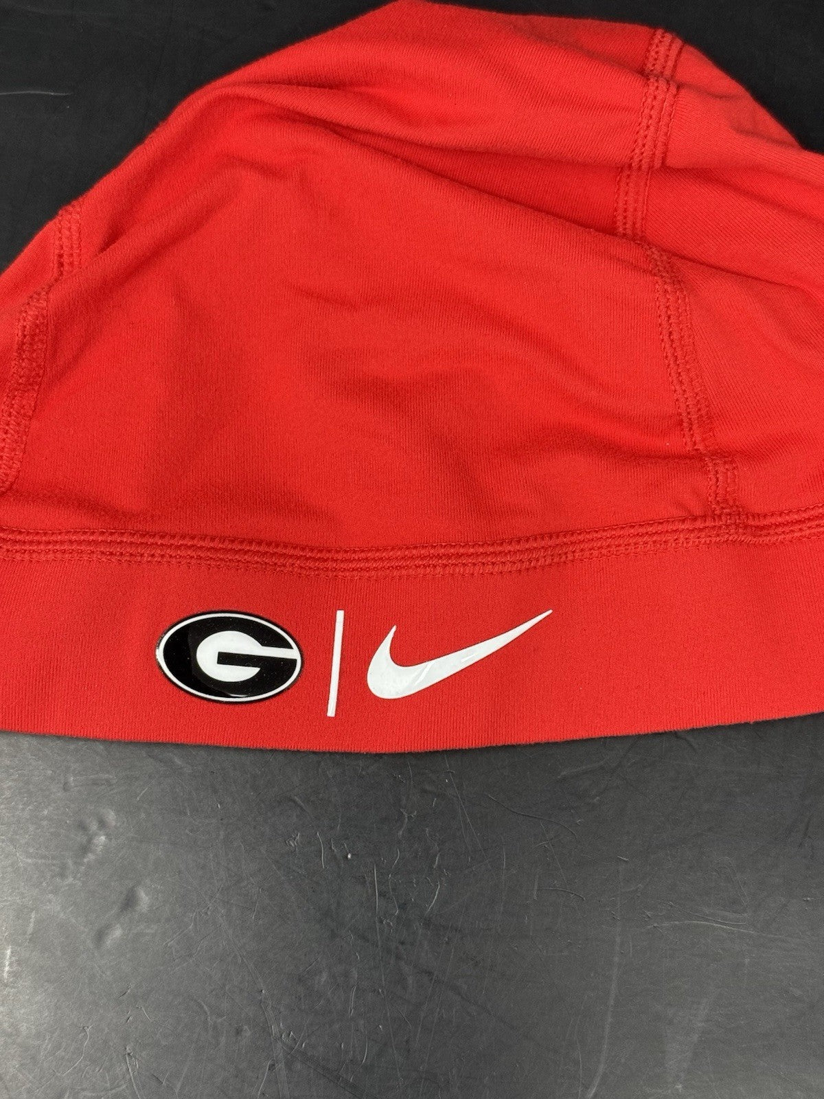 Authentic Georgia Bulldogs football team issued Nike red skull wrap head cap.