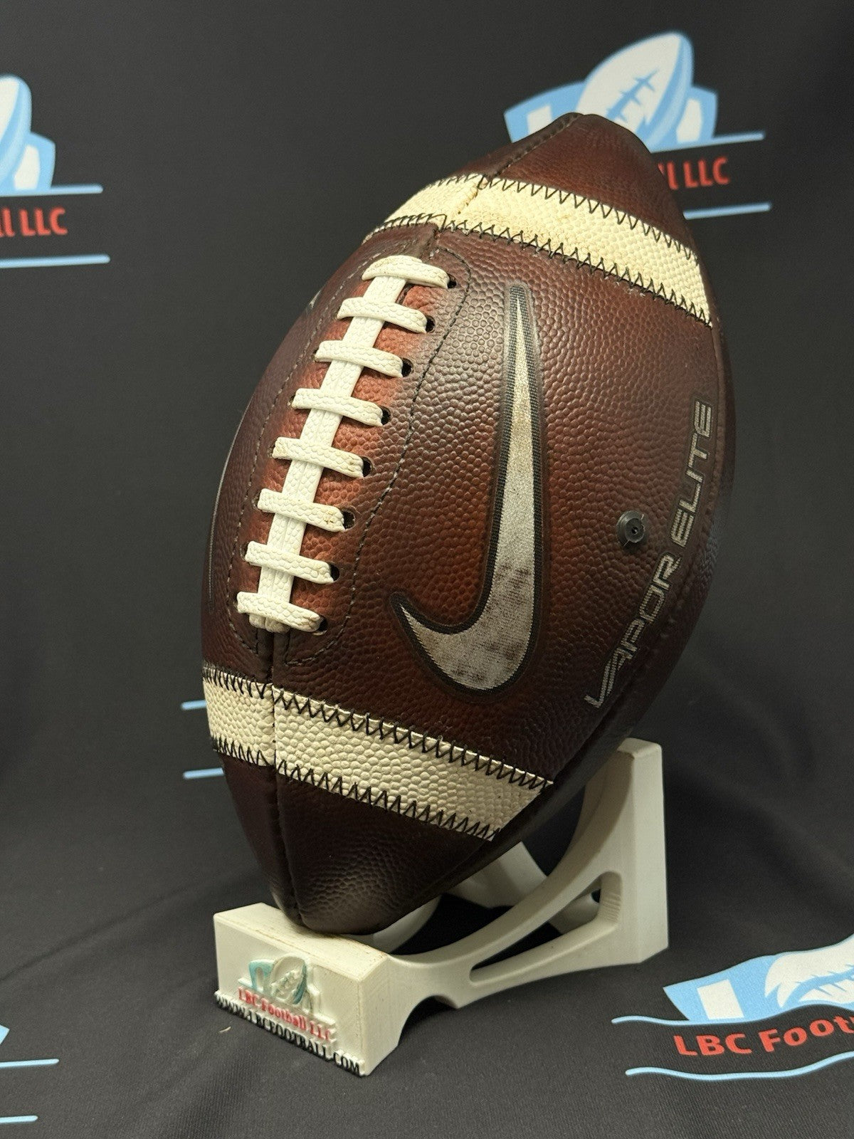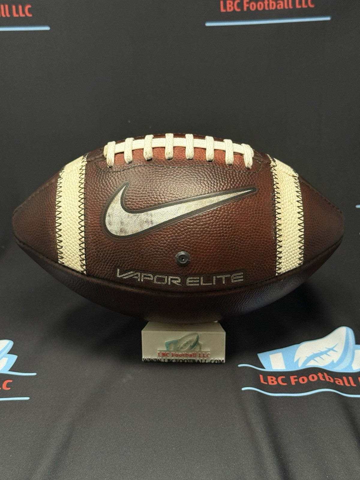 Rare Youth Size 8 Nike Vapor Elite with the same style leather panels used by college teams. The white stripes come with custom bordered stitching and the panels with metallic silver embossed Nike logos. The ball was brand new prior to being put through a weeklong game prep process and is now properly broken in and ready for training or game usage on day one. Please note some minor blemish one of the Nike Swoosh's; occurred during the break in processes.