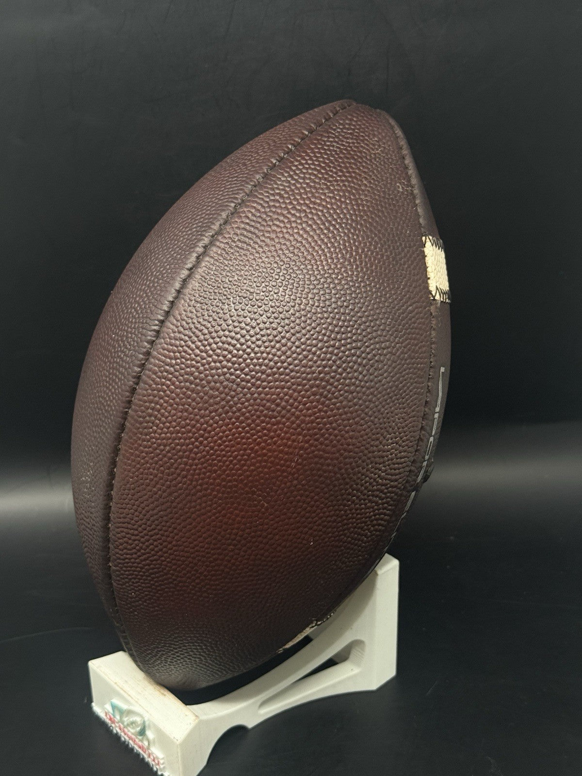 The ball was brand new prior to being put through a rigorous weeklong game prep process and is now properly broken in and ready for training or game usage on day one. With continuous maintenance (i.e. re-applying a tacky bar with a brush after every few usages, is key to keeping the leather supple and conditioned and will help to further darken the ball over time).