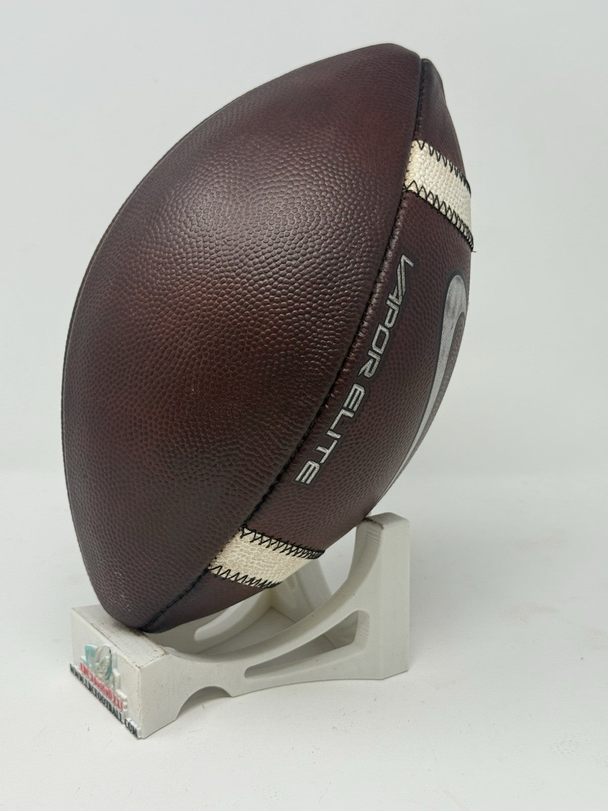 Rare Youth Size Nike Vapor Elite with the same style design used by numerous college teams. The white stripes come with custom bordered stitching and the panels with metallic silver embossed Nike logos. The ball was brand new prior to being put through a rigorous weeklong game prep process and is now properly broken in and ready for training or game usage on day one.