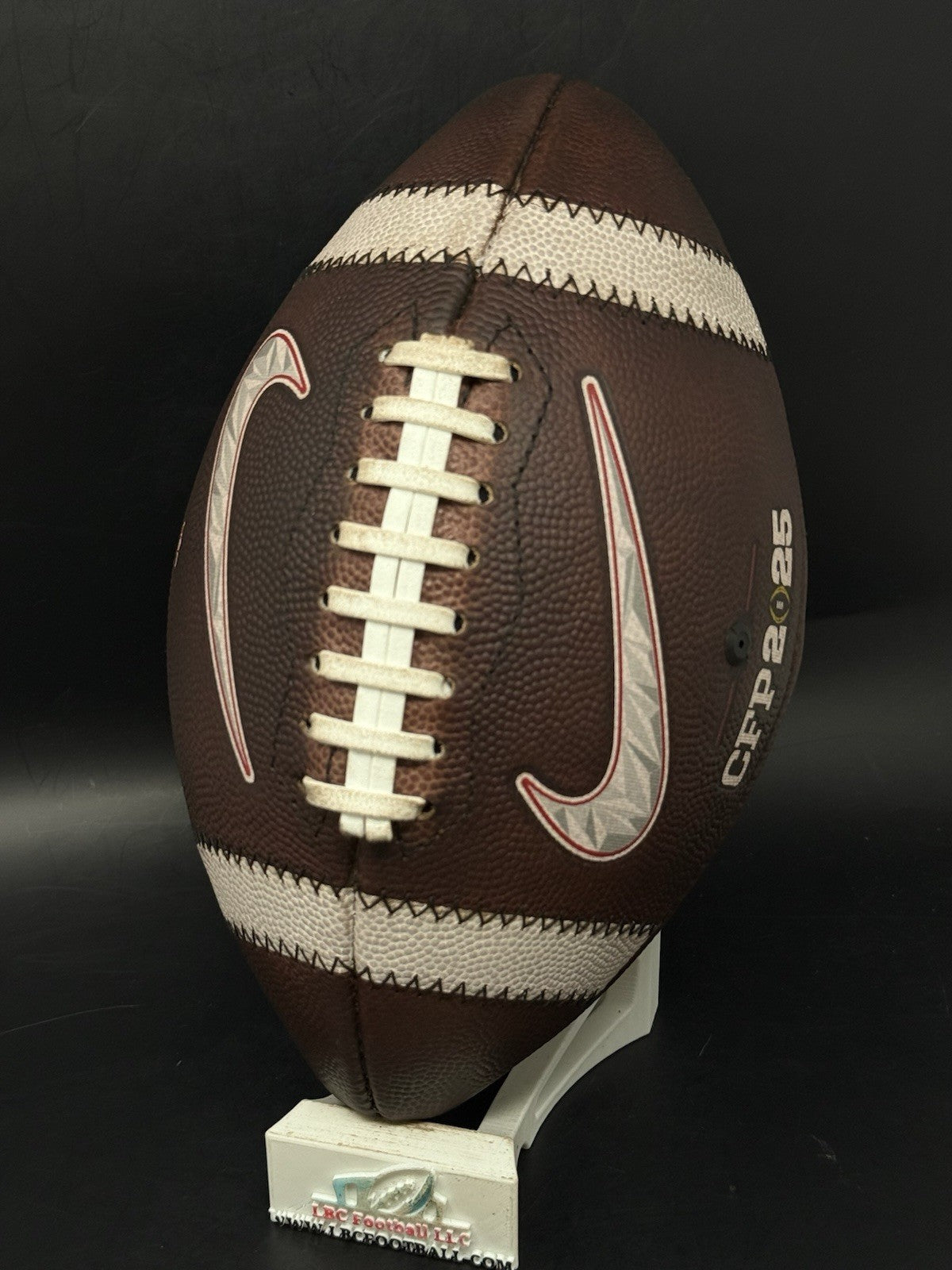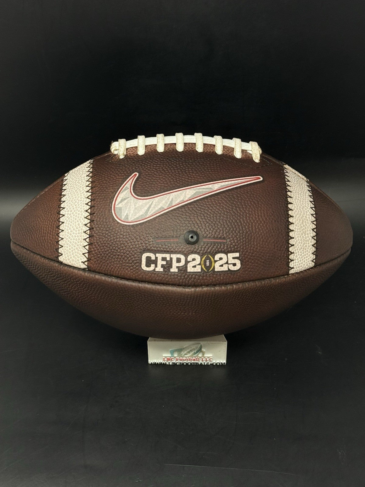 This ball is new and comes recently Fully Game Prepped. The bladder holds air just fine; school logo looks phenomenal and the white suede lacing still well-intact.