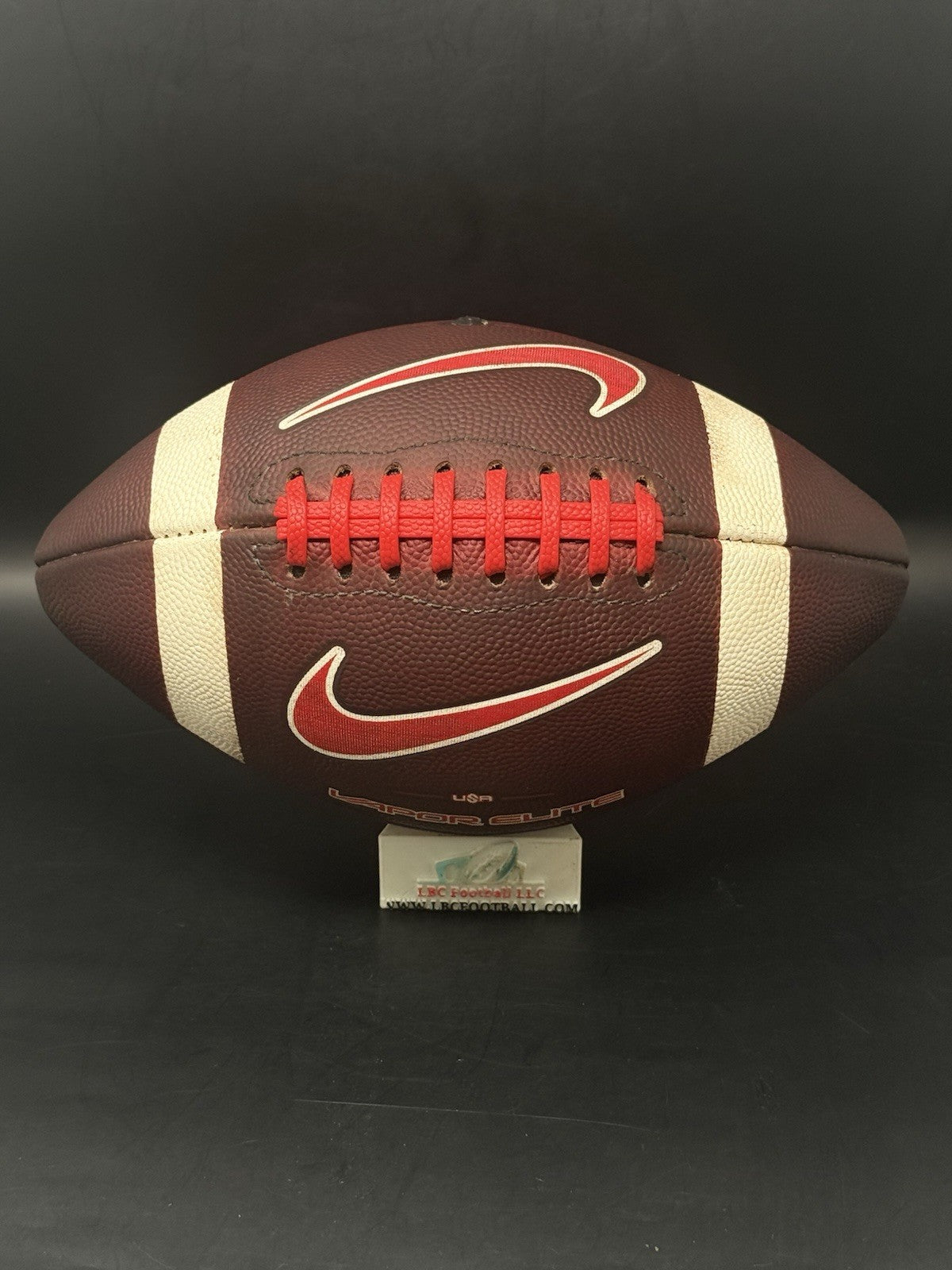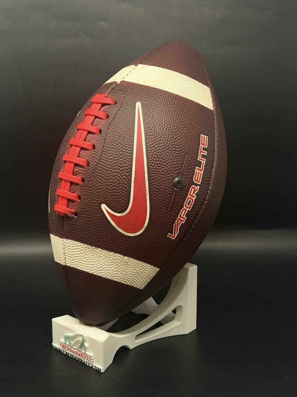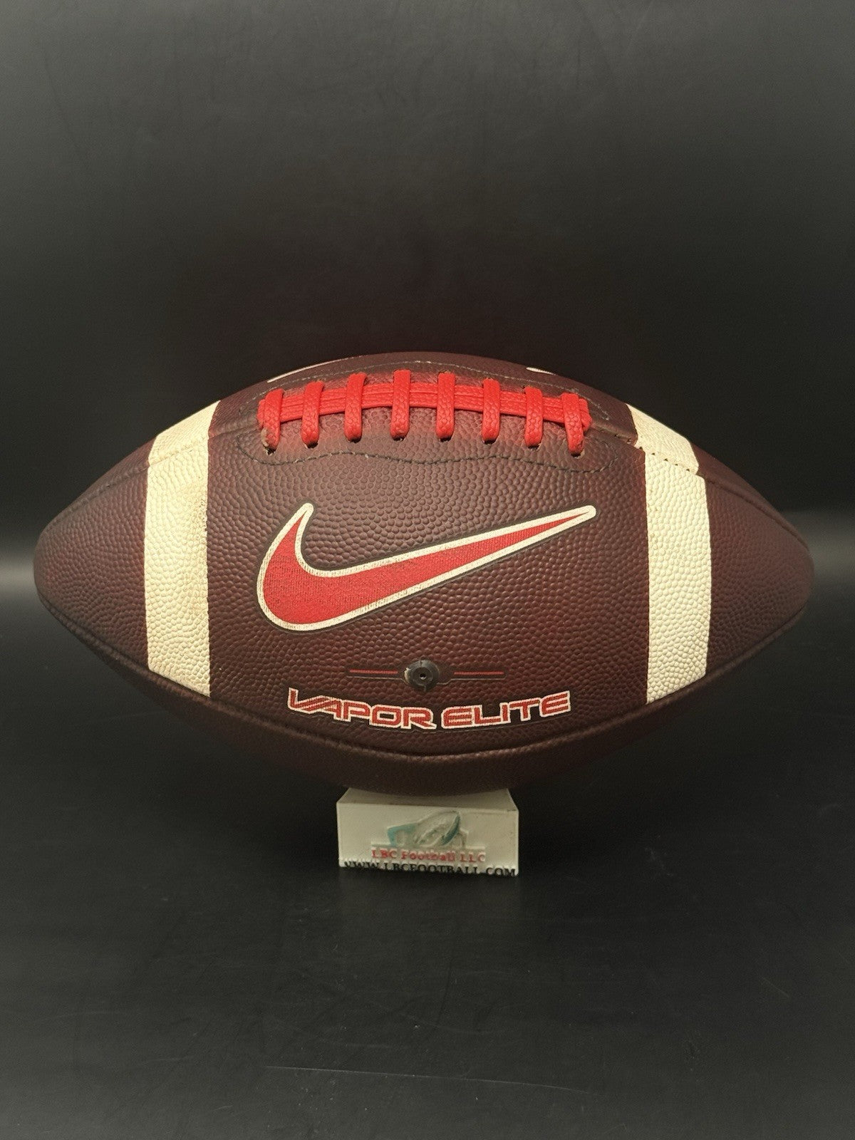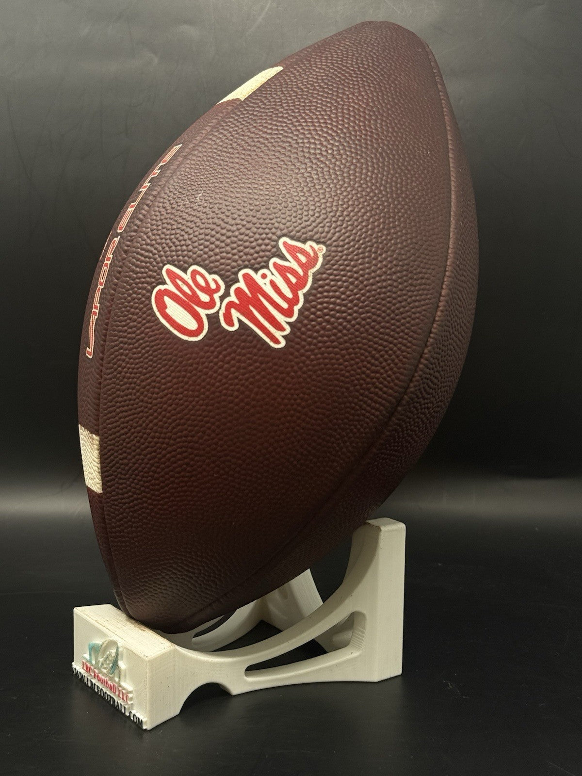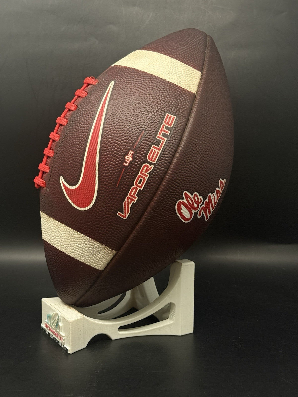 This Ole Miss game ball was just recently fully game prepped. The leather is now dark, tacked and the red tacky pebble lacing is in excellent condition. Perfect for display or even usage by any rising star.
