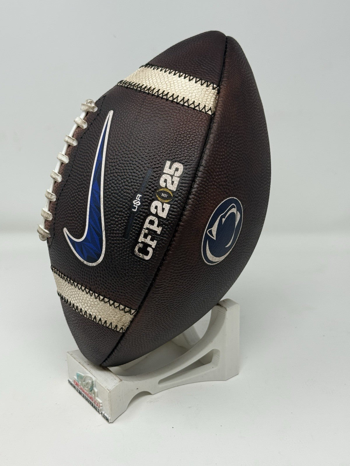 Produced to the same specifications used by the team during the 2025 CFP playoff run. The football was just recently fully game prepped and comes with softened and darkened leather panels. The bladder holds air just fine, perfect for display or usage by any PSU fan.