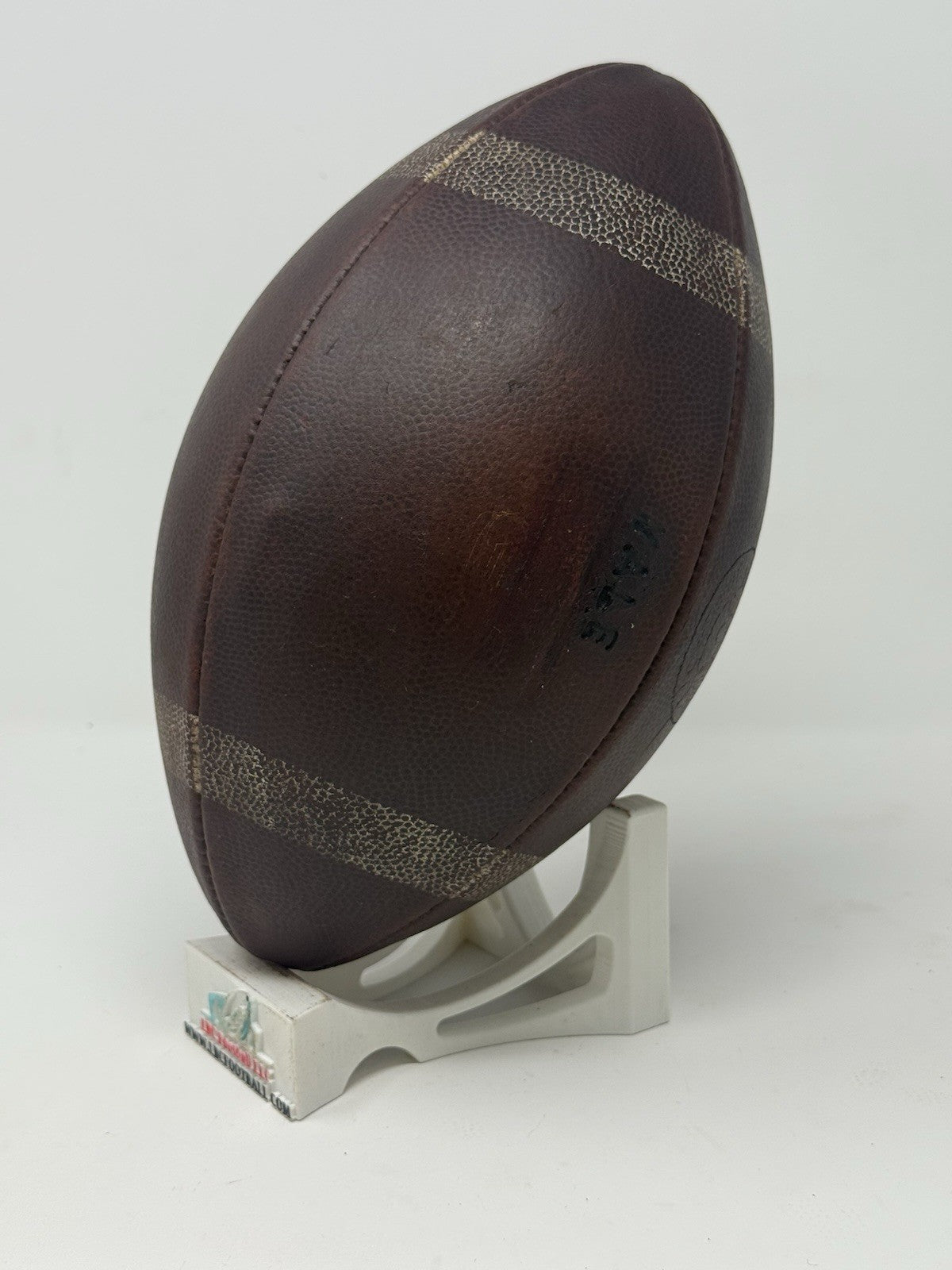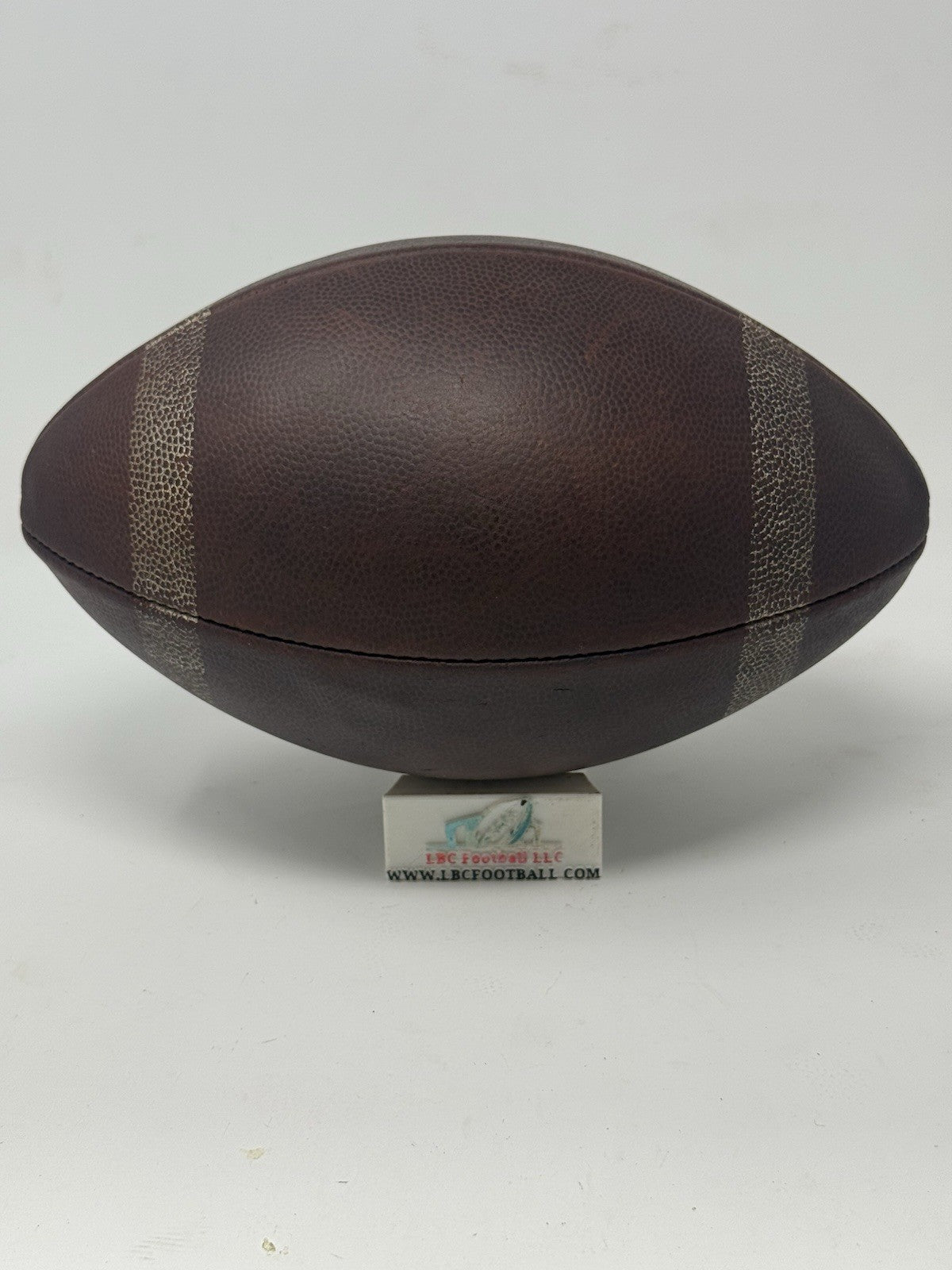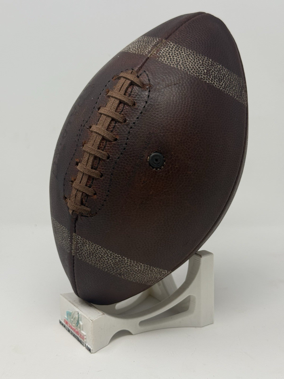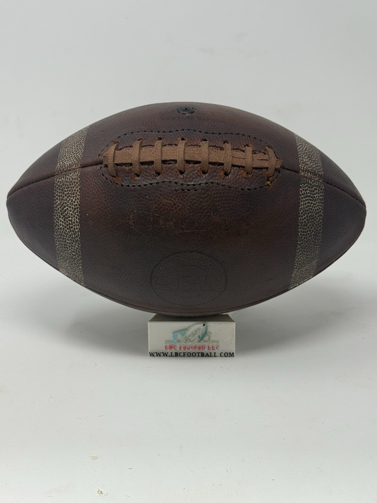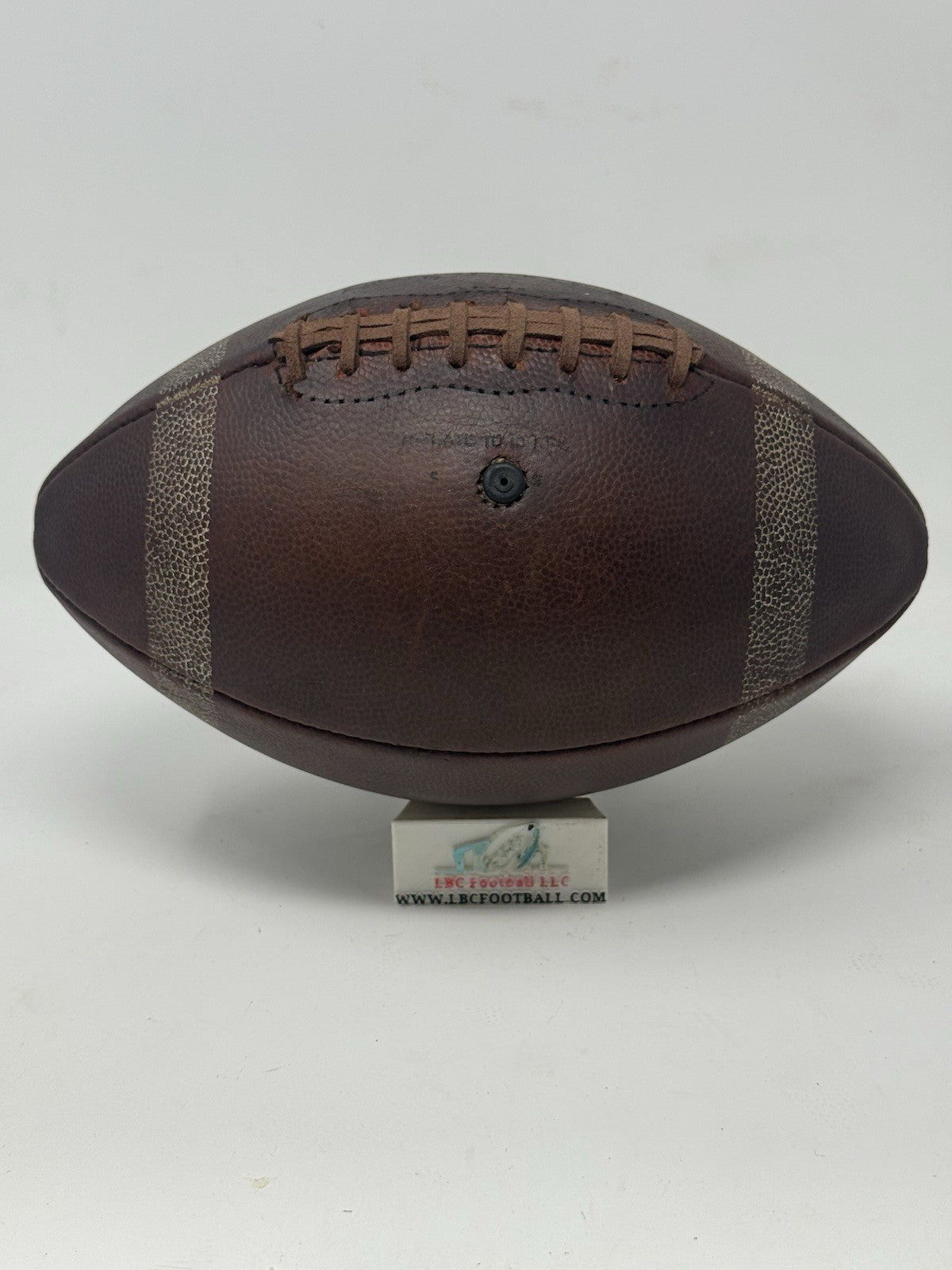 Very rare and unique Yale game ball from several decades ago (exact date unknown but likely 60's or 70's era). The original lacing has been replaced with its current brown suede style. The bladder holds a decent amount of air but due to the age of the ball it doesn't hold the full 13psi (but enough to keep the ball fully formed). The "Yale" logo comes branded on the panel. Perfect for display in any sports collection or office.