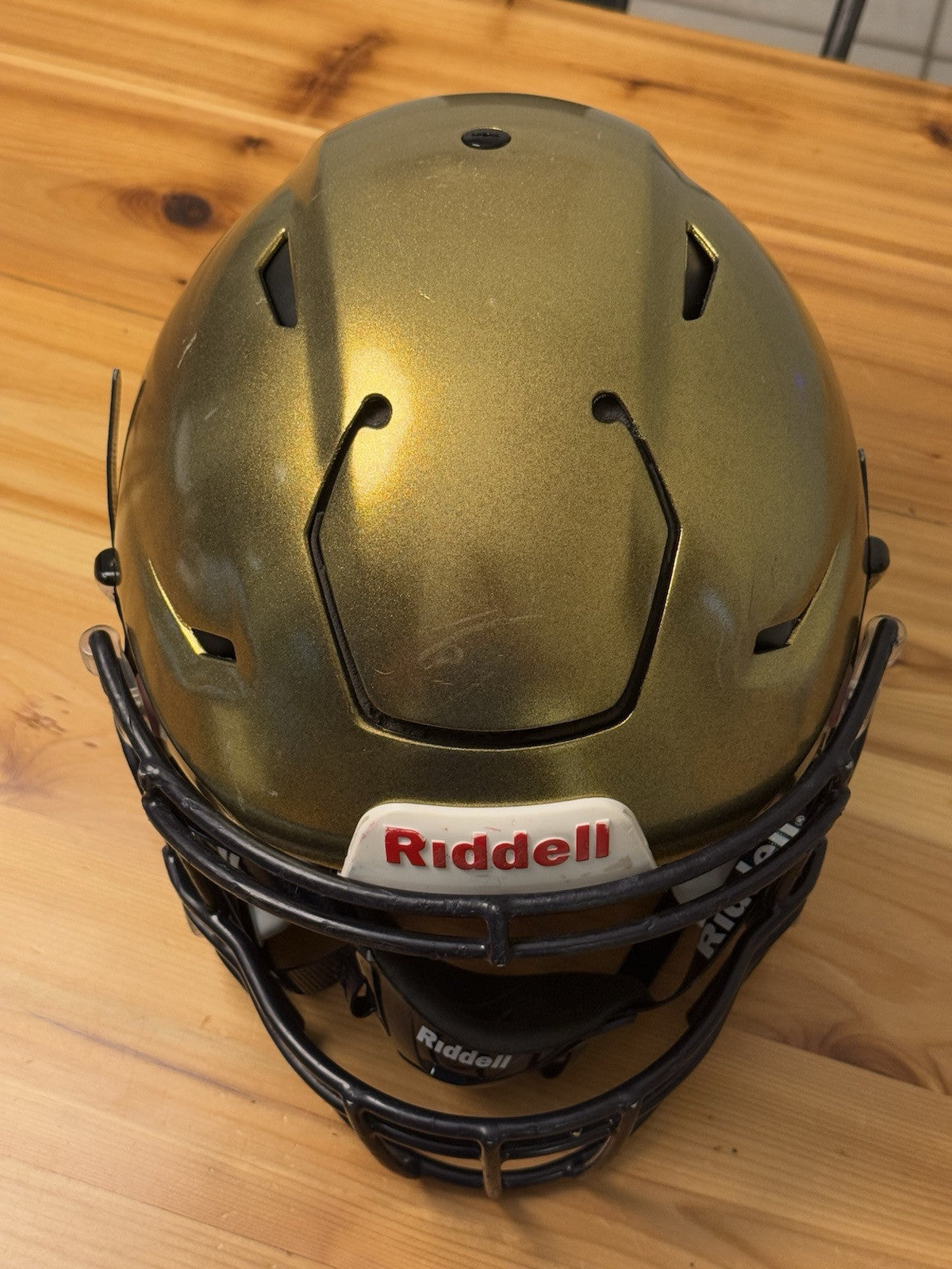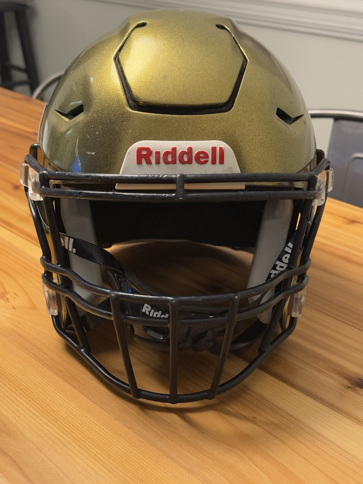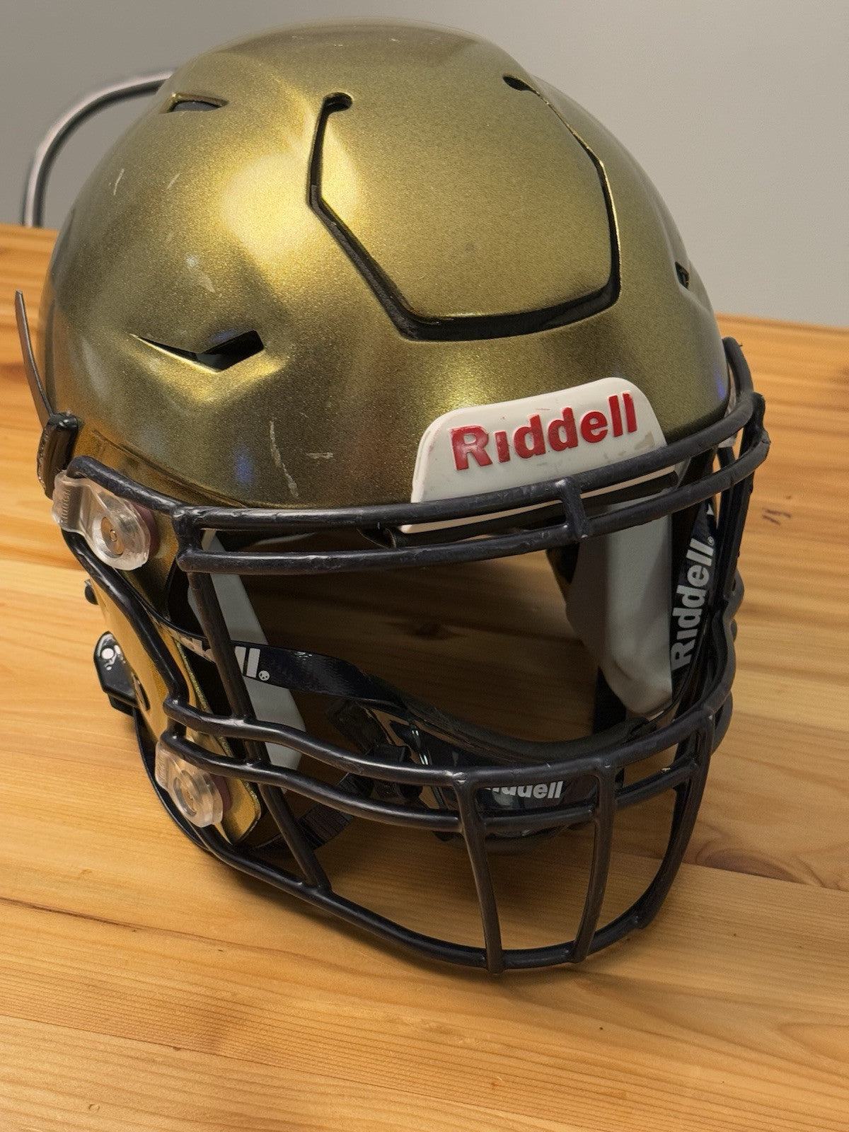 Riddell SpeedFlex Adult Size Extra Large Football Helmet that was used at the NCAA D1 level and comes as shown in the listing photos. Please note: prior to any additional usage with this helmet it should first be inspected and certified by an authorized inspector.