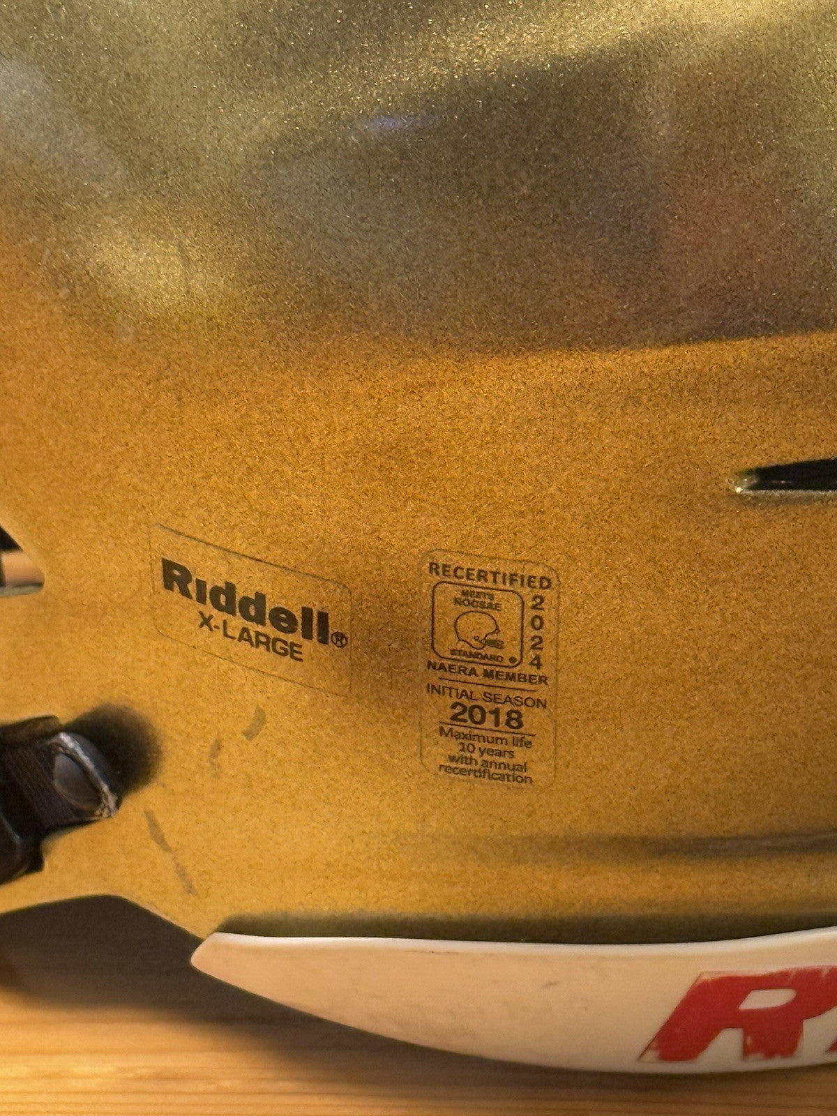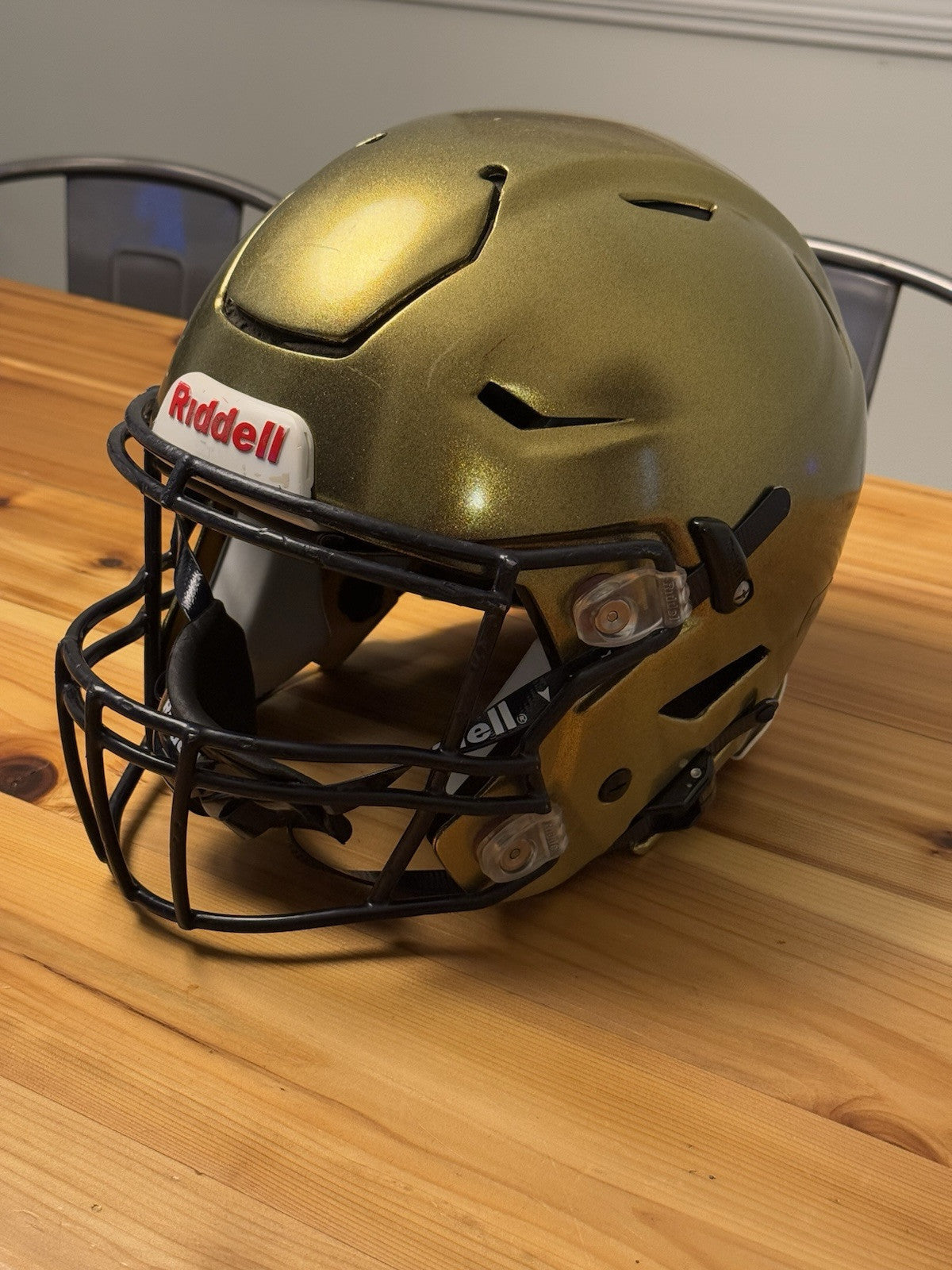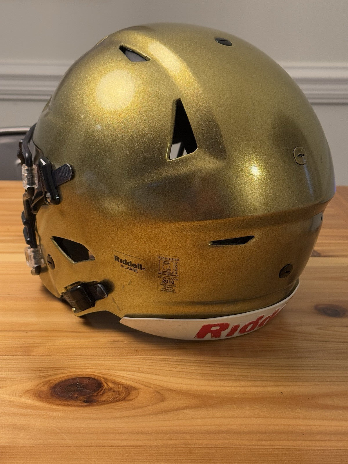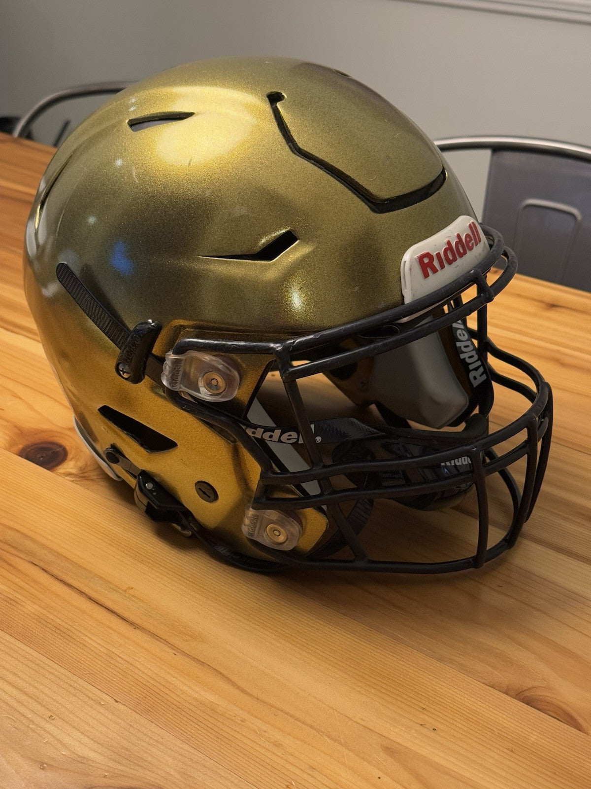 Riddell SpeedFlex Adult Size Extra Large Football Helmet that was used at the NCAA D1 level and comes as shown in the listing photos. Please note: prior to any additional usage with this helmet it should first be inspected and certified by an authorized inspector.
