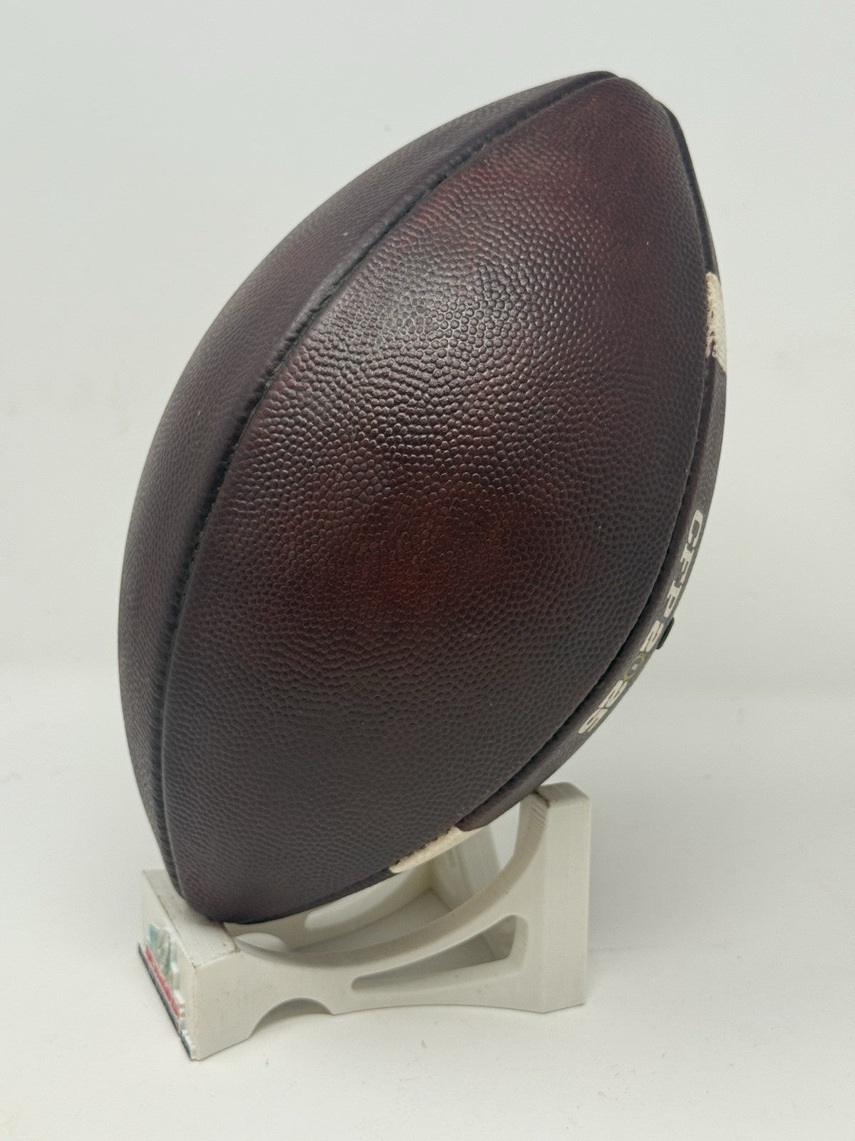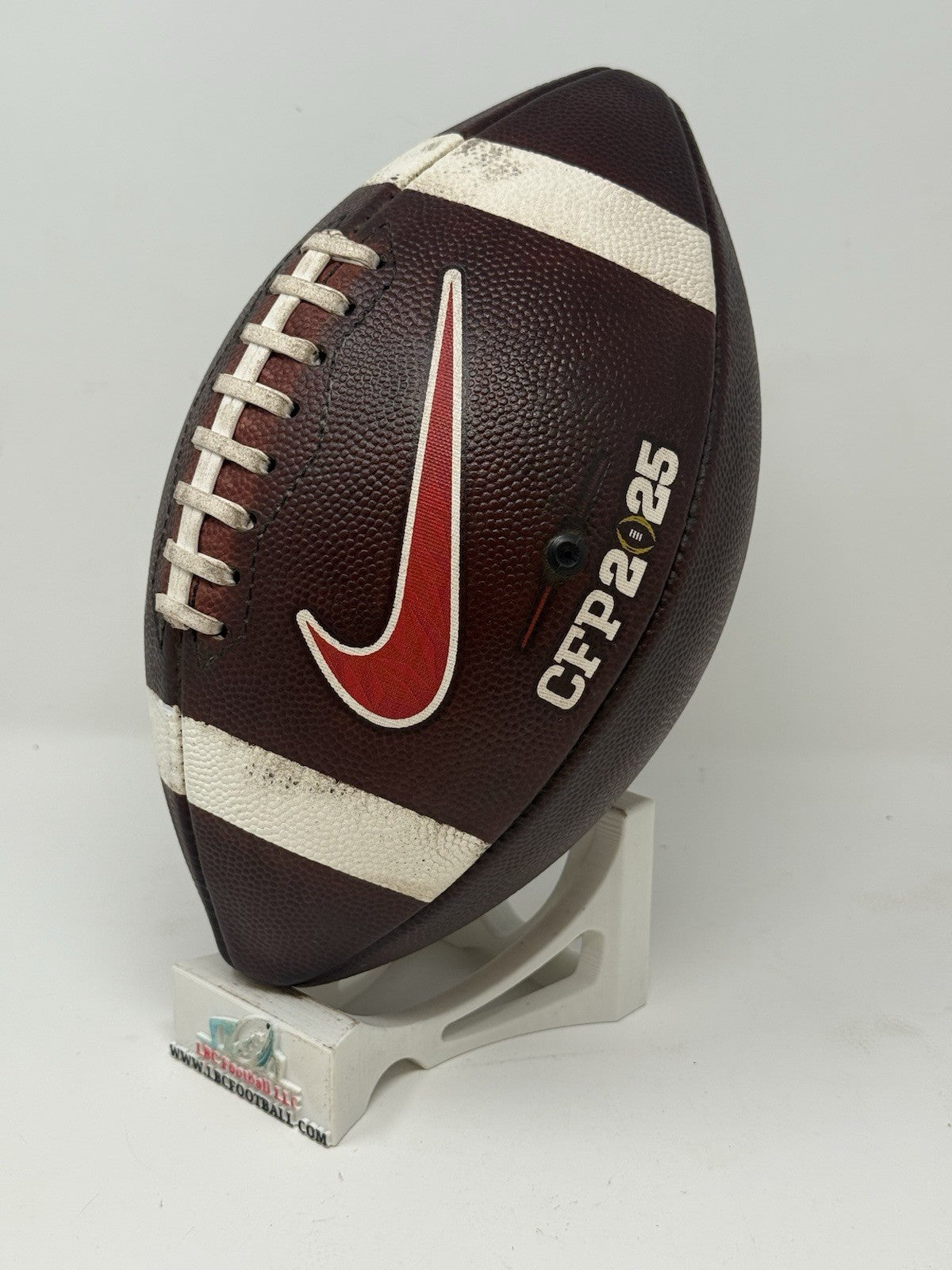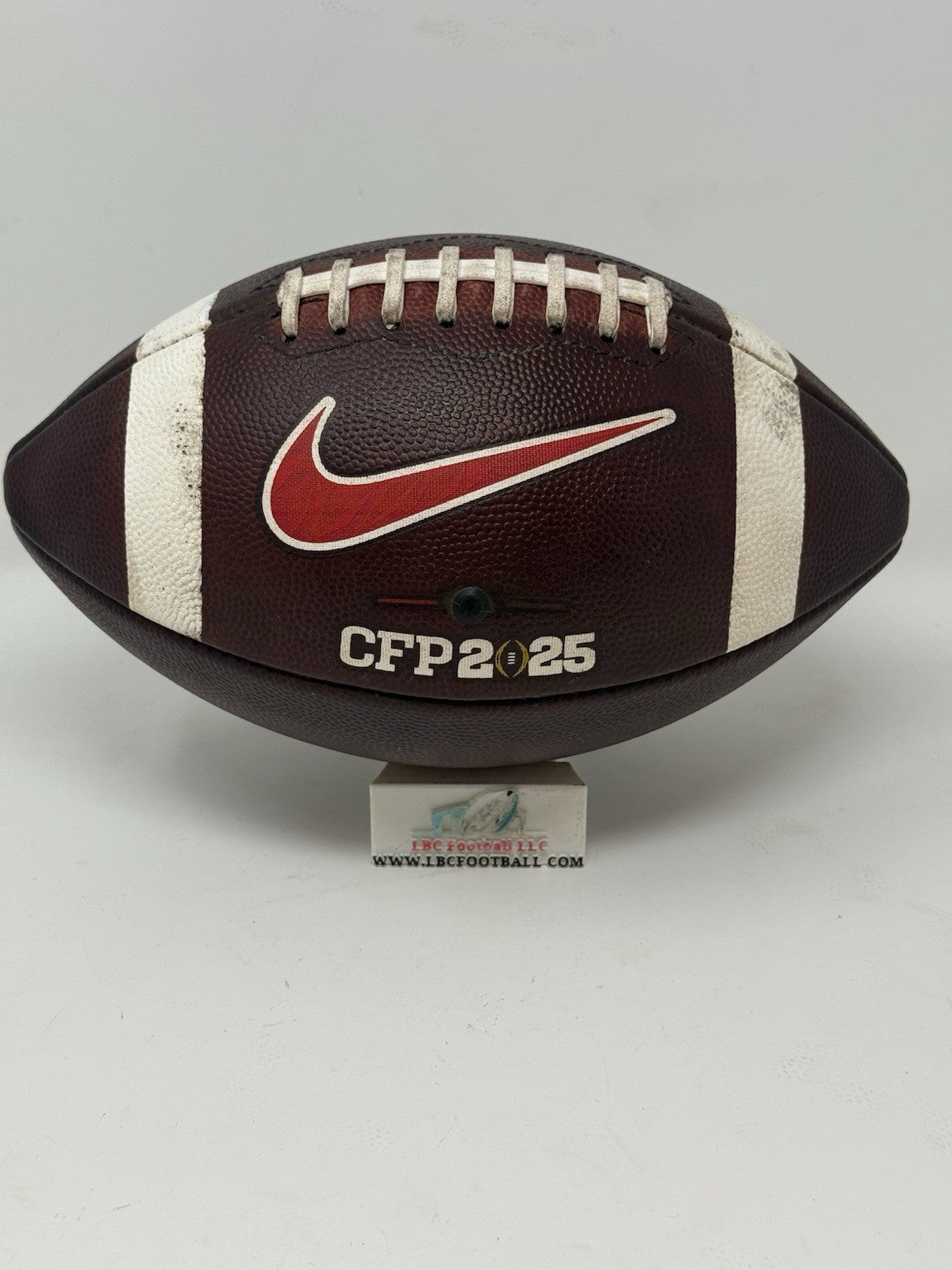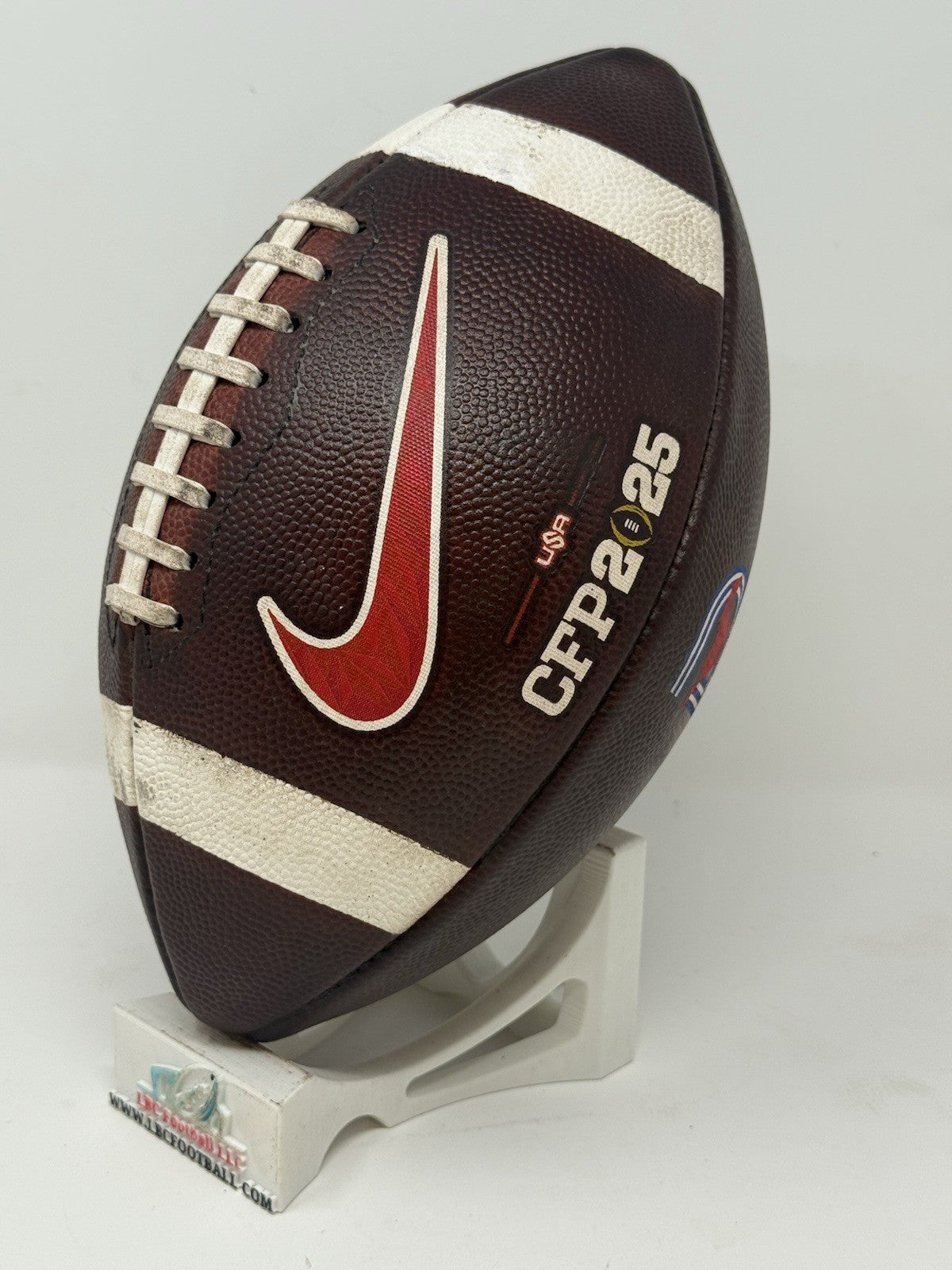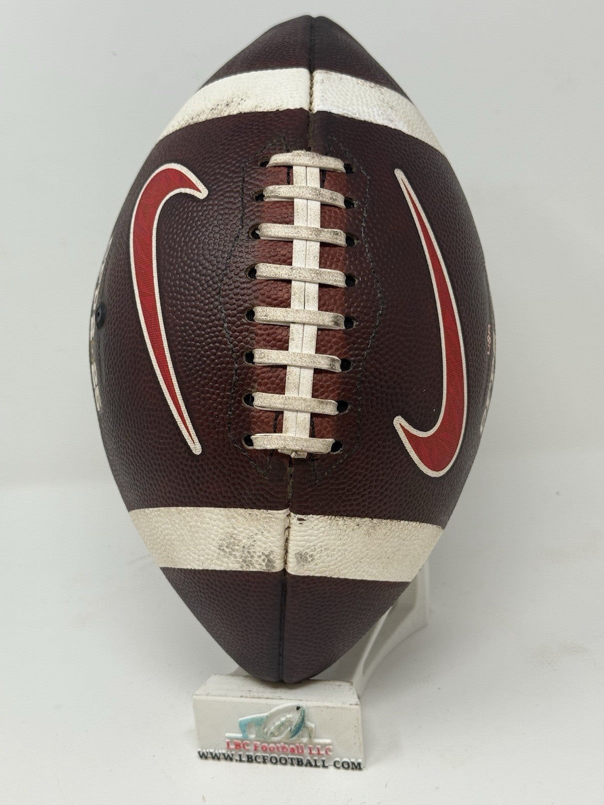 Recently fully game prepped and ready for usage (or display) on Day 1. The bladder holds air just fine, logos very well intact and the white stripes show some minor areas of scuff but overall, a great ball for any SMU fan or future star.
