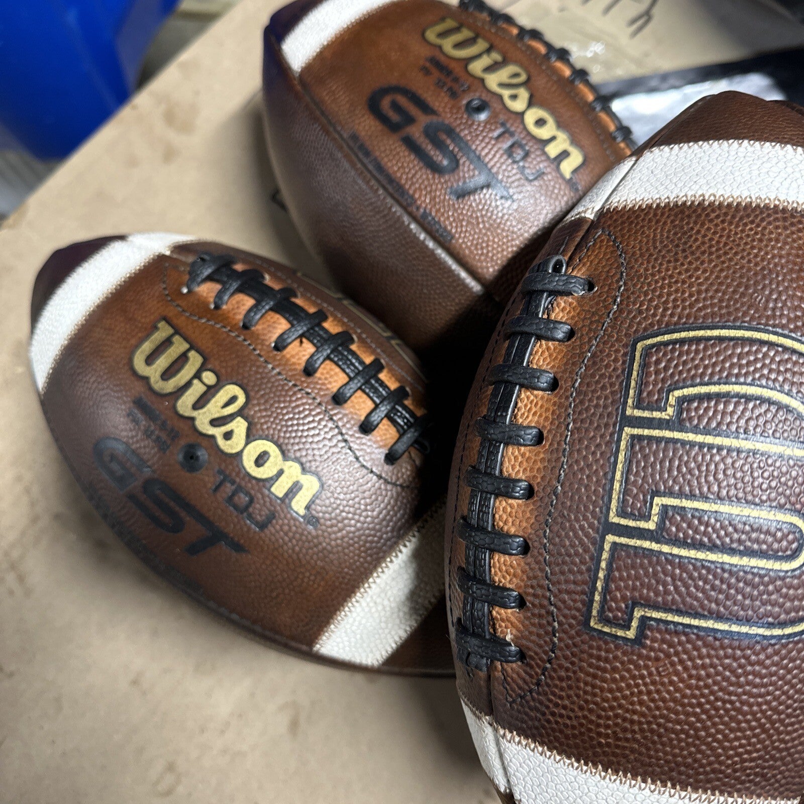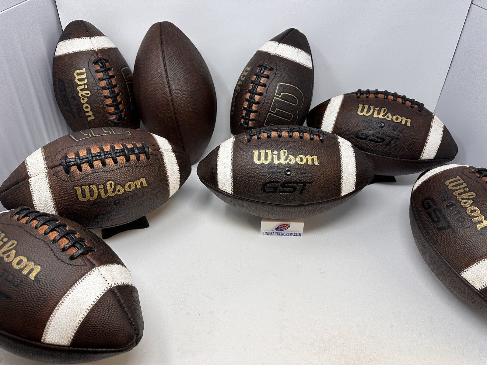 Brand New Wilson GST TDJ Junior Size Footballs (Ages 9-12 years old) that have been Fully Game Prepped (Mudded, Conditioned, Brushed, Tacked, etc.)