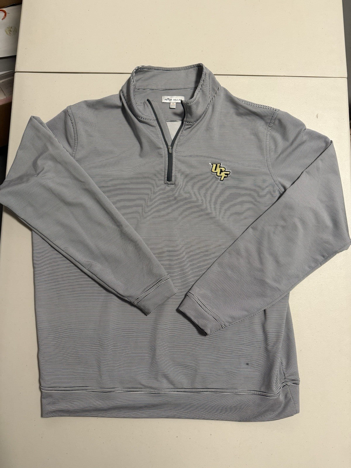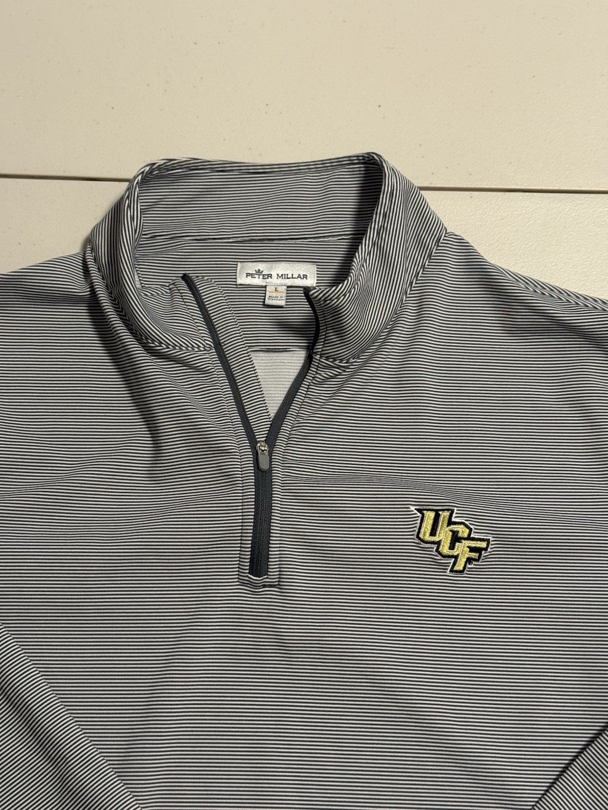 Rare University of Central Florida Knights Football Team Issued On-Field Peter Millar Perth Mini Stripe Performance Pullover Shirt Quarter Zip