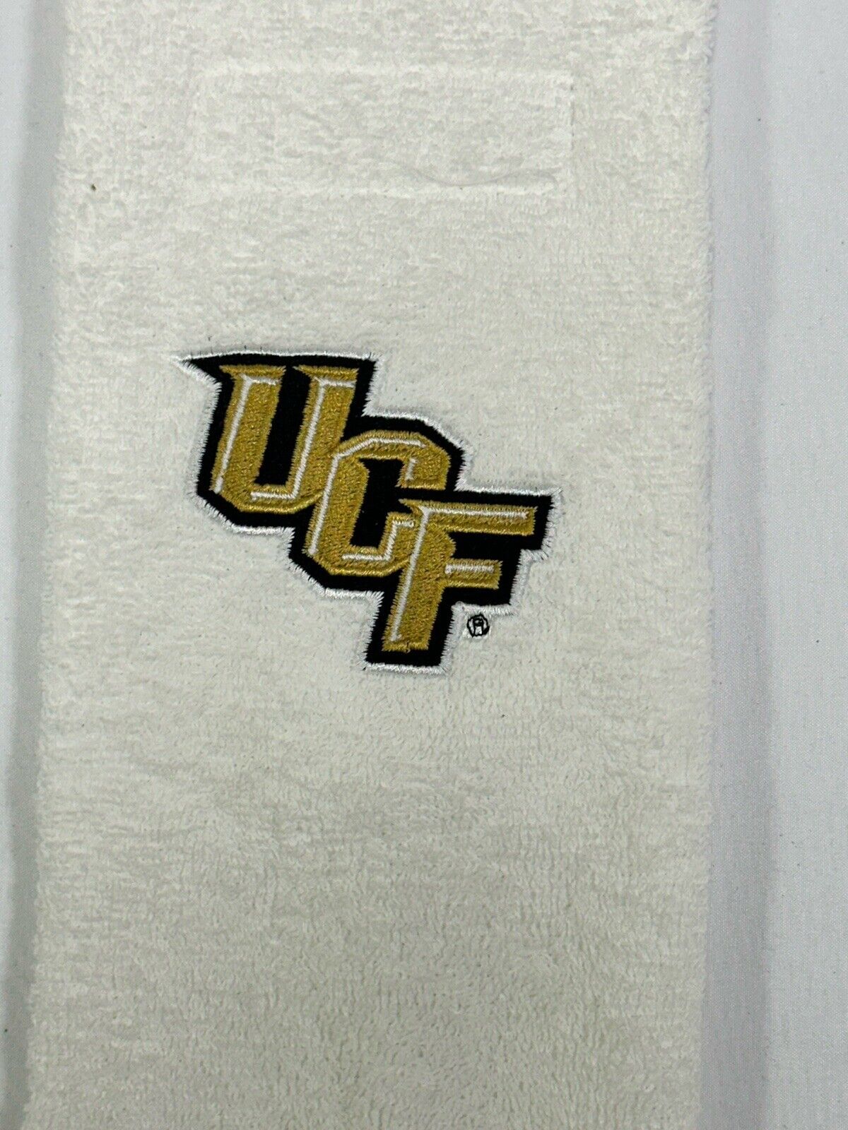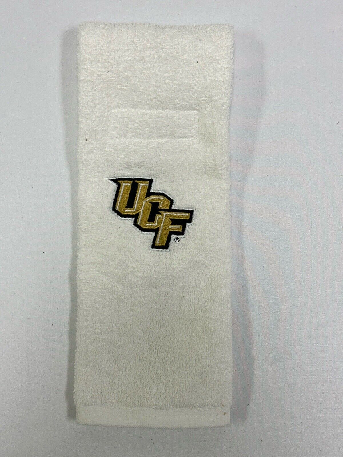 This authentic UCF Knights football hip towel was issued and used during games and practices. It features the team's colors, and prominently displays the team logo. This officially licensed NCAA product is perfect for any fan who wants to show their support for the team.