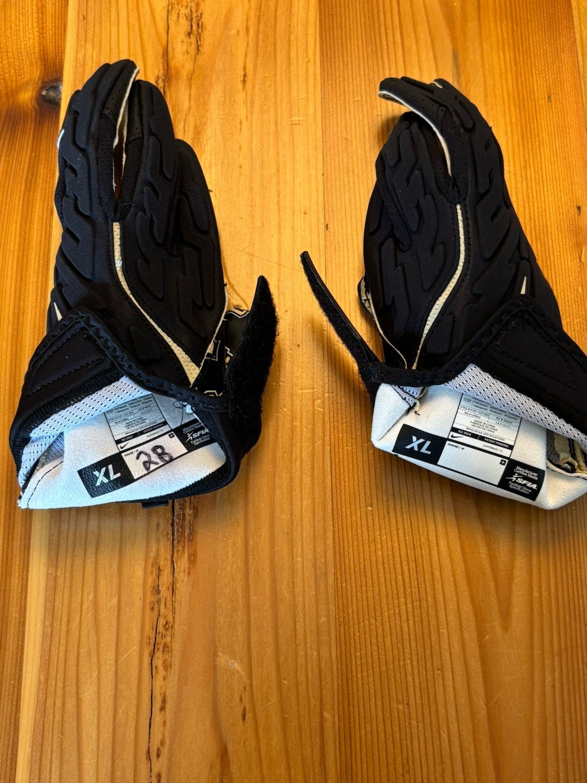 Size is Adult XL and condition of gloves are still in great condition. There are no rips, tears or defects on this pair of gloves and the tack/grip is still very nicely intact. Perfect for usage or display in any collection.