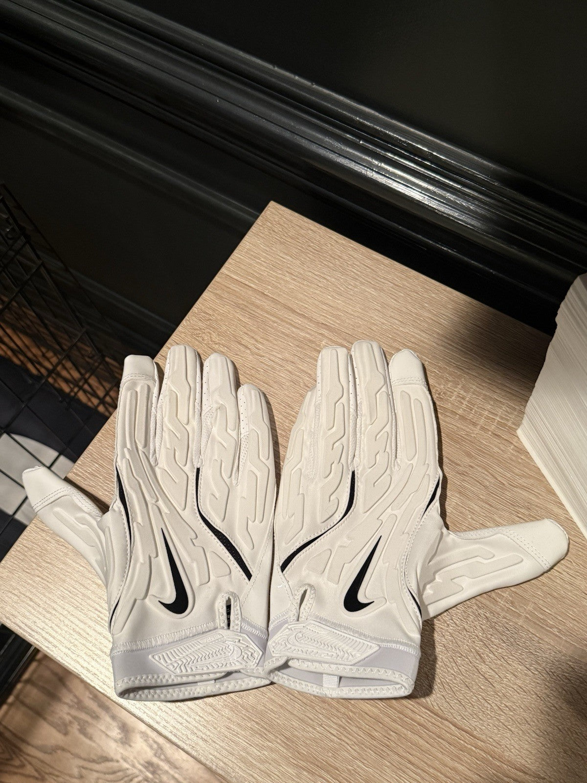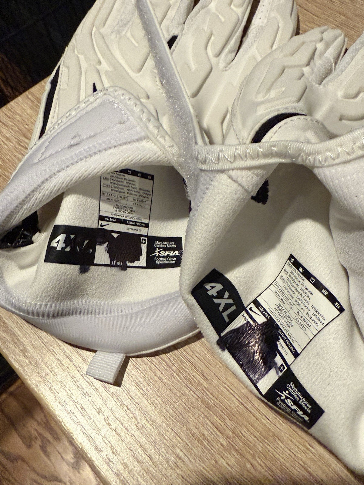 Size is Adult 4XL and condition of gloves are still in great condition. There are no rips, tears or defects on this pair of gloves and the tack/grip is still very nicely intact. Perfect for usage or display in any collection.