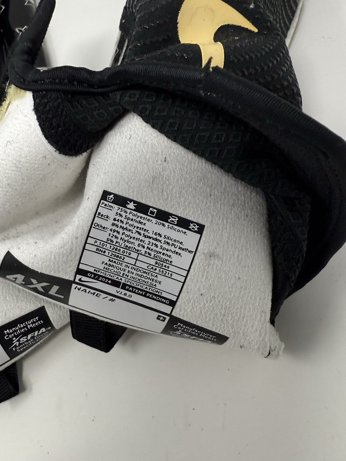 Size is Adult 4XL and condition of gloves are still in great condition. There are no rips, tears or defects on this pair of gloves and the tack/grip is still very nicely intact. Perfect for usage or display in any collection.