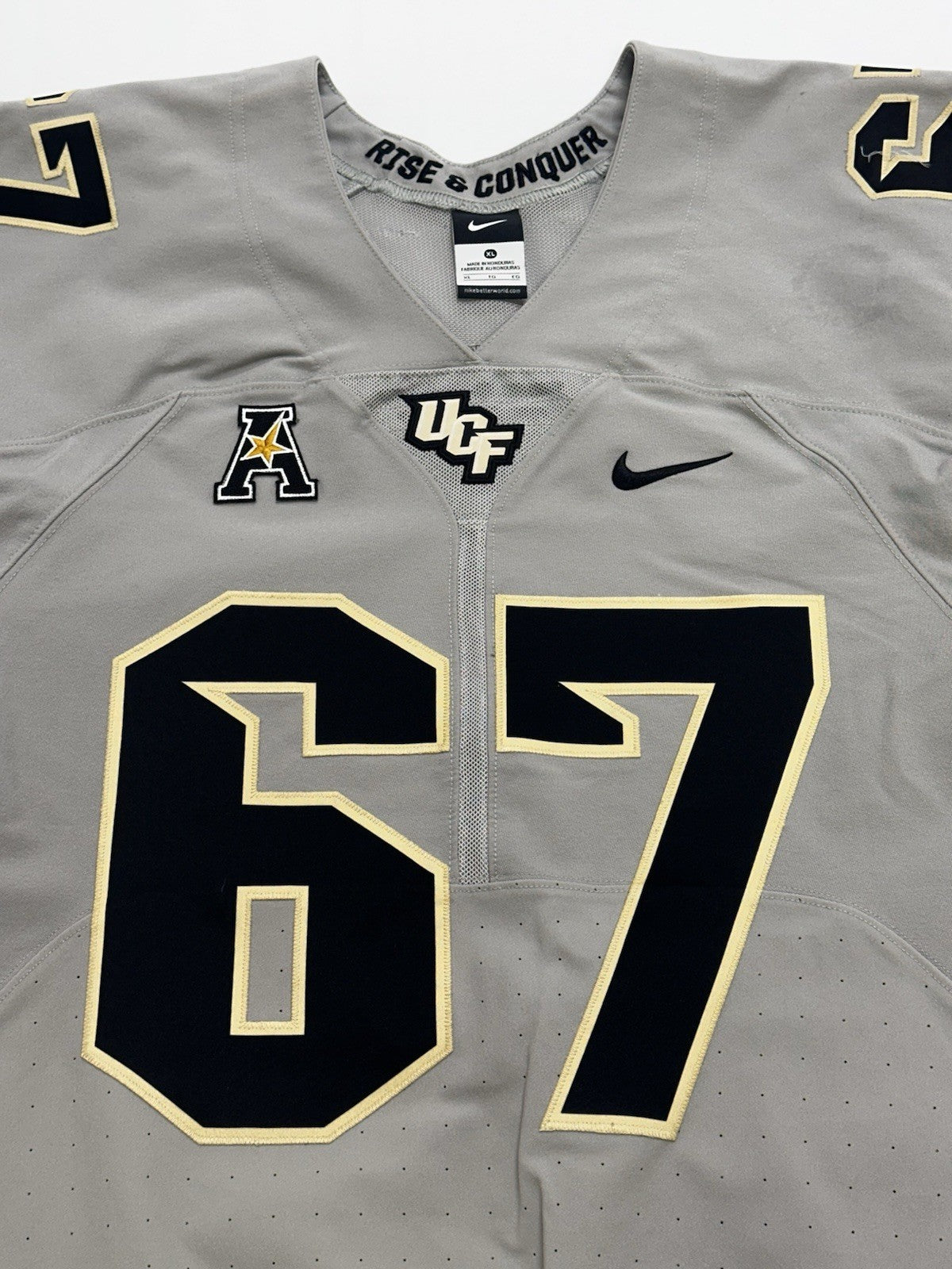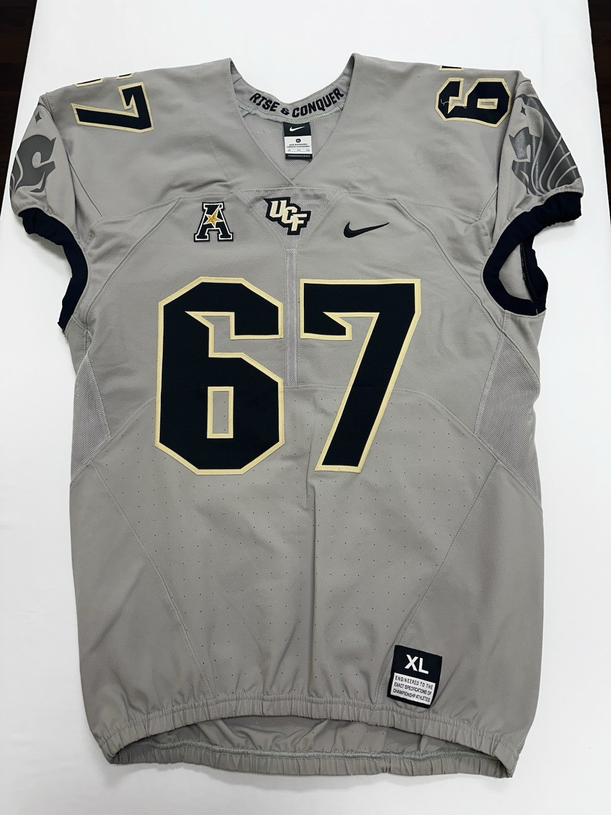 Authentic UCF Knights Game Used / Game Worn Nike Football Jersey #67. Size Adult XL - Extra Large.