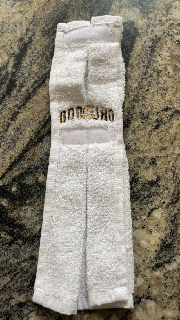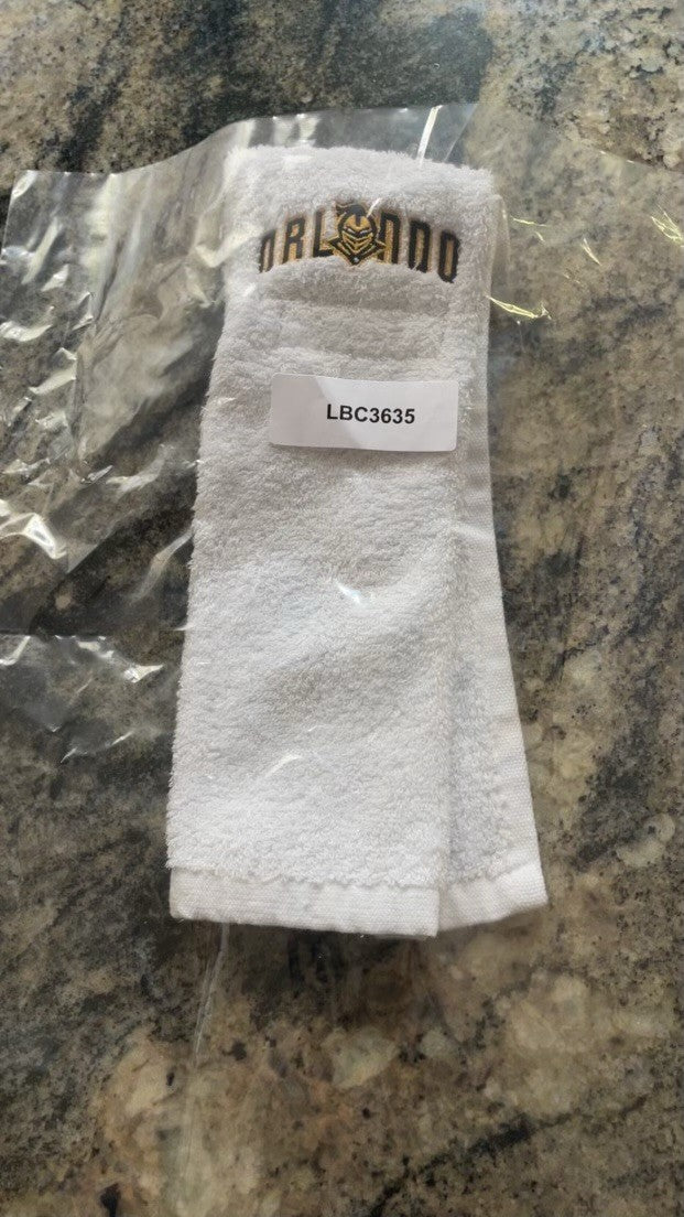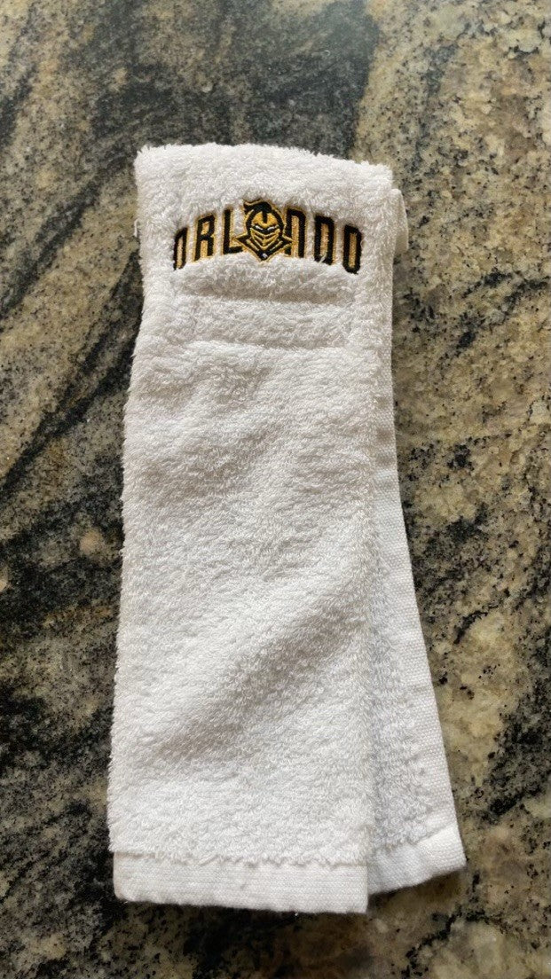 This Knights QB towel features the "Orlando" UCF logo, hook and loop feature on the rear which helps attach the towel on the uniform. Perfect for display in UCF sports collection or to use on the field.
