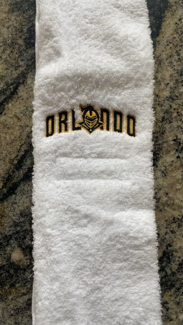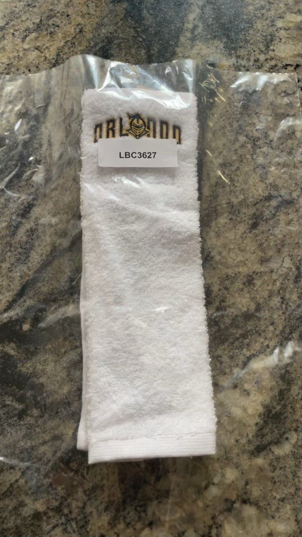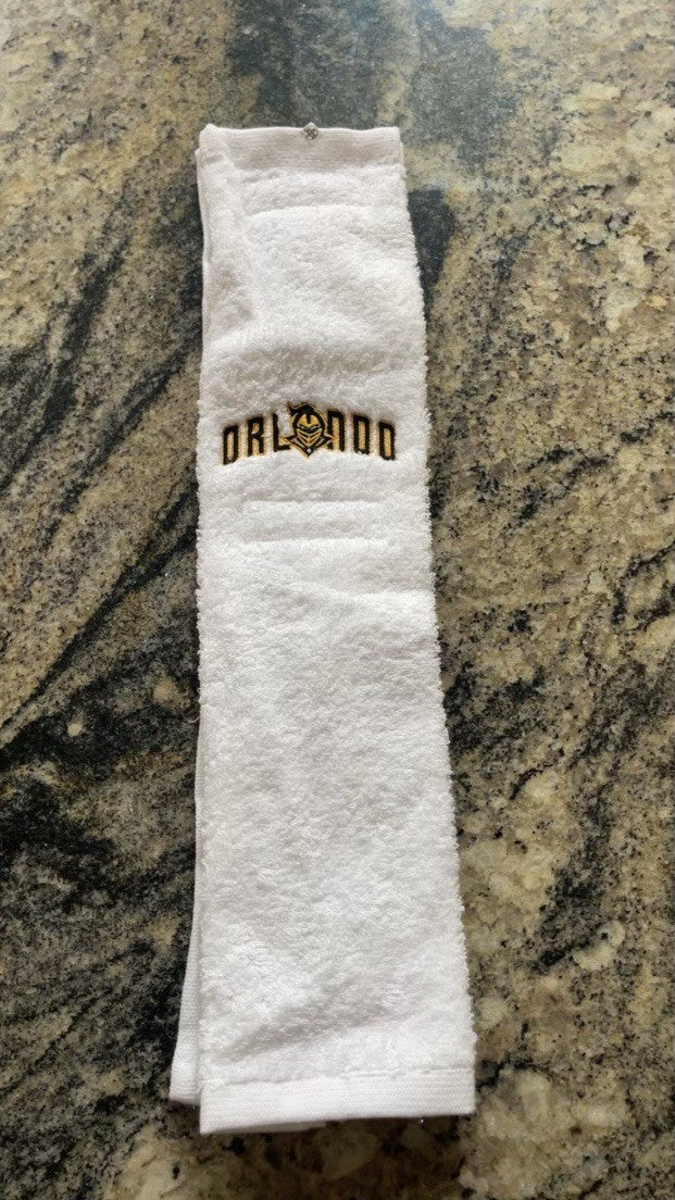 The Knights QB towel features the "Orlando" UCF logo, hook and loop feature on the rear which helps attach the towel on the uniform. Perfect for display in UCF sports collection or to use on the field.