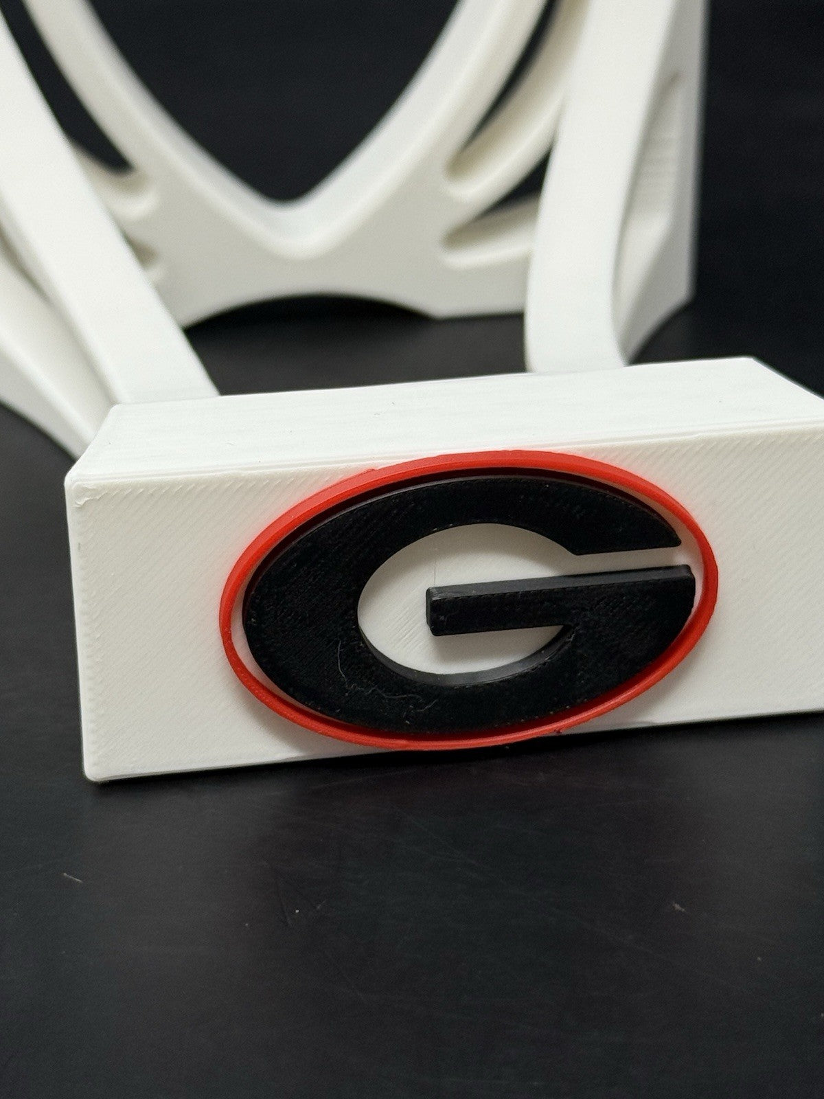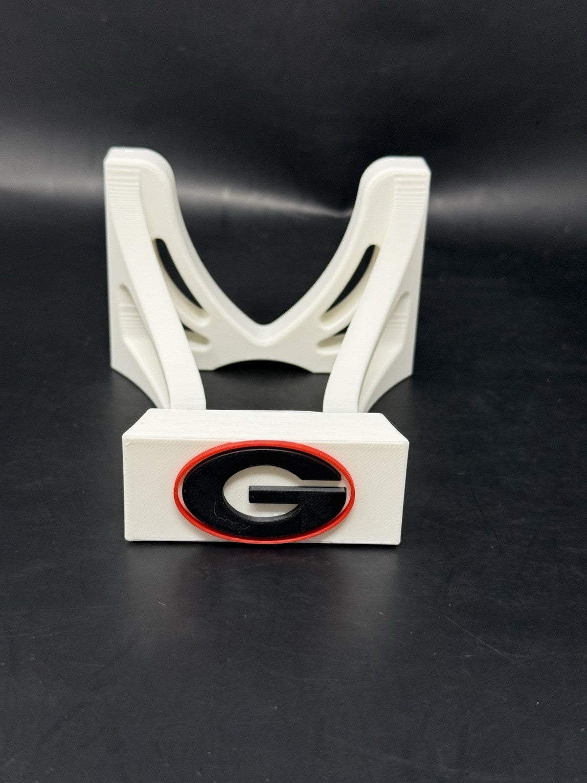 Custom high quality football display stands, featuring the Georgia Bulldogs team logo