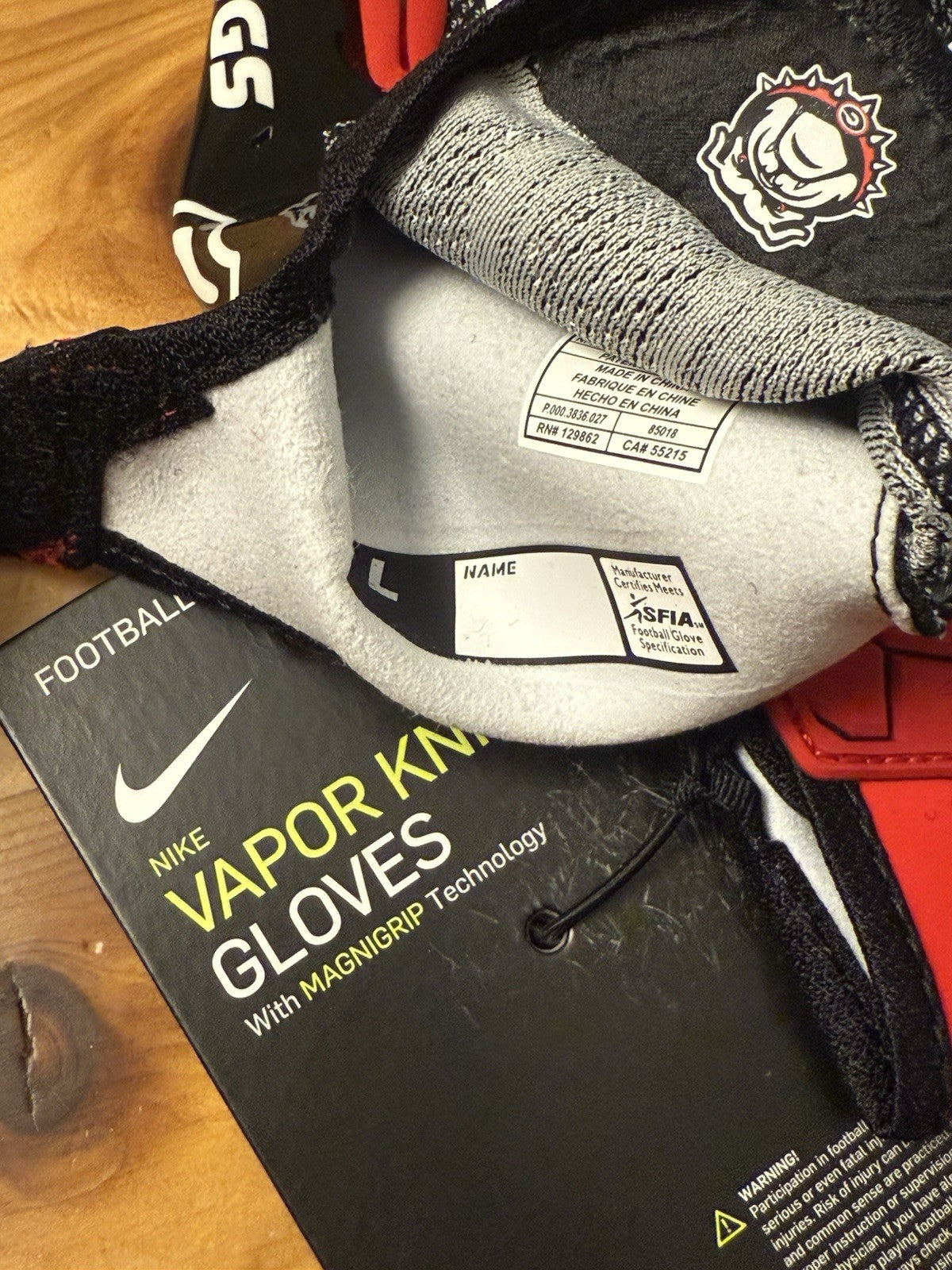 UGA - University of Georgia Bulldogs Game Issued Nike Vapor Knit 4.0 Football Gloves