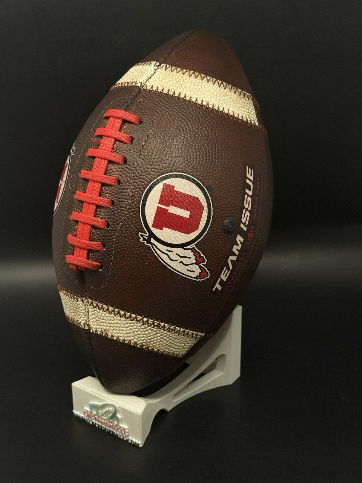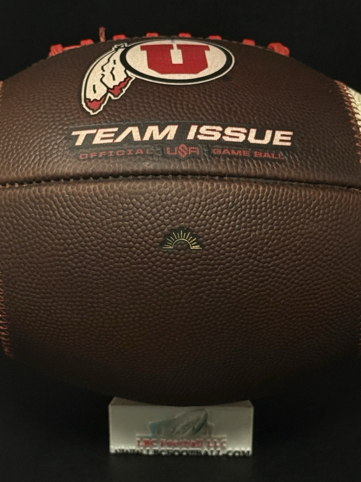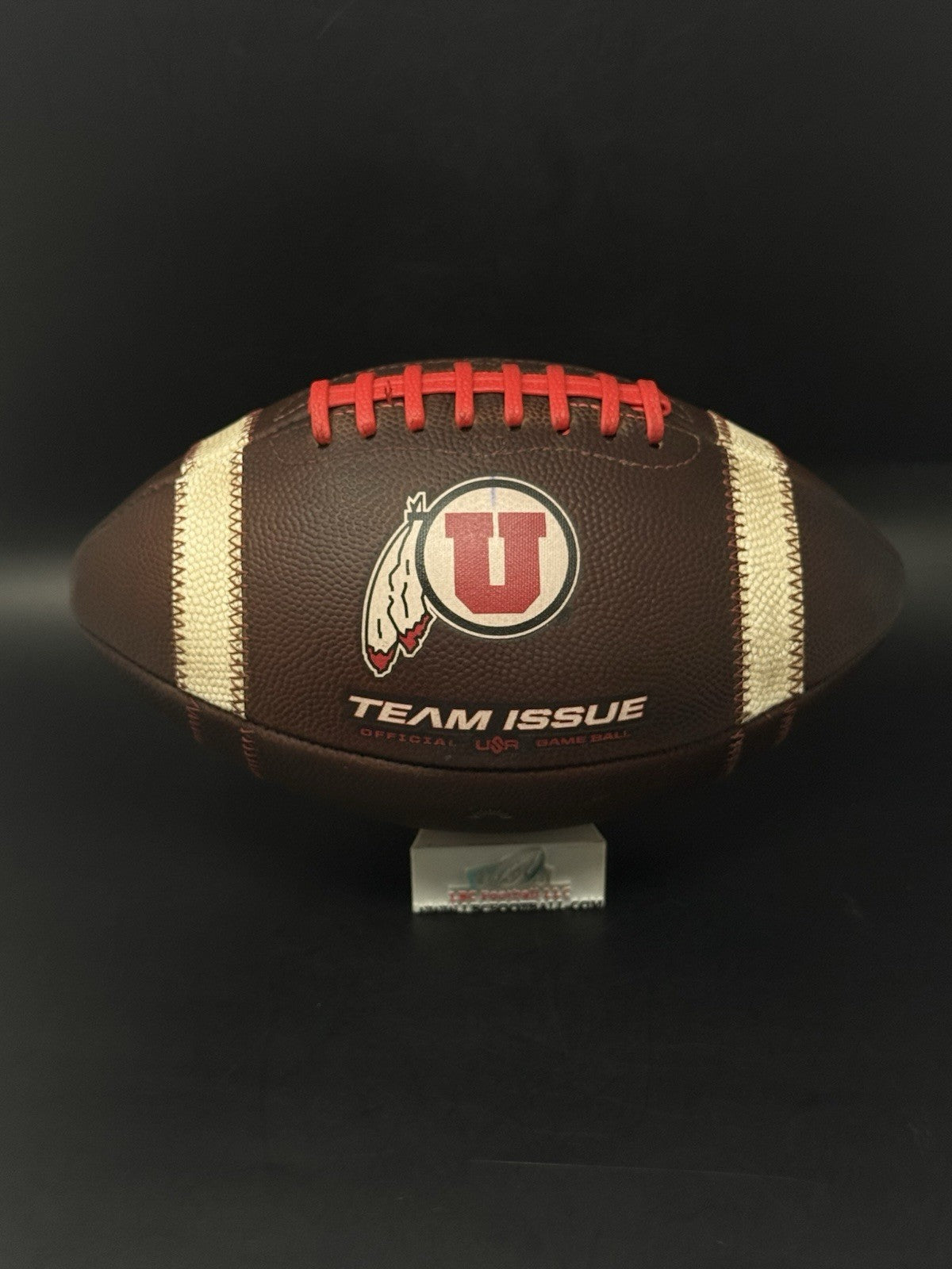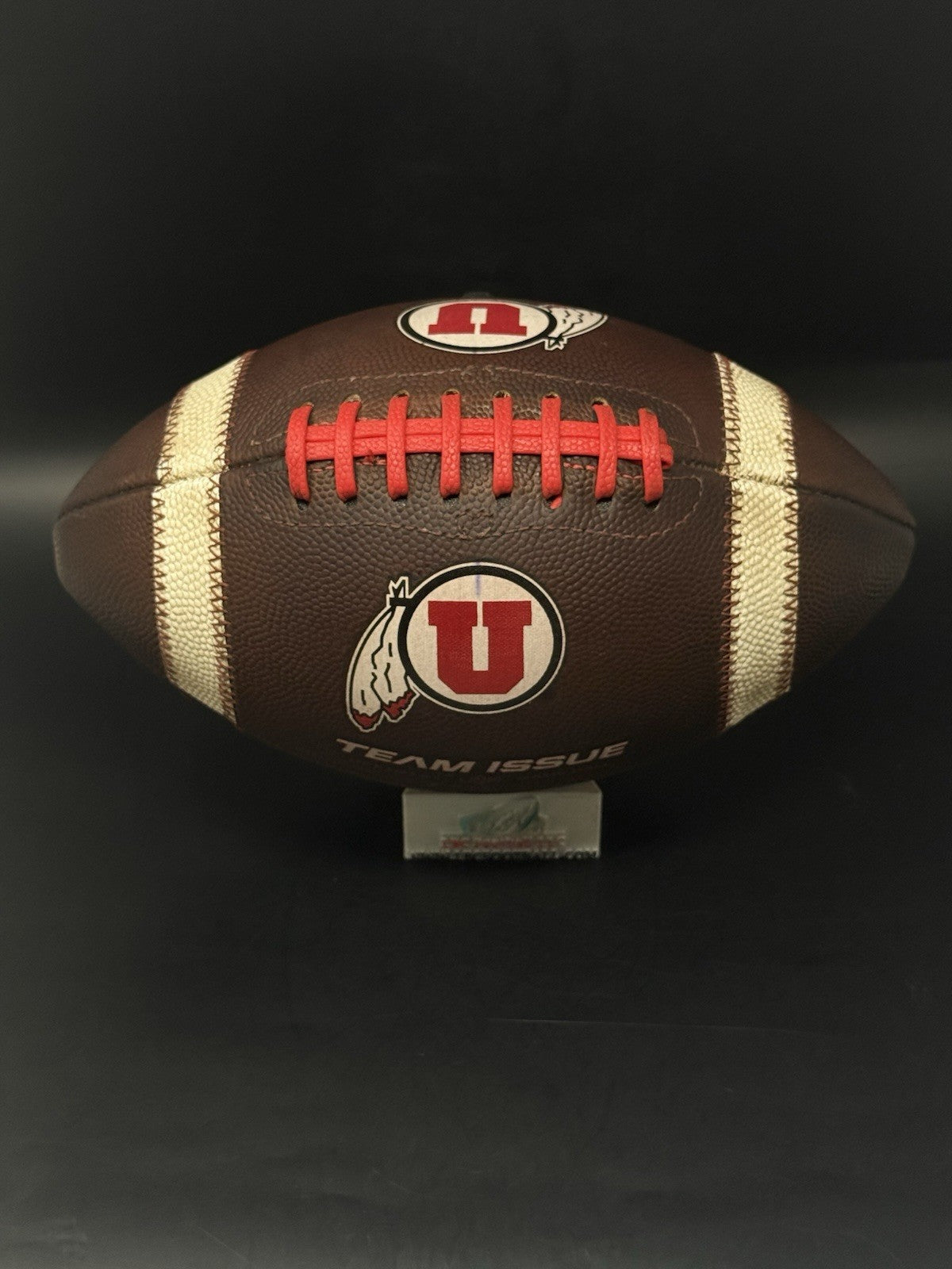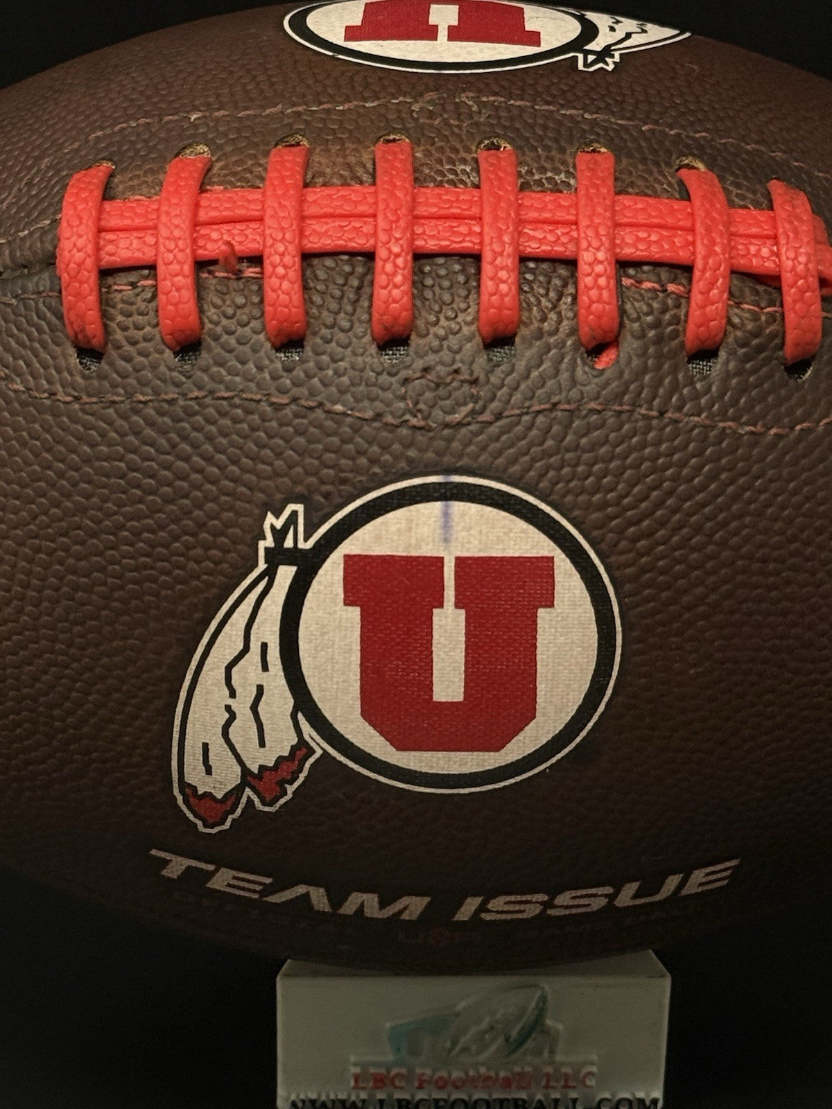 This football comes from the program with a rare sundown embossed logo. There are team markings on the logo with the ball used by the program. The bladder holds air just fine, red tacky style lacing still well intact and overall shows excellent evidence of prior usage. Perfect for display or usage by any Utah fan.