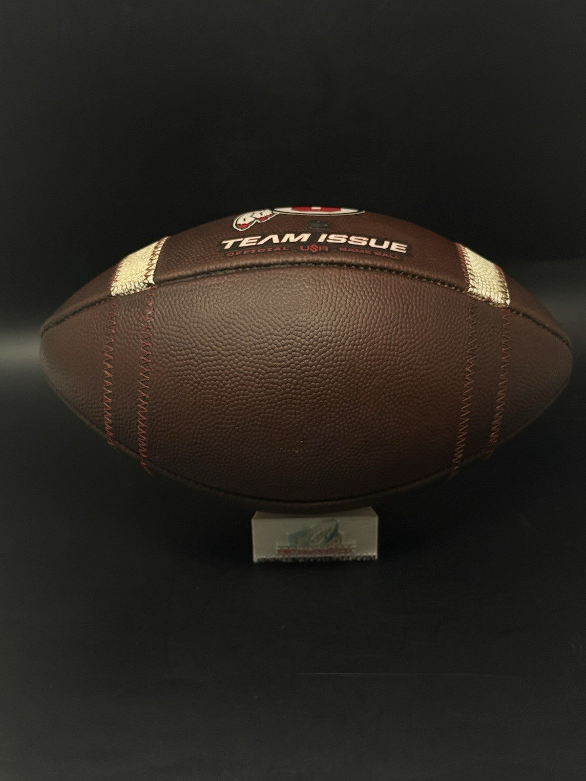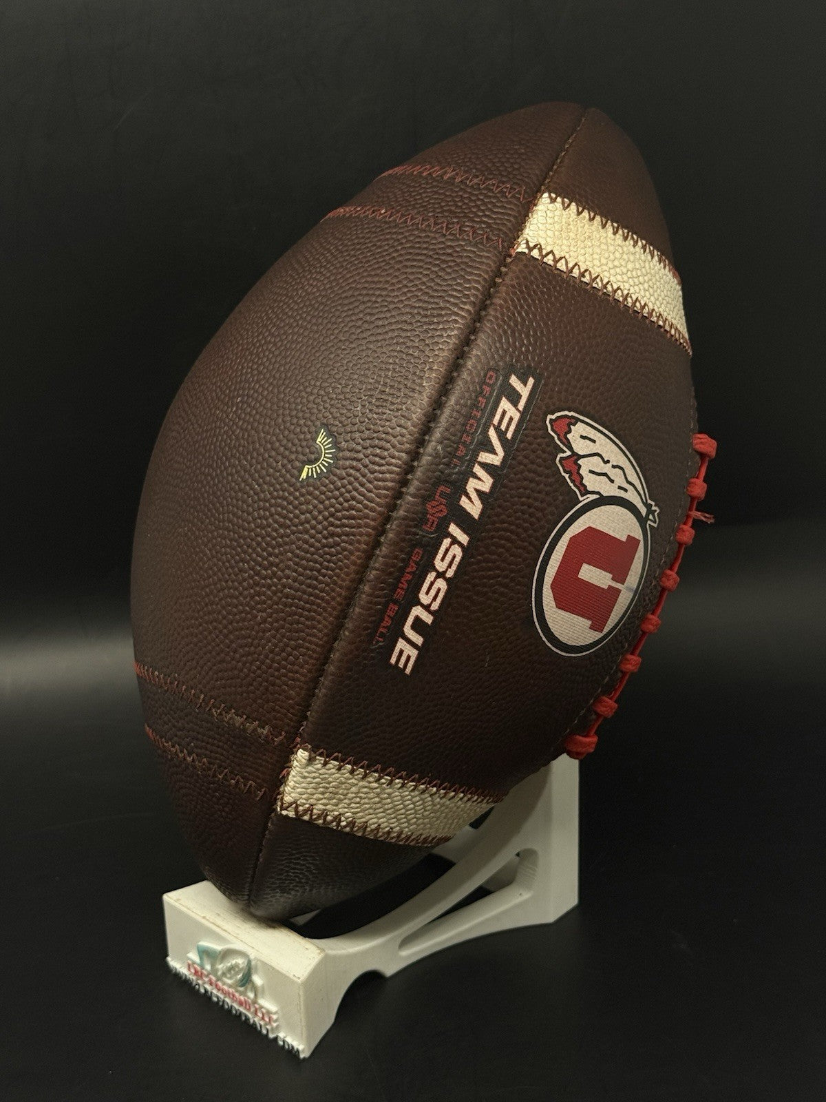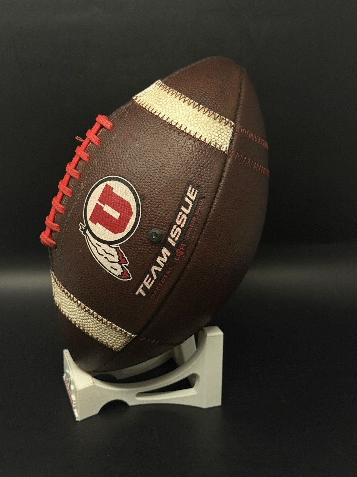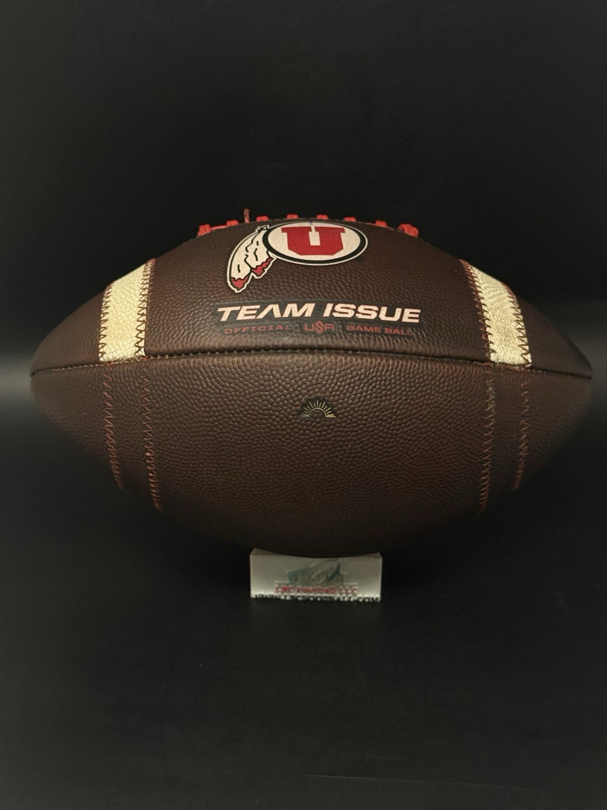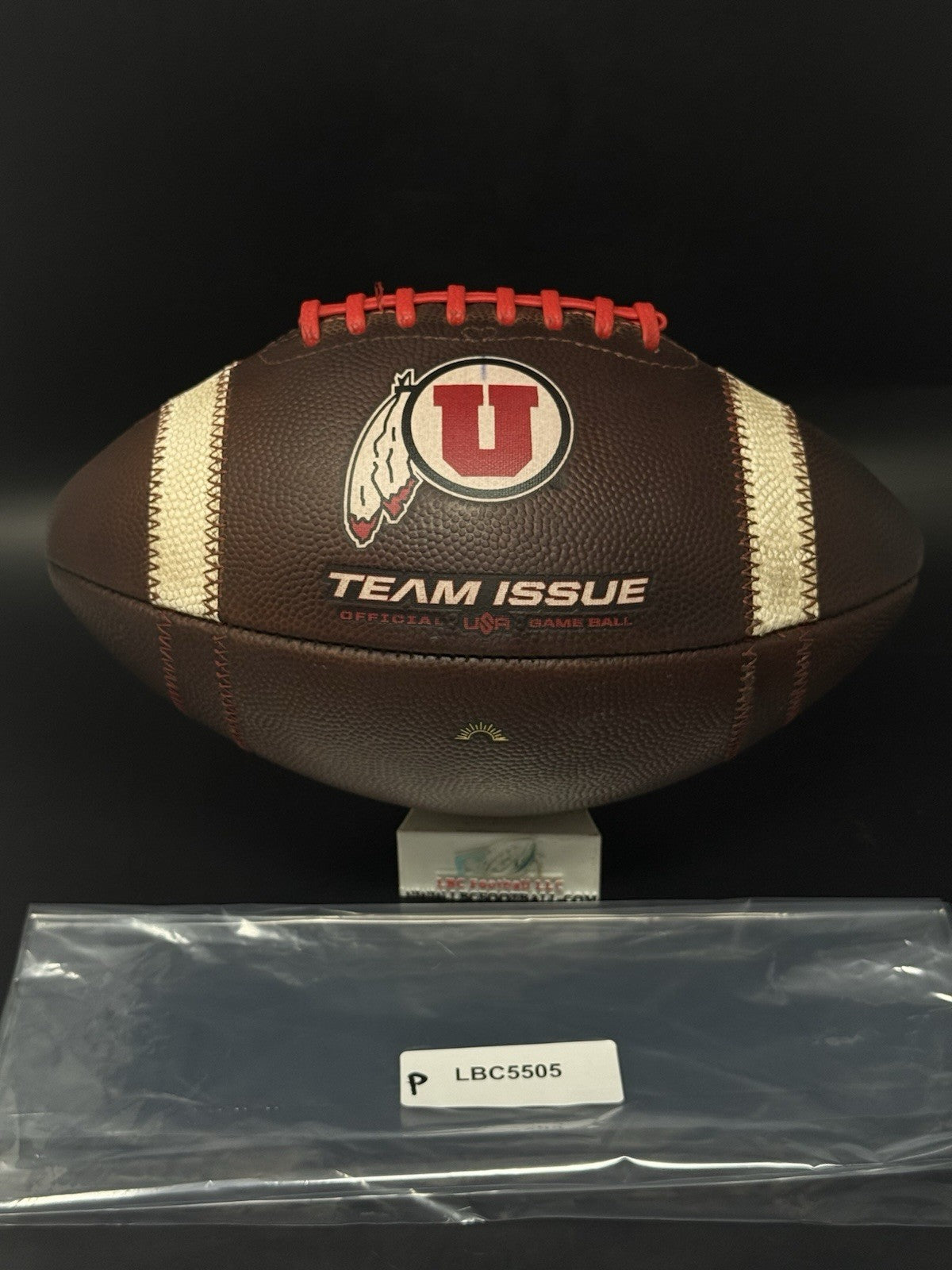 This football comes from the program with a rare sundown embossed logo. There are team markings on the logo with the ball used by the program. The bladder holds air just fine, red tacky style lacing still well intact and overall shows excellent evidence of prior usage. Perfect for display or usage by any Utah fan.